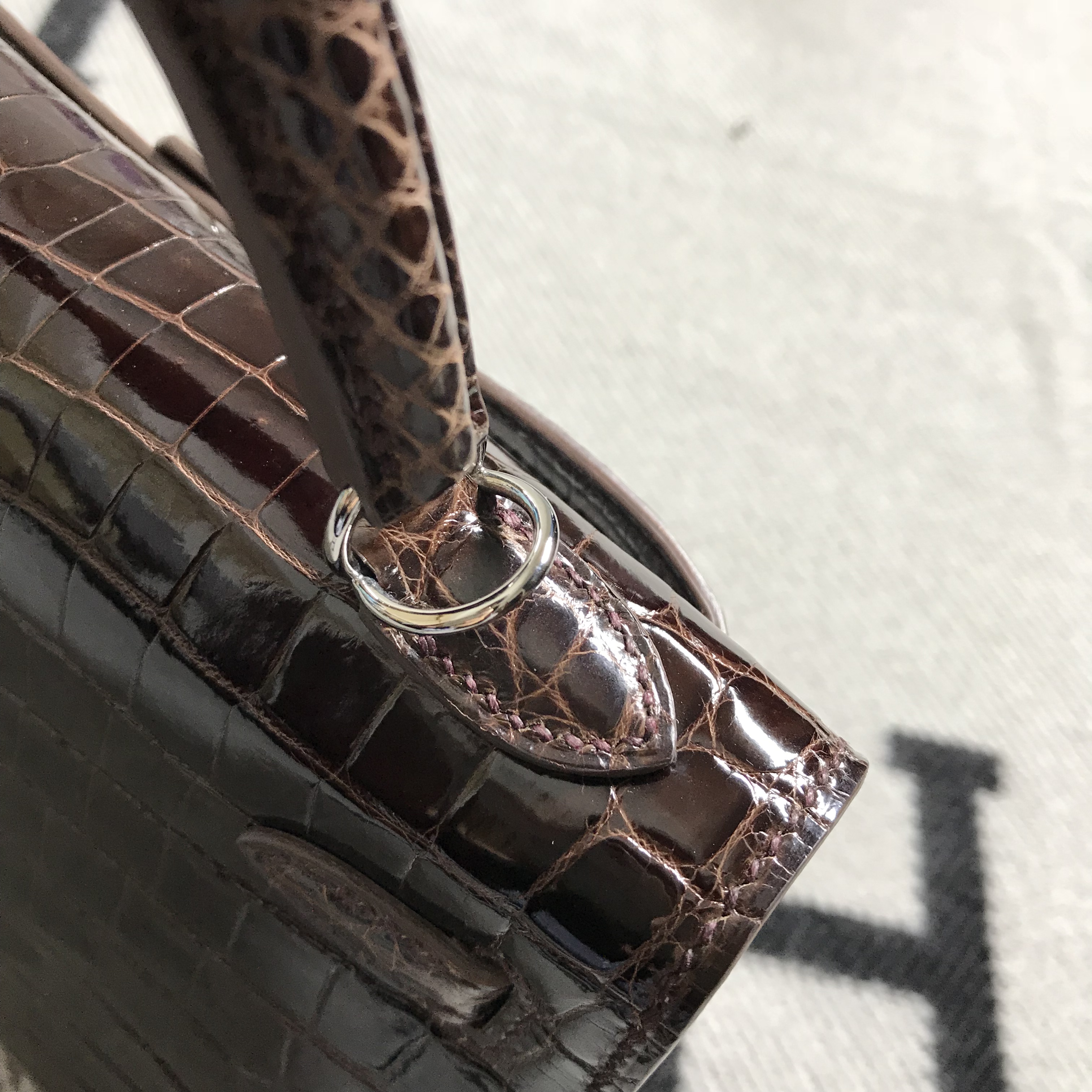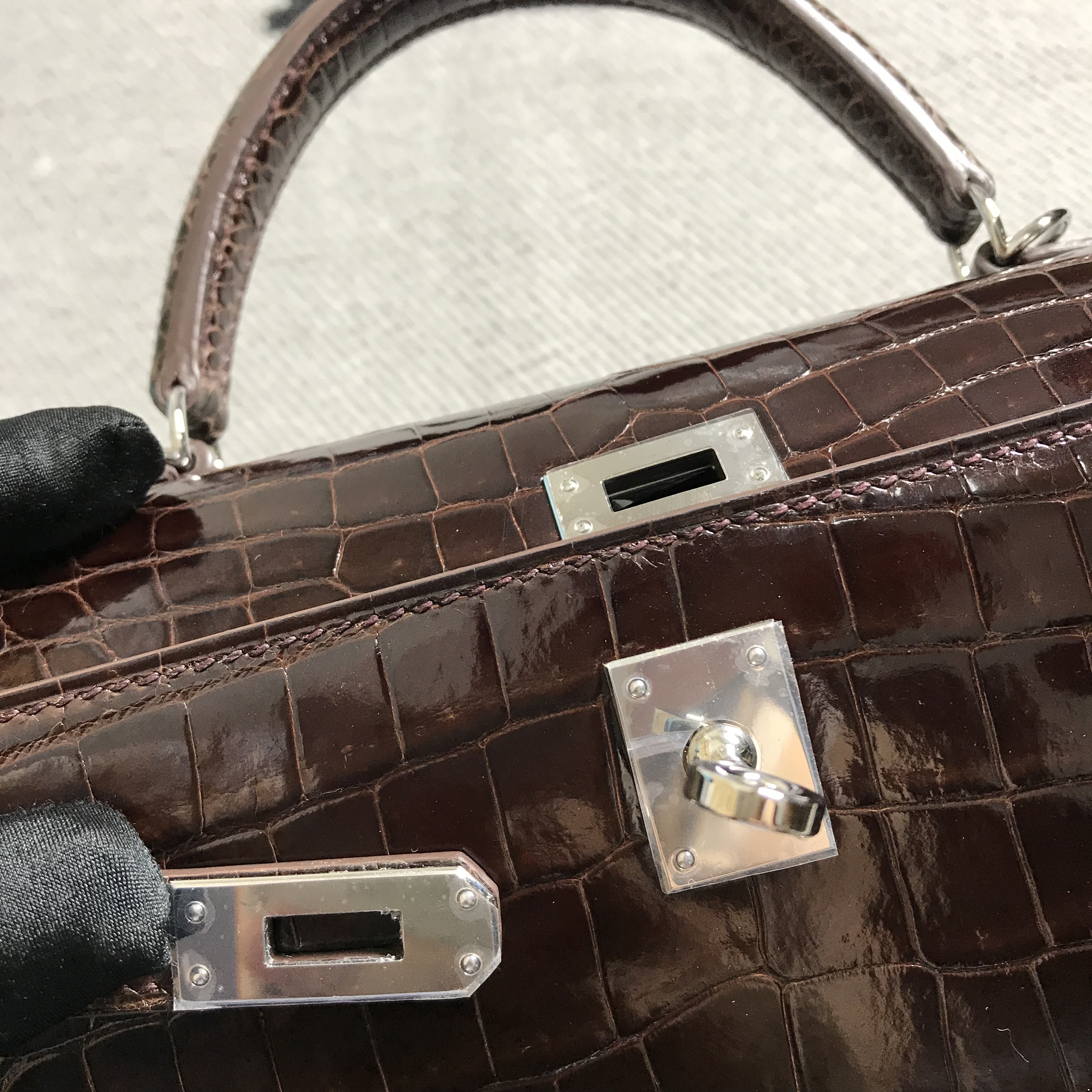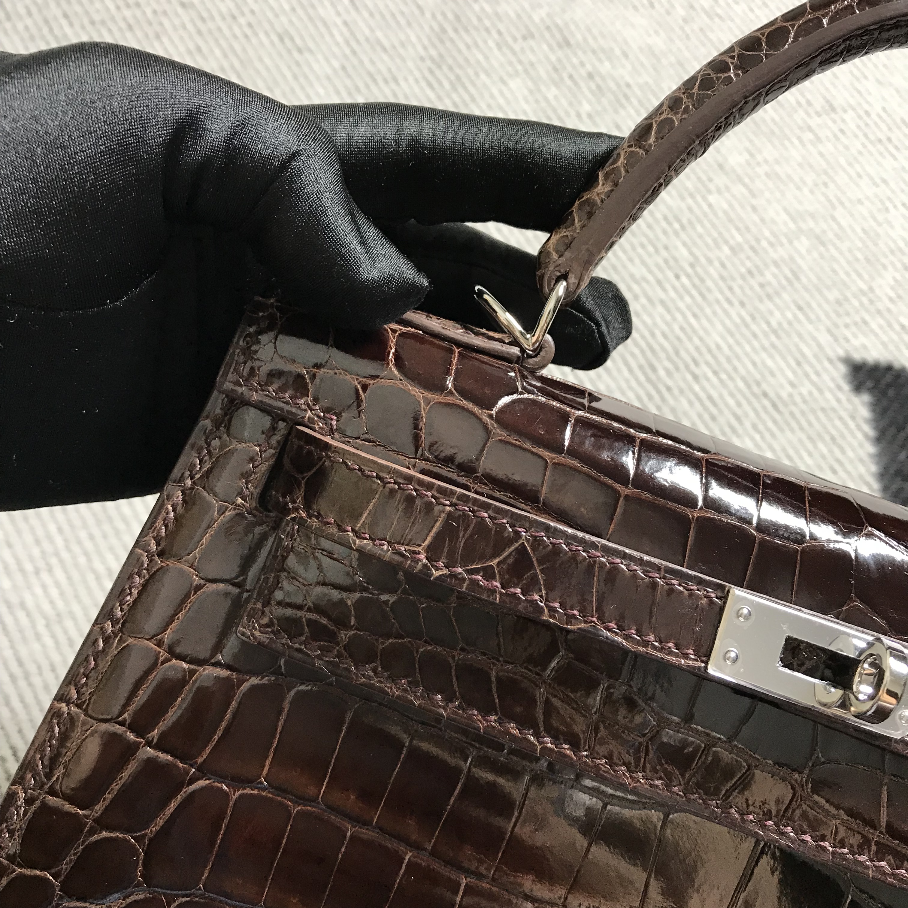 Hermès(爱马仕)Kelly 凯莉包 深咖啡色 银扣 25cm 2018年8月7日 0 【鳄鱼世家】www.Eyubao.com Kelly 25 Kelly 凯莉包 品牌:Hermès(爱马仕);类别:Kelly 凯莉包;颜色:深咖啡色;材质:精选原版皮;等级:顶级;附件:全套包装礼盒;尺寸:25cm;功能:手提单肩包