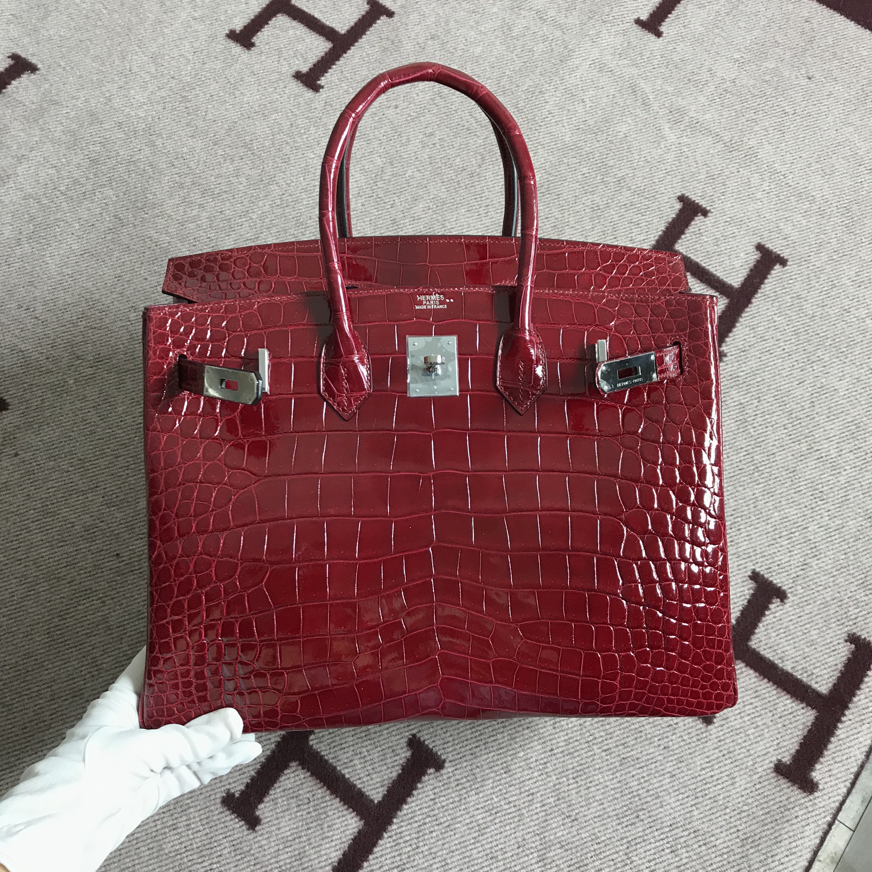 Hermès(爱马仕)Birkin 铂金包 大红色 银扣 35cm 2018年8月7日 0 【鳄鱼世家】www.Eyubao.com Birkin 35 Birkin 铂金包 品牌:Hermès(爱马仕);类别:Birkin 铂金包;颜色:大红色 ;材质:精选原版皮;等级:顶级;附件:全套包装礼盒;尺寸:35cm;功能:手提单肩包