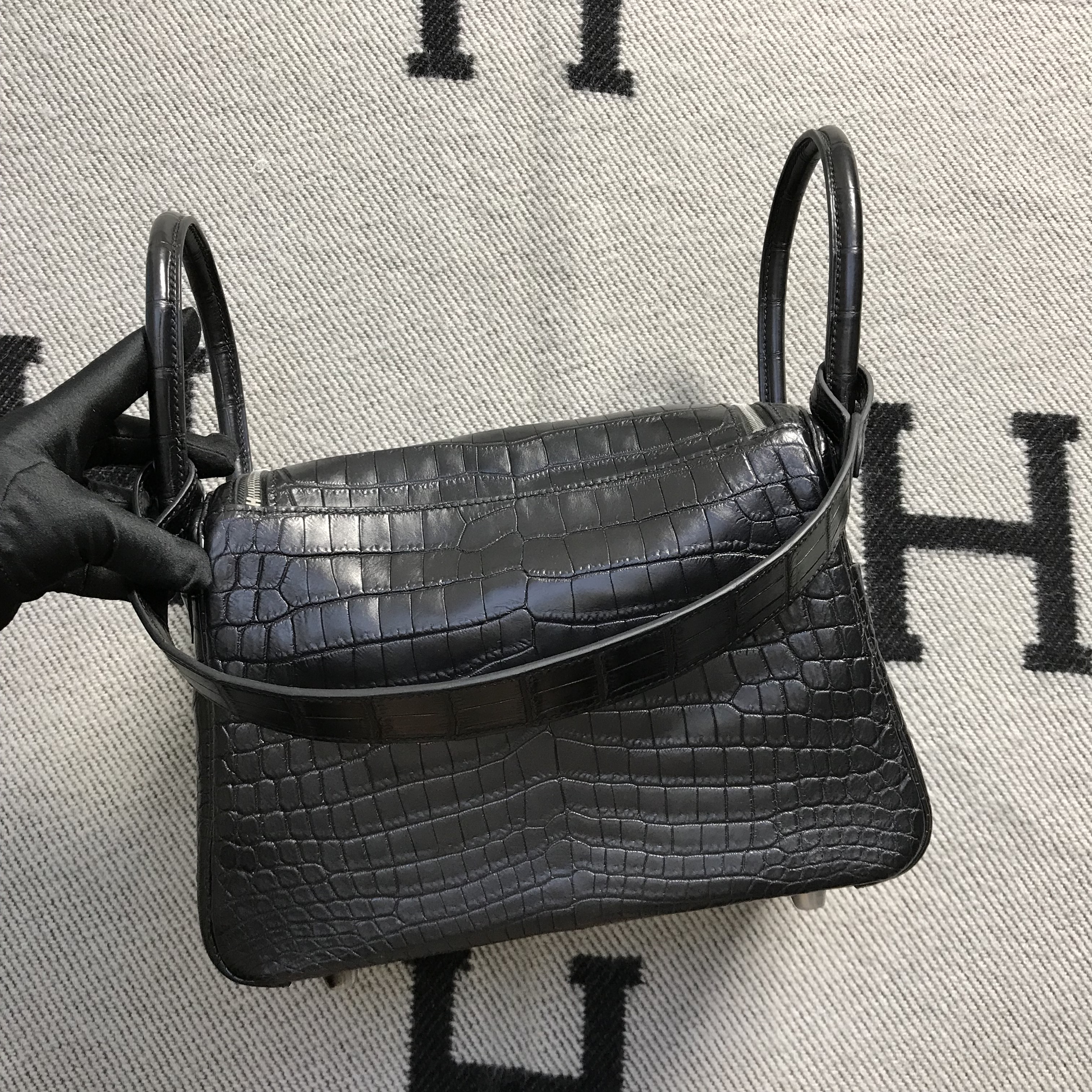 Hermès(爱马仕)新款 Lindy 琳迪包 黑色 银扣 26cm 2018年8月9日 0 【鳄鱼世家】www.Eyubao.com Lindy 26 Lindy 琳迪包 品牌:Hermès(爱马仕);类别:Lindy 琳迪包;颜色:黑色;材质:精选原版皮;等级:顶级;附件:全套包装礼盒;尺寸:26cm;功能:手提单肩包