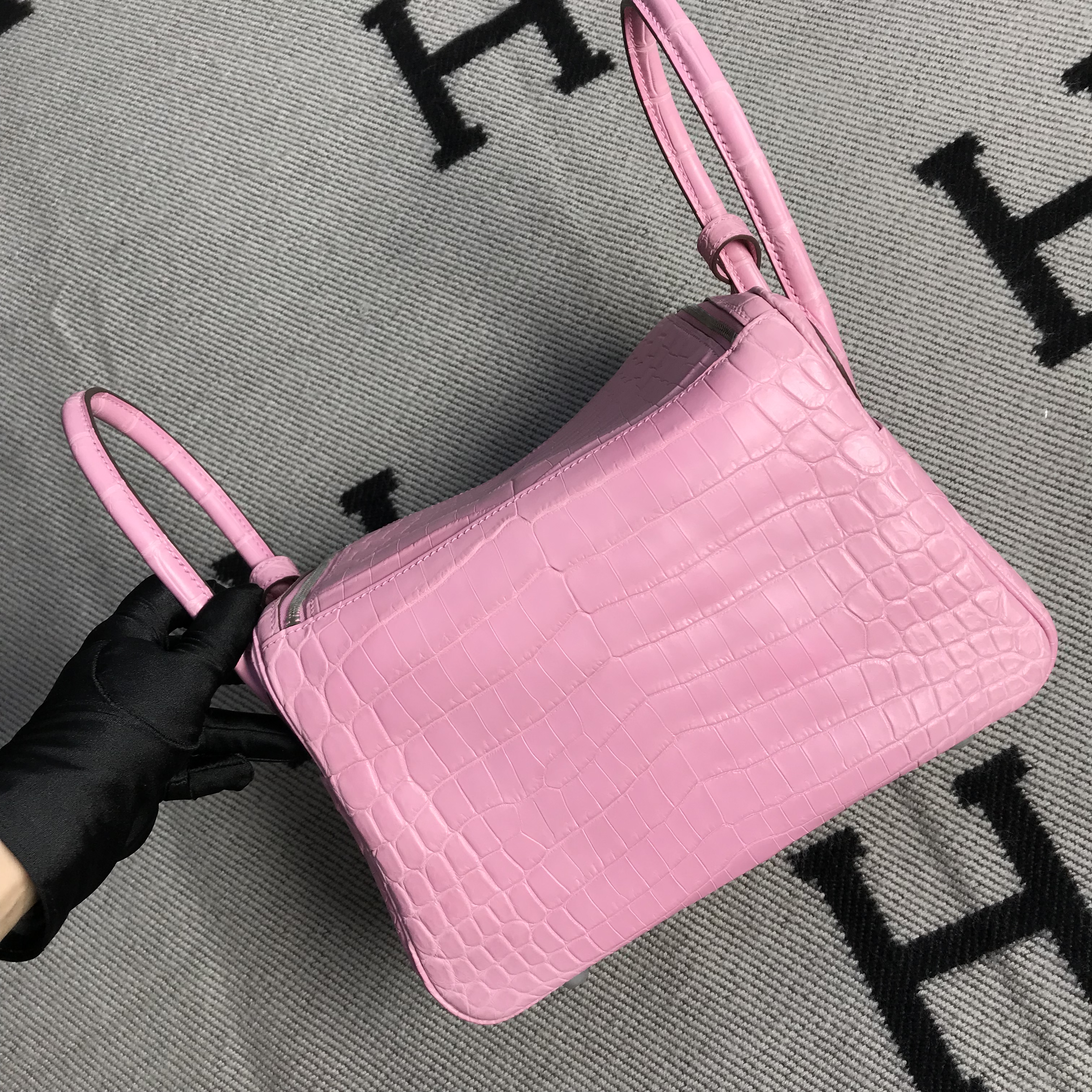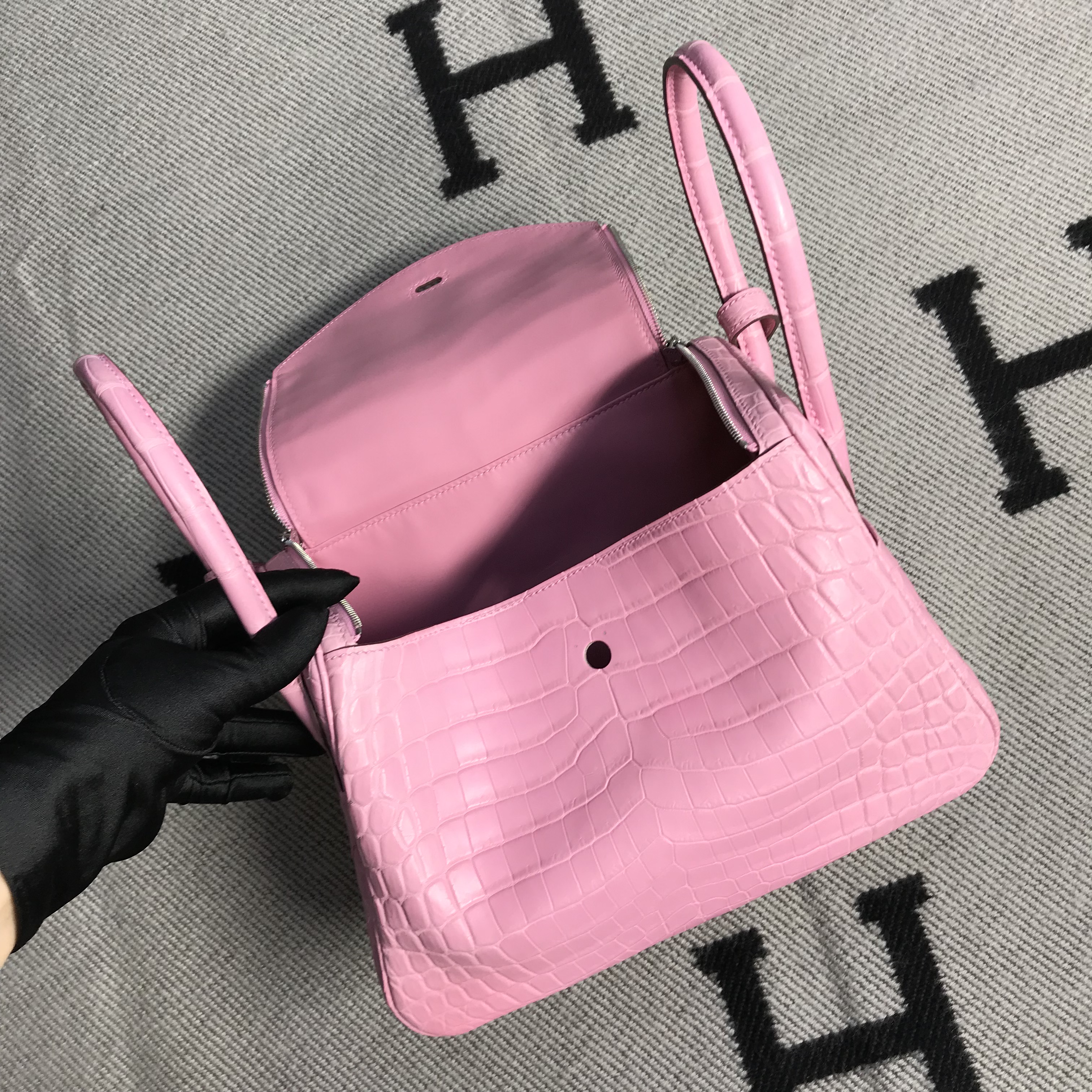 Hermès(爱马仕)新款 Lindy 琳迪包 樱花粉 银扣 26cm 2018年8月9日 0 【鳄鱼世家】www.Eyubao.com Lindy 26 Lindy 琳迪包 品牌:Hermès(爱马仕);类别:Lindy 琳迪包;颜色:樱花粉;材质:精选原版皮;等级:顶级;附件:全套包装礼盒;尺寸:26cm;功能:手提单肩包