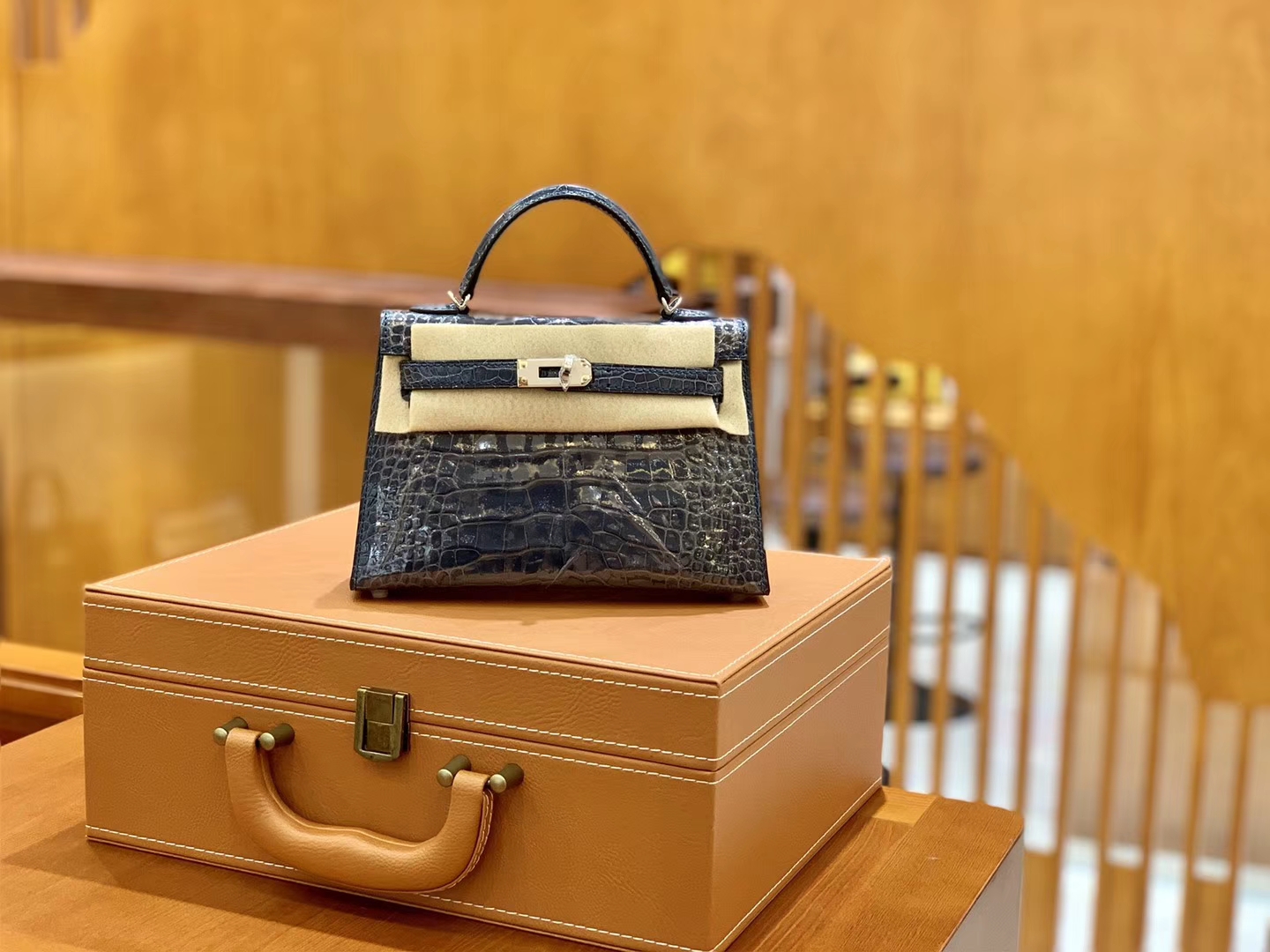 Mini Kelly 2 Mini Kelly 迷你凯莉 Hermès(爱马仕)Mini Kelly 迷你凯莉 风暴蓝 亮面鳄鱼 一级 顶端级别 美洲 臻品级别 金银扣 19cm 2019年12月19日 0