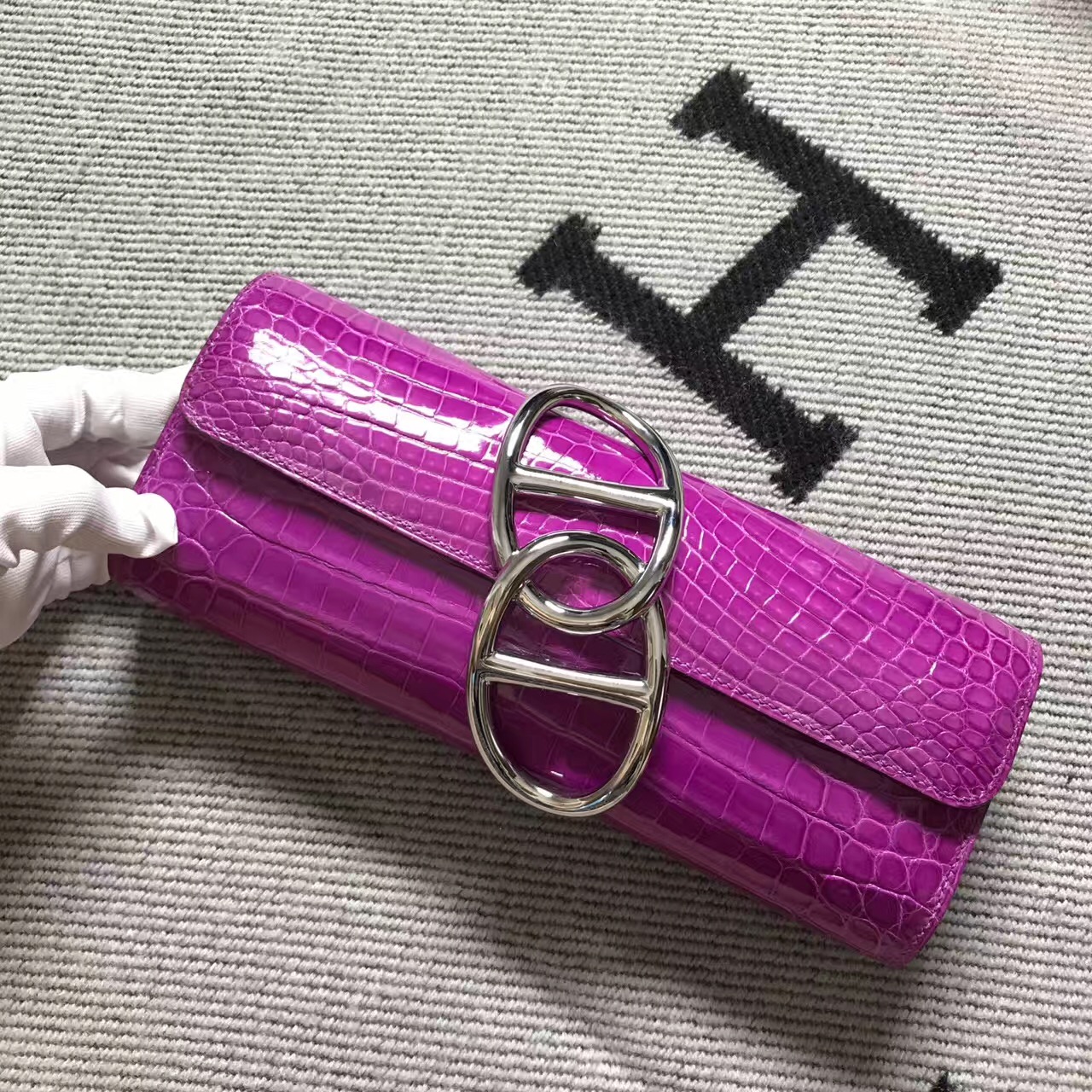 Hermès(爱马仕)猪鼻手包egee 鳄鱼亚光 桃红色 银扣 2018年8月10日 0 【鳄鱼世家】www.Eyubao.com Roulis 猪鼻子 品牌:Hermès(爱马仕);类别:猪鼻手包egee;颜色:桃红色;材质:精选原版皮;等级:顶级;附件:全套包装礼盒;功能:手拿包