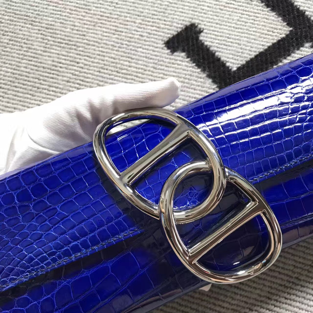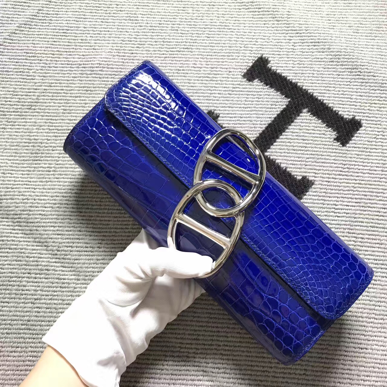 Hermès(爱马仕)猪鼻手包egee 鳄鱼亚光 电光蓝 银扣 2018年8月10日 0 【鳄鱼世家】www.Eyubao.com Roulis 猪鼻子 品牌:Hermès(爱马仕);类别:猪鼻手包egee;颜色:电光蓝;材质:精选原版皮;等级:顶级;附件:全套包装礼盒;功能:手拿包