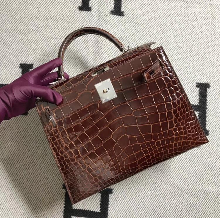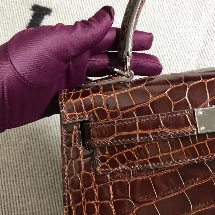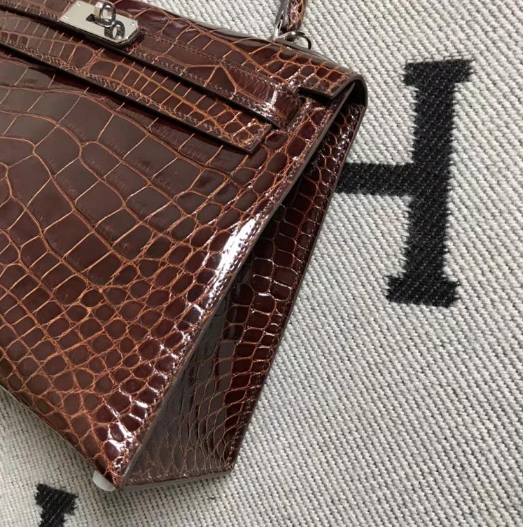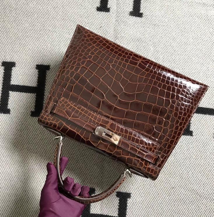 Hermès(爱马仕) Kelly凯莉包 美洲咖啡色 银扣 28cm