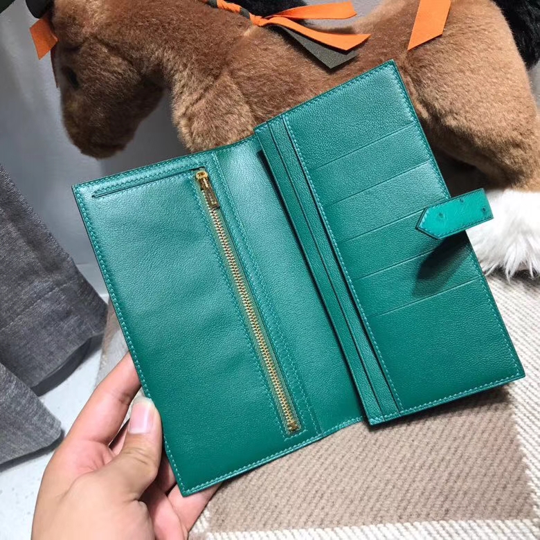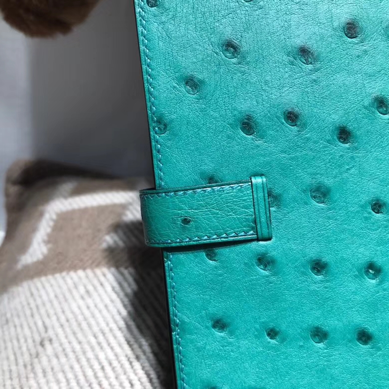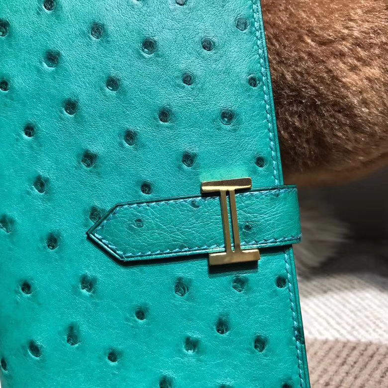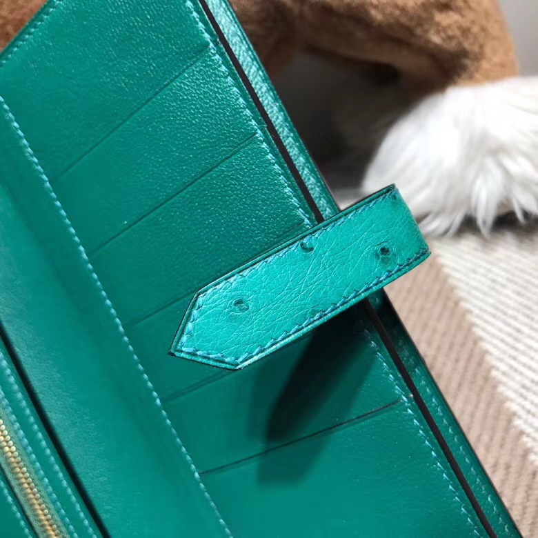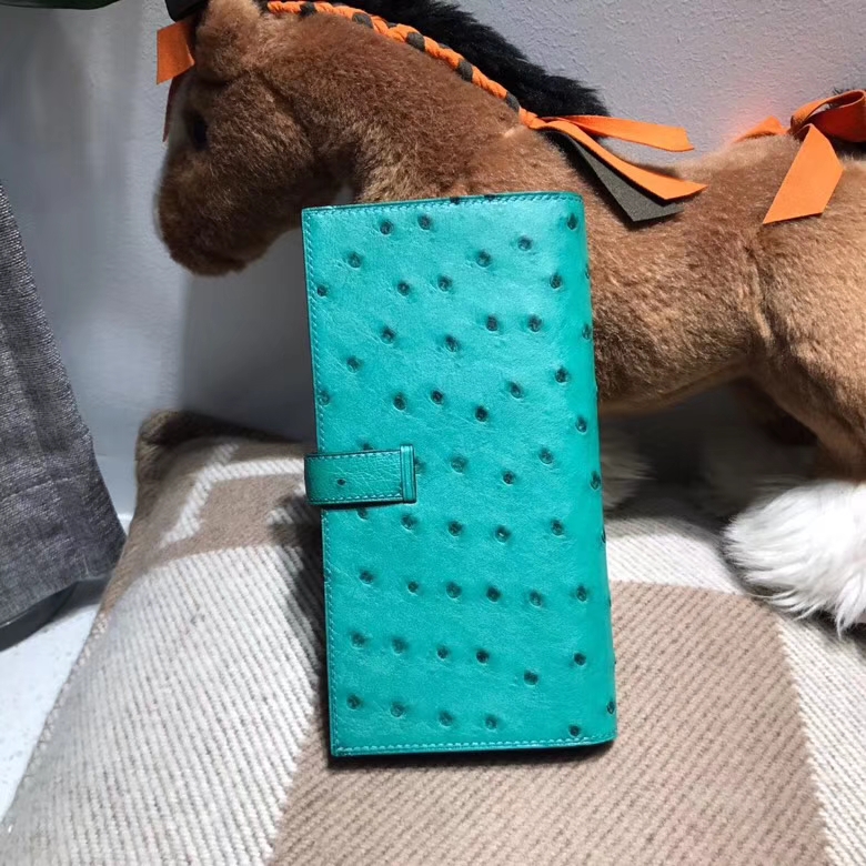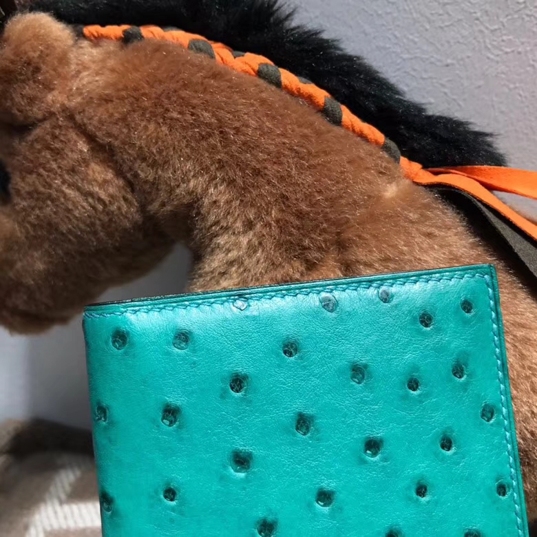 品牌:Hermès(爱马仕);类别:Wallet 钱包;颜色:丝绒绿;材质:鸵鸟皮;等级:顶级;附件:全套包装礼盒;功能:钱包钱夹
