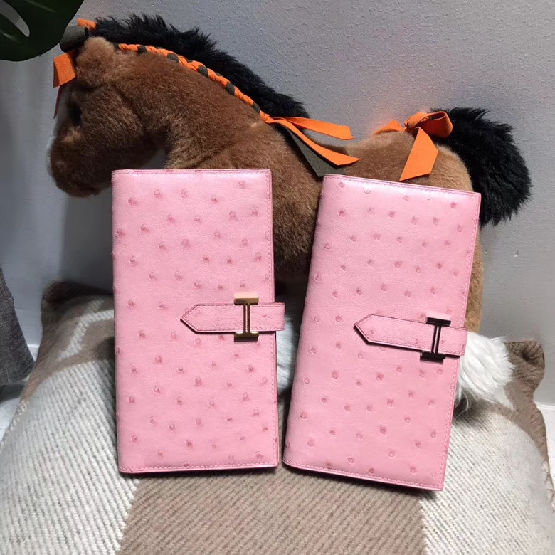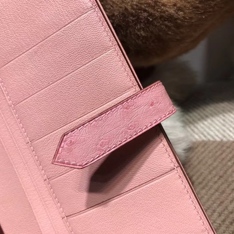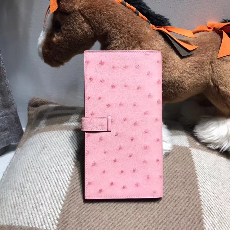 Hermès(爱马仕)bearn两折钱夹鸵鸟皮1Q Rose Confetti奶昔粉色 金扣 2018年10月20日 0 【鳄鱼世家】www.Eyubao.com Wallet 钱包 品牌:Hermès(爱马仕);类别:Wallet 钱包;颜色:奶昔粉色;材质:鸵鸟皮;等级:顶级;附件:全套包装礼盒;功能:钱包钱夹