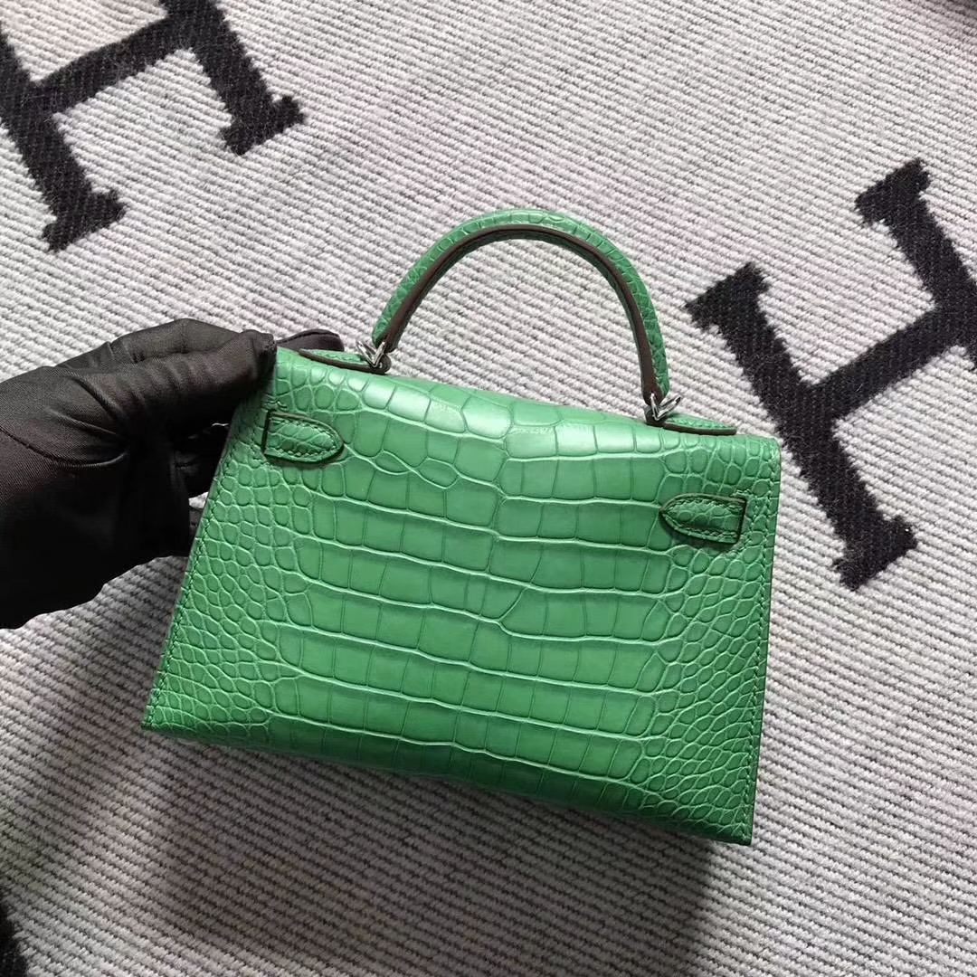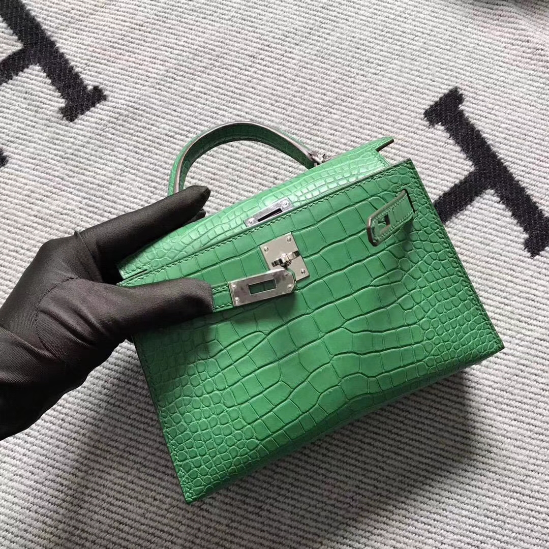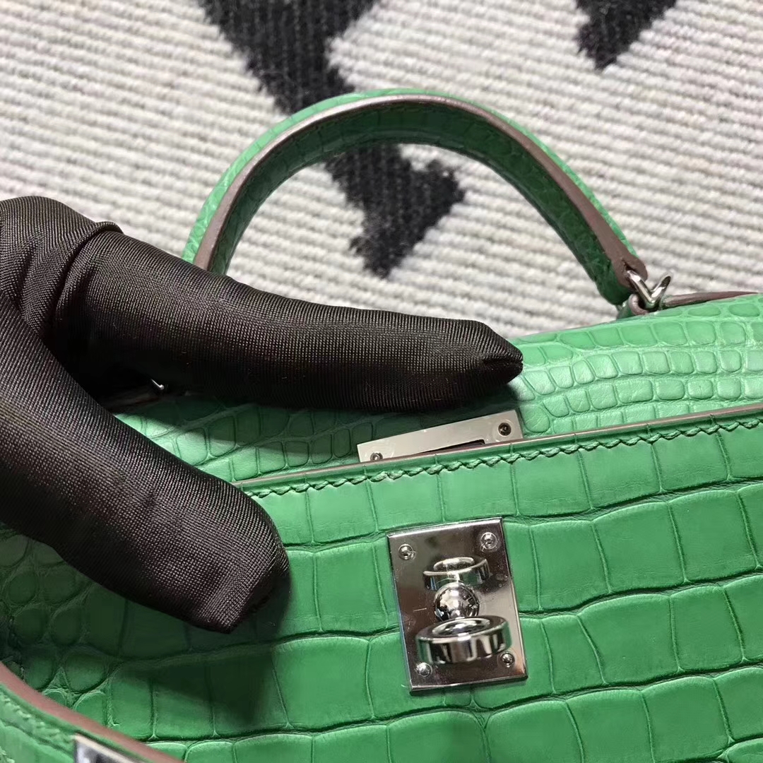 Hermès(爱马仕)小极品仙人绿mini 2代 美洲鳄鱼雾面 2018年10月20日 0 【鳄鱼世家】www.Eyubao.com Mini Kelly 2 Mini Kelly 迷你凯莉 品牌:Hermès(爱马仕);类别:Mini Kelly迷你凯莉包;颜色:仙人绿;材质:美洲鳄鱼雾面;等级:顶级;附件:全套包装礼盒;尺寸:22cm;功能:手提单肩包