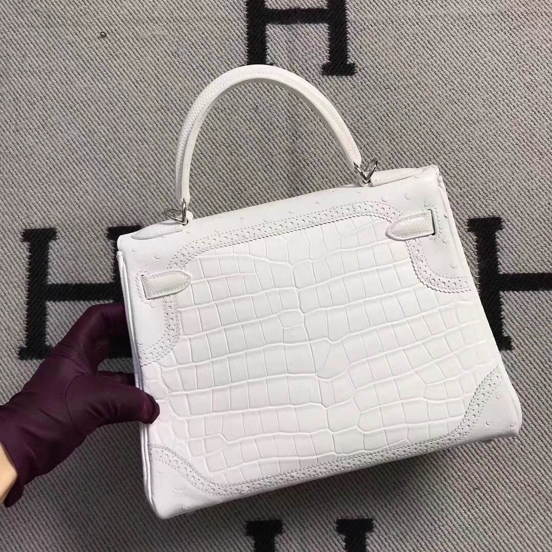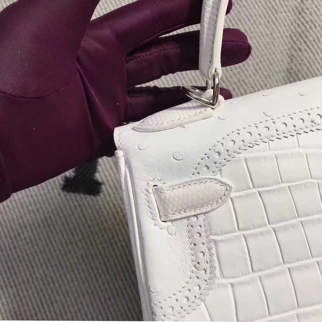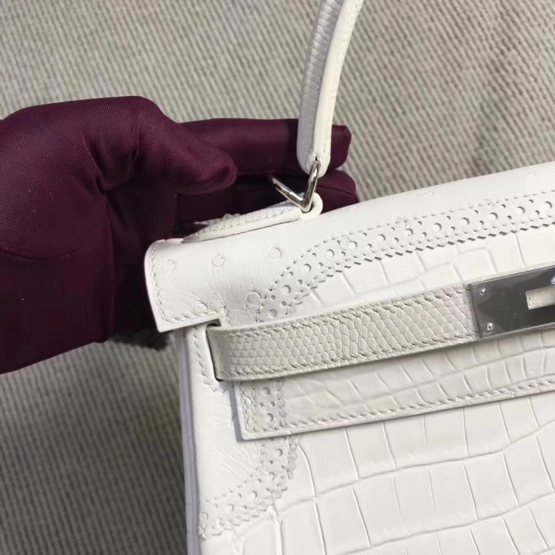 Hermès(爱马仕)蕾丝款 kelly 28cm 白色鳄鱼蜥蜴&鸵鸟三拼色 超级漂亮 2018年10月20日 0 【鳄鱼世家】www.Eyubao.com Kelly 28 Kelly 凯莉包 品牌:Hermès(爱马仕);类别:Kelly凯莉包;颜色:白色;材质:鳄鱼蜥蜴&鸵鸟皮;等级:顶级;附件:全套包装礼盒;尺寸:28cm;功能:手提单肩