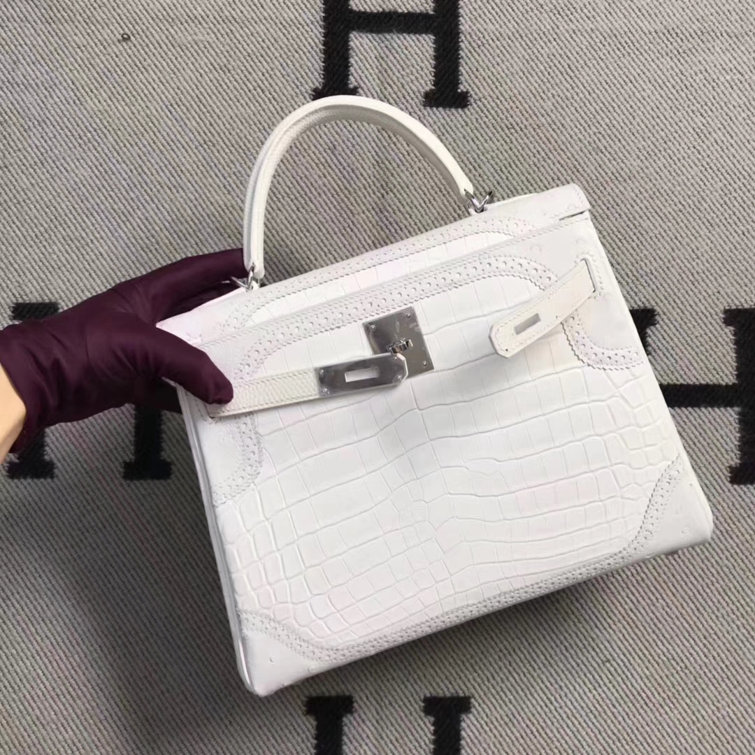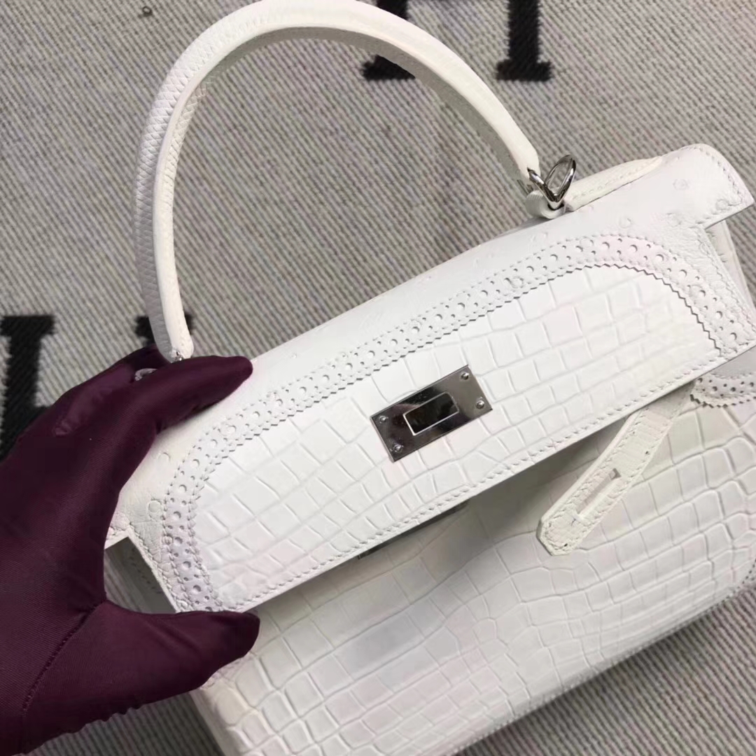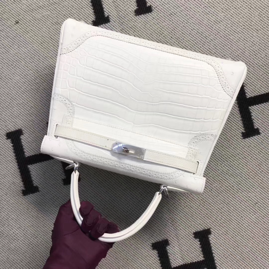 Hermès(爱马仕)蕾丝款 kelly 28cm 白色鳄鱼蜥蜴&鸵鸟三拼色 超级漂亮 2018年10月20日 0 【鳄鱼世家】www.Eyubao.com Kelly 28 Kelly 凯莉包 品牌:Hermès(爱马仕);类别:Kelly凯莉包;颜色:白色;材质:鳄鱼蜥蜴&鸵鸟皮;等级:顶级;附件:全套包装礼盒;尺寸:28cm;功能:手提单肩