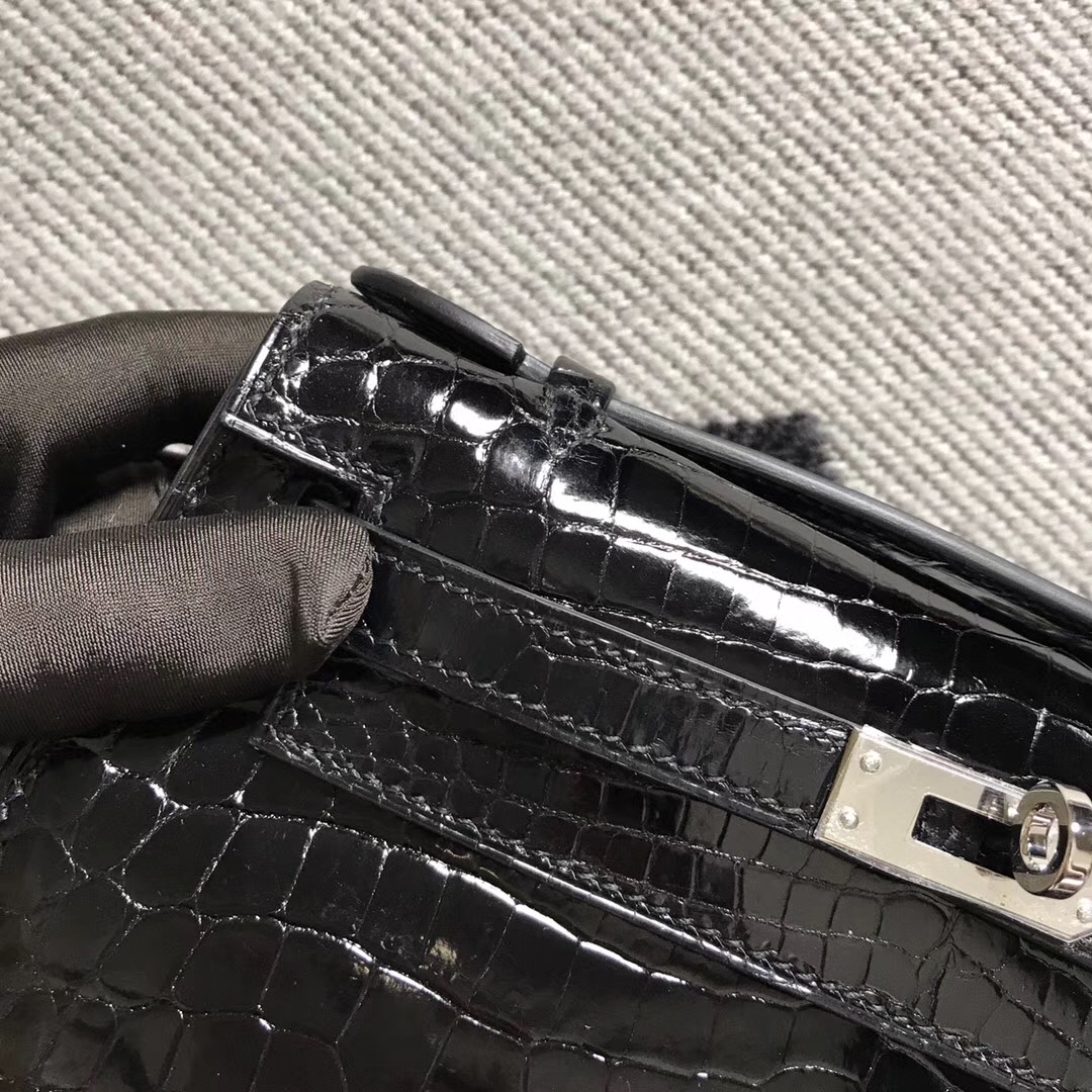 Hermès(爱马仕) Mini Kelly迷你凯莉 黑色 鳄鱼皮 银扣 22cm 2018年7月27日 0 【鳄鱼世家】www.Eyubao.com Mini Kelly 1 Mini Kelly 迷你凯莉 品牌:Hermès(爱马仕);类别:Mini Kelly迷你凯莉包;颜色:黑色;材质:精选 鳄鱼皮;等级:顶级;附件:全套包装礼盒;尺寸:22cm;功能:手提单肩包
