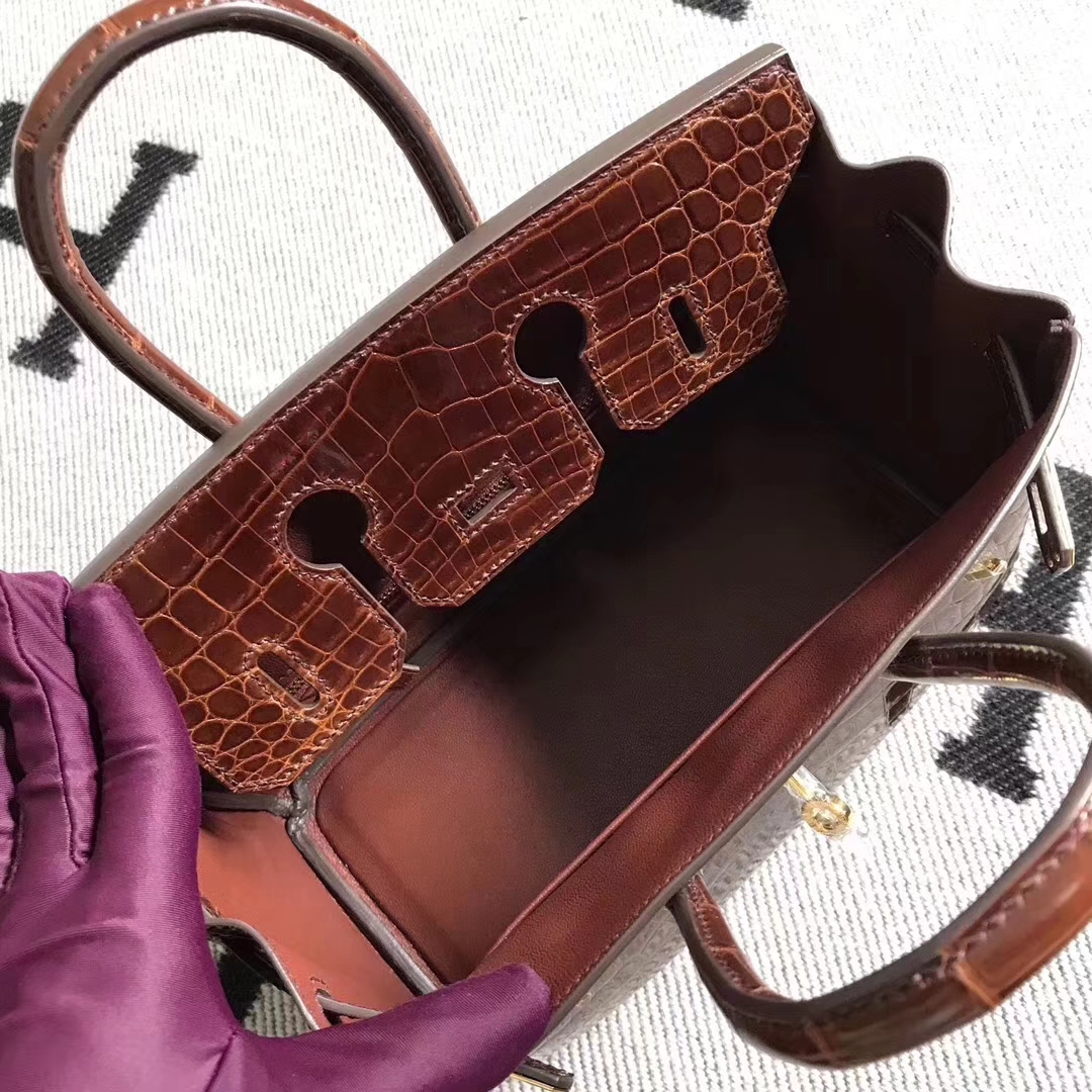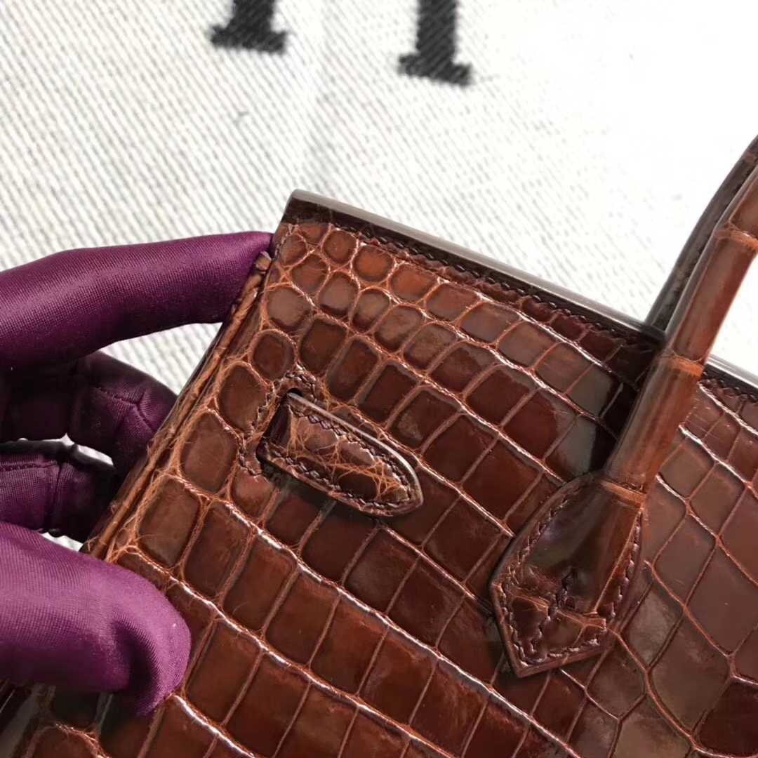 Hermès(爱马仕)亮面鳄鱼birkin 25 咖啡色 银扣 超美的 2018年10月20日 0 【鳄鱼世家】www.Eyubao.com Birkin 25 Birkin 铂金包 品牌:Hermès(爱马仕);类别:Birkin 铂金包;颜色:咖啡色;材质:亮面鳄鱼皮;等级:顶级;附件:全套包装礼盒;尺寸:30cm;功能:手提单肩包