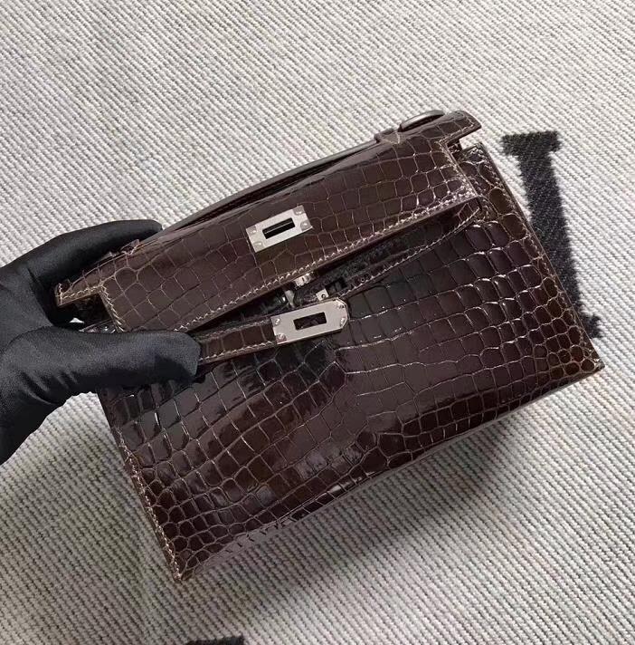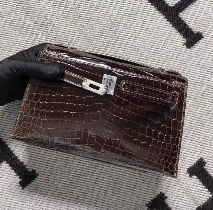 Hermès(爱马仕)亮面深咖色mini kelly 鳄鱼 银扣 2018年10月20日 0 【鳄鱼世家】www.Eyubao.com Mini Kelly 1 Mini Kelly 迷你凯莉 品牌:Hermès(爱马仕);类别:mini kelly迷你凯莉;颜色:深咖色;材质:亮面鳄鱼皮;等级:顶级;附件:全套包装礼盒;功能:手提单肩包