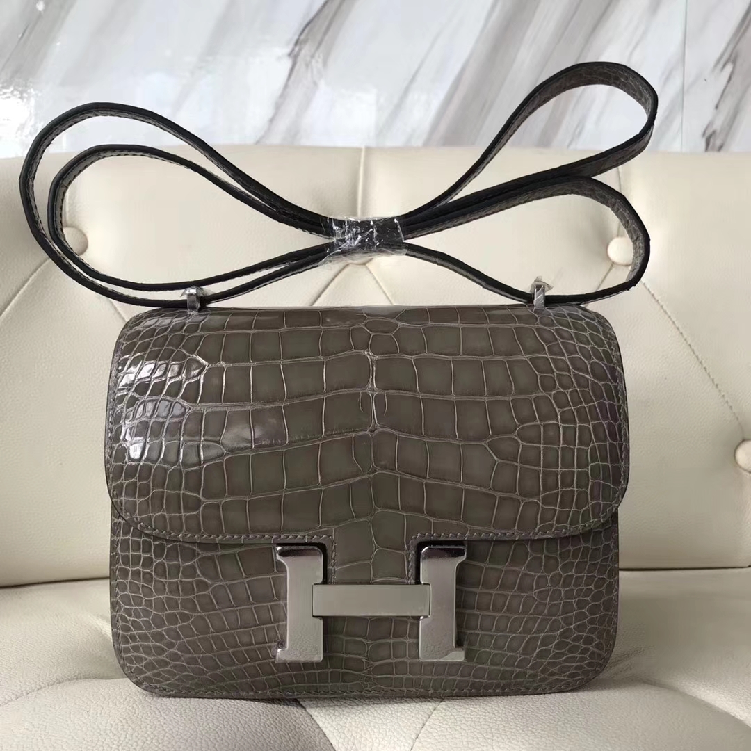 Constance 18 Constance 空姐包 Hermès(爱马仕)Constance Alligator shiny ck81 斑鸠灰 Gris T 银扣 18cm 2018年12月22日 0