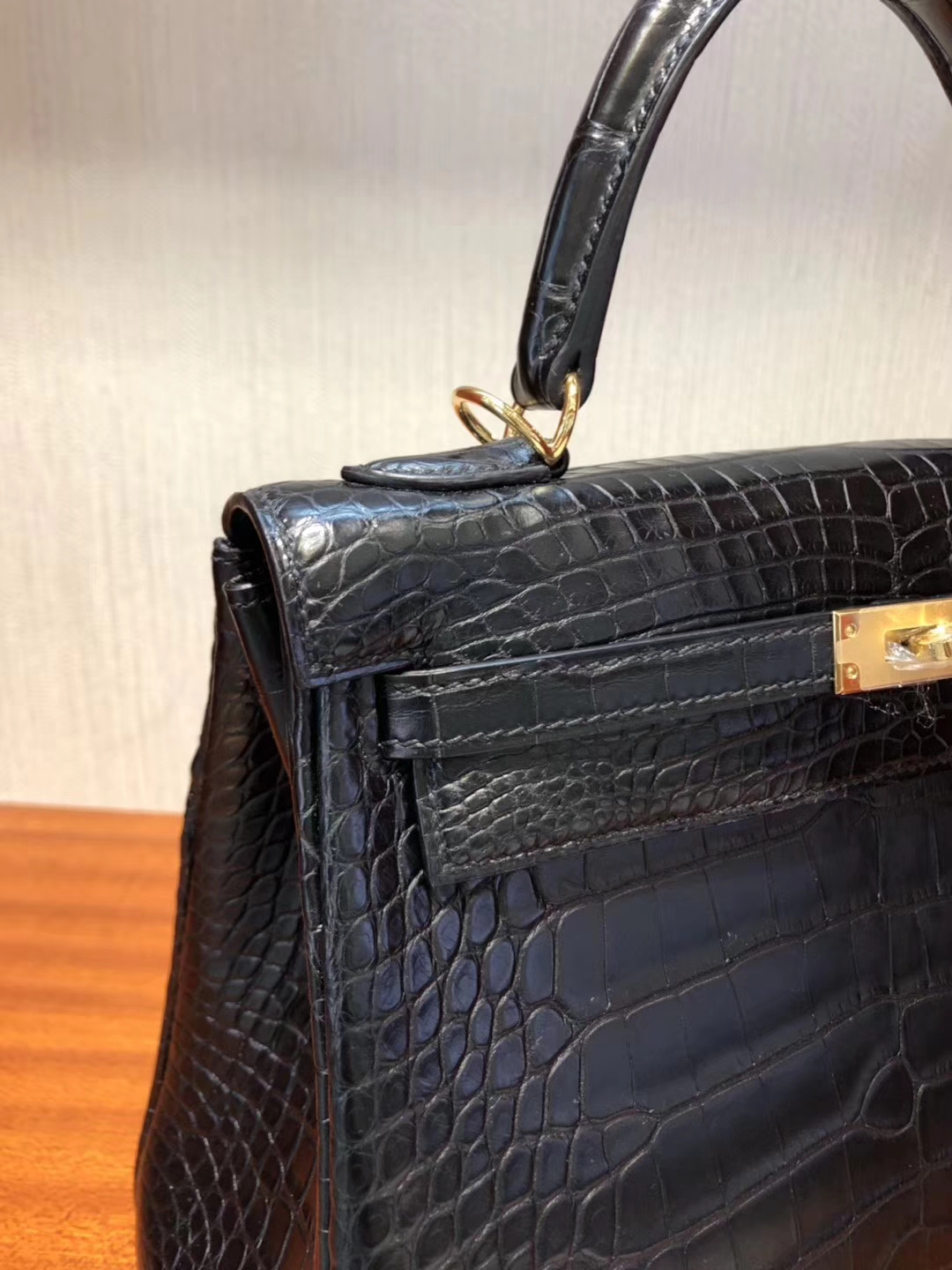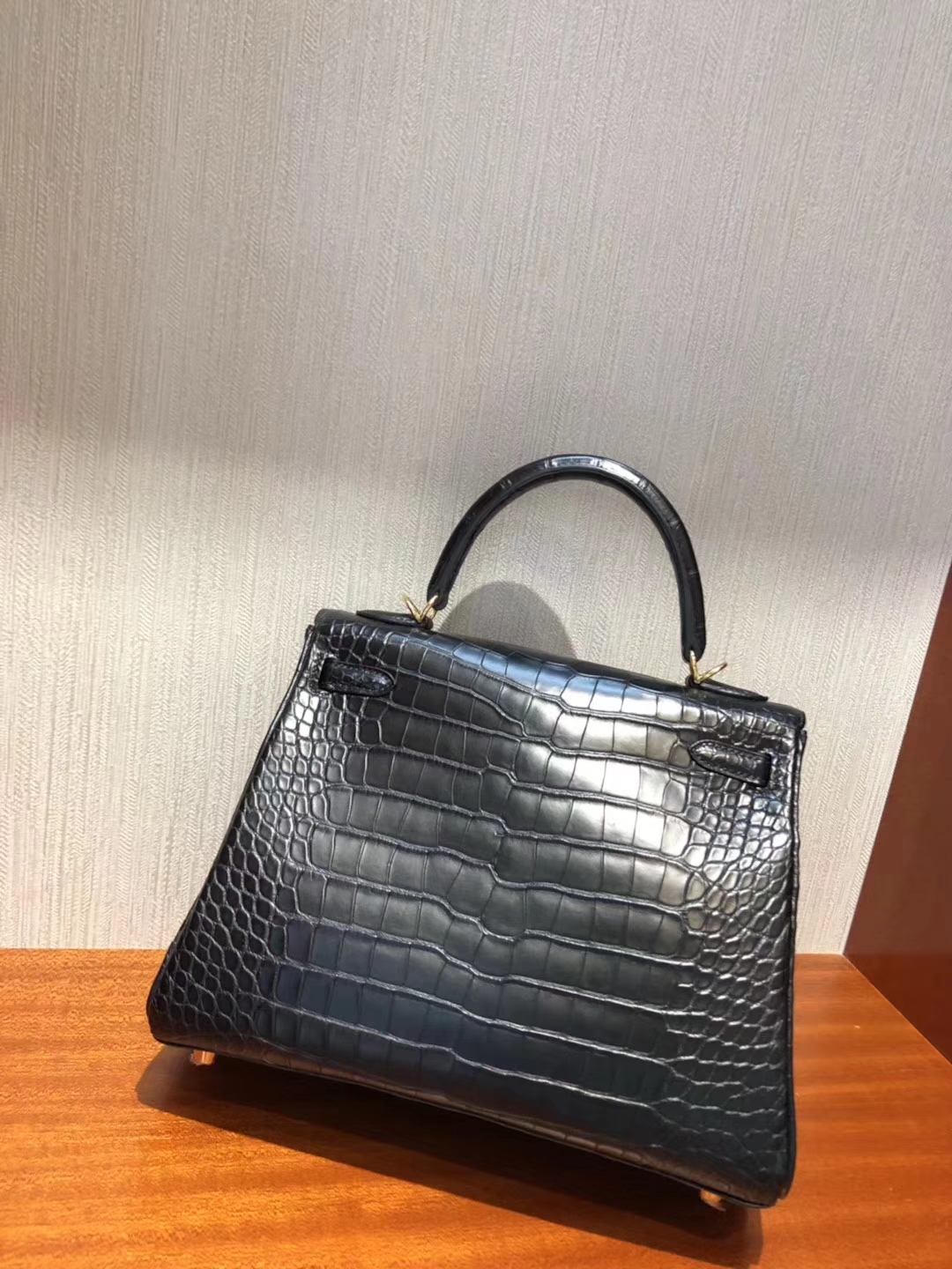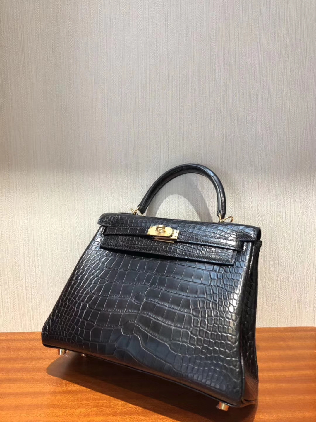 Hermès(爱马仕)Kelly25cm Matt alligator crocodile ck89黑色 蜡线全手工 金扣 2018年10月23日 0 【鳄鱼世家】www.Eyubao.com Kelly 25 Kelly 凯莉包 品牌:Hermès(爱马仕);类别:Kelly凯莉包;颜色:黑色;材质:shiny alligator crocodile;等级:顶级;附件:全套包装礼盒;尺寸:25cm;功能:手提单肩