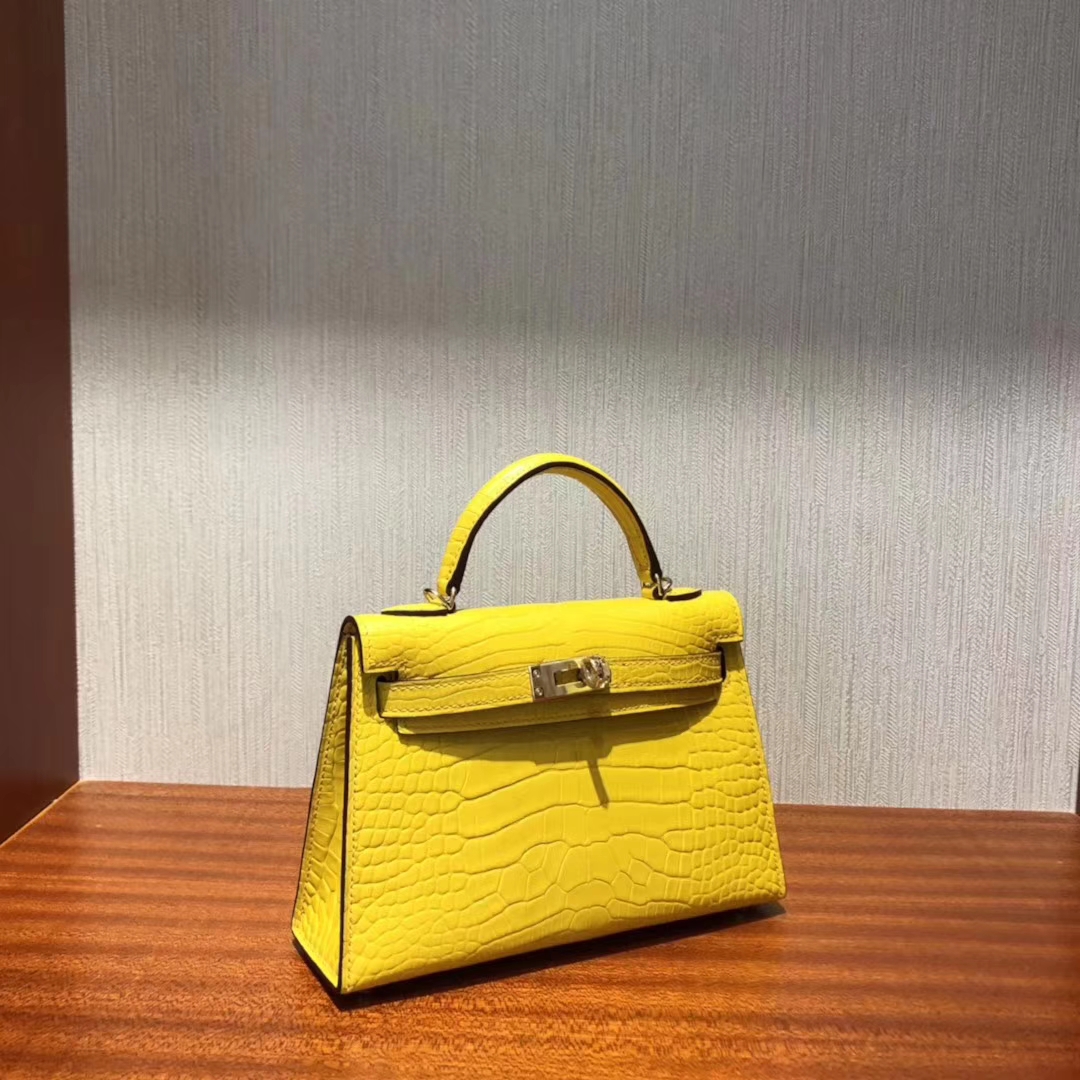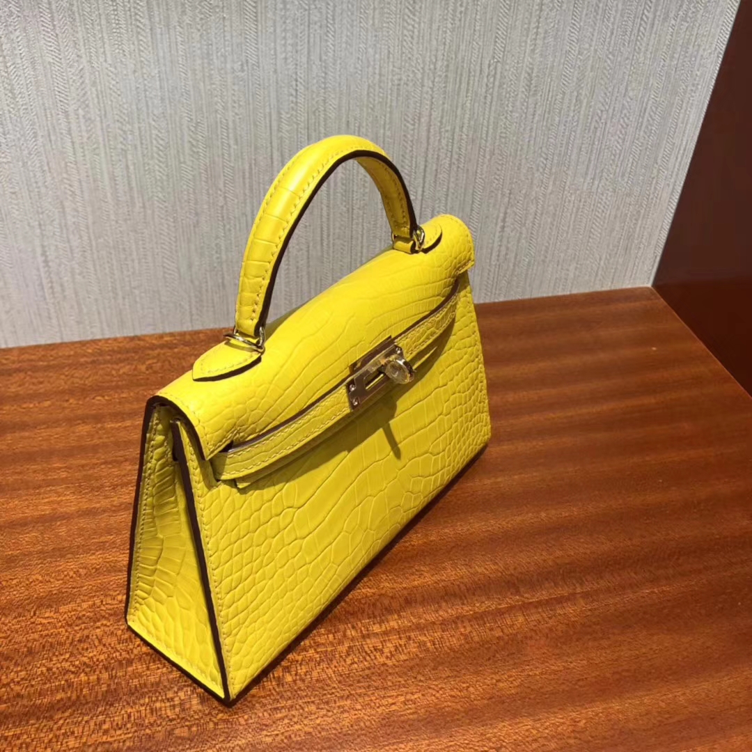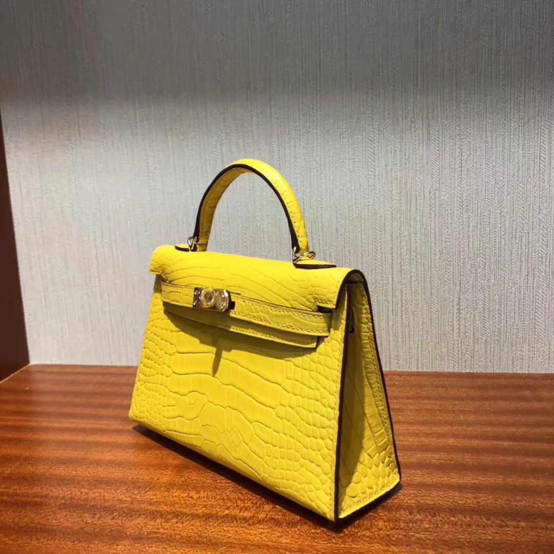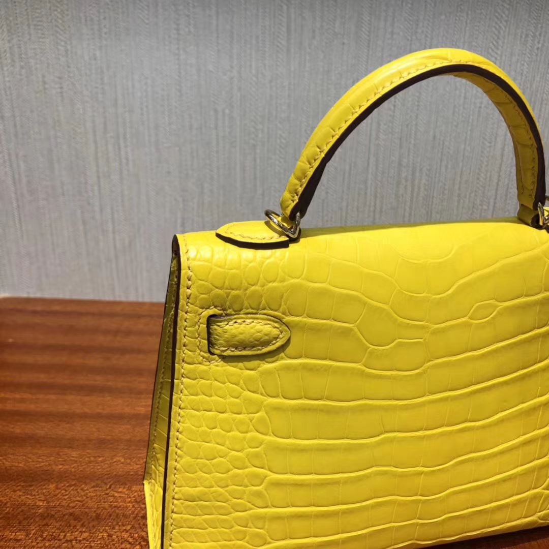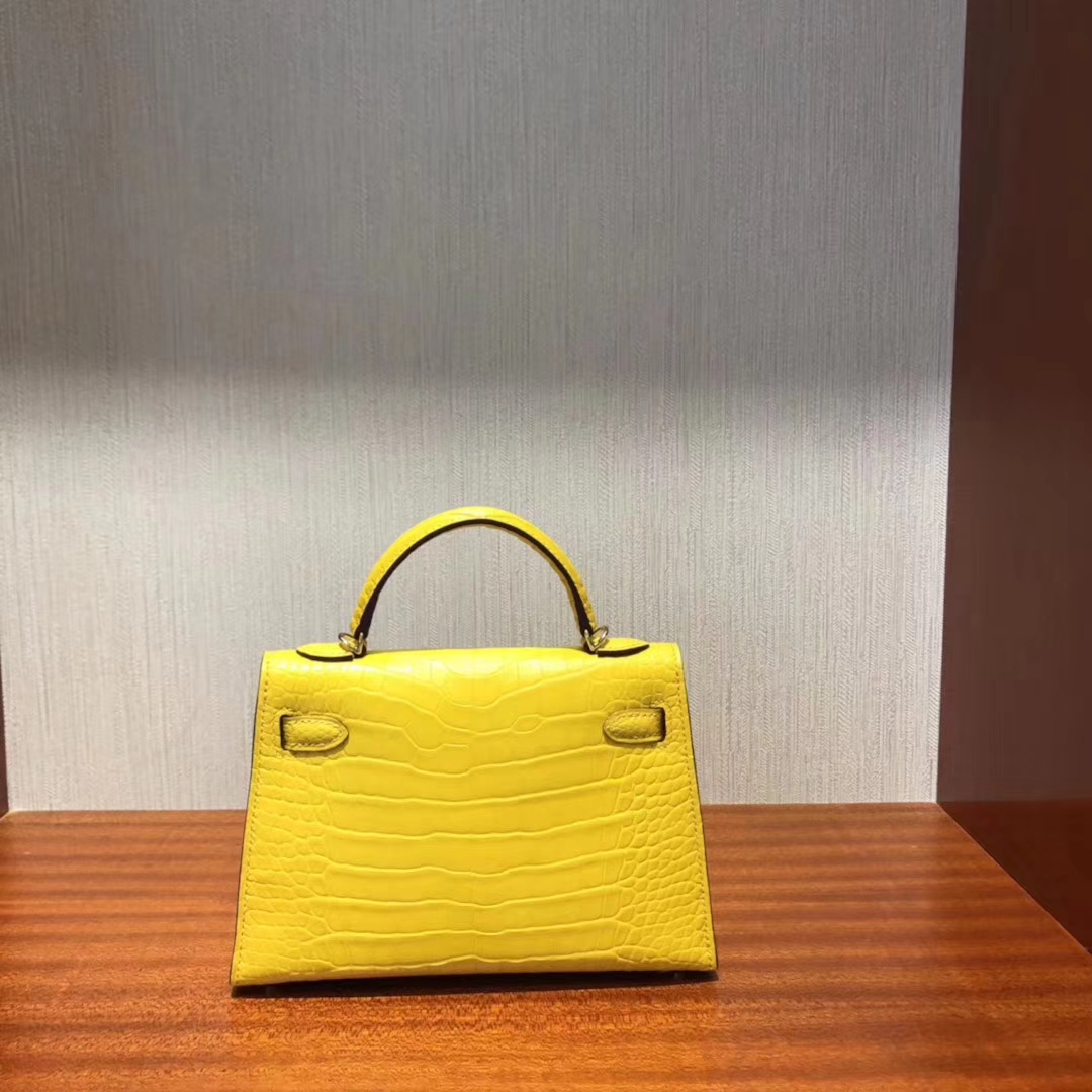 Hermès(爱马仕)Kelly2代 19cm Matt alligator crocodile 9D琥珀黄 蜡线全手工 金扣 2018年10月23日 0 【鳄鱼世家】www.Eyubao.com Mini Kelly 2 Mini Kelly 迷你凯莉 品牌:Hermès(爱马仕);类别:Mini Kelly迷你凯莉包;颜色:琥珀黄;材质:Matt alligator crocodile;等级:顶级;附件:全套包装礼盒;尺寸:22cm;功能:手提单肩包
