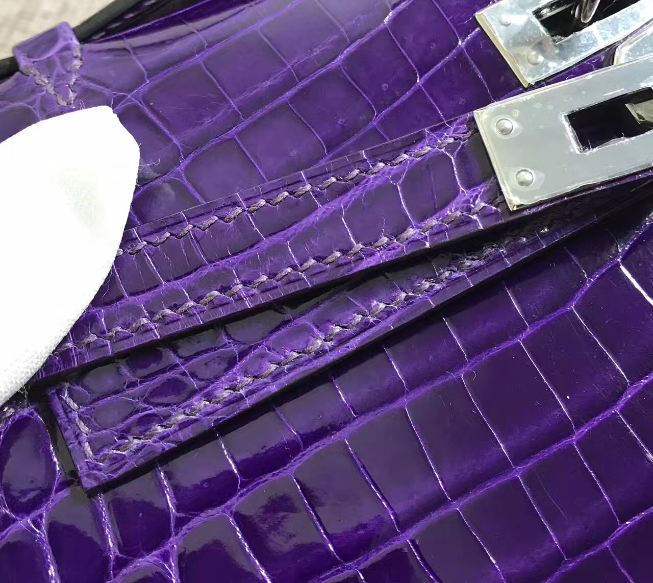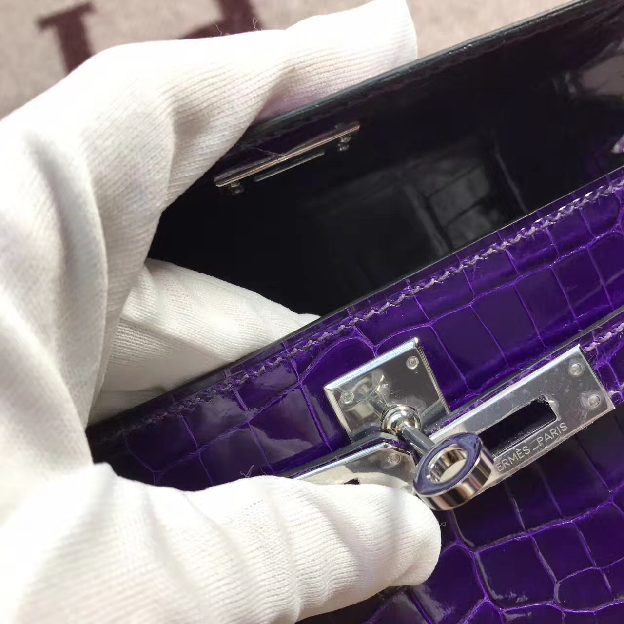 Hermès(爱马仕) Mini Kelly迷你凯莉 紫色 鳄鱼皮 银扣 22cm 2018年7月27日 0 【鳄鱼世家】www.Eyubao.com Mini Kelly 1 Mini Kelly 迷你凯莉 品牌:Hermès(爱马仕);类别:Mini Kelly迷你凯莉包;颜色:紫色;材质:精选 鳄鱼皮;等级:顶级;附件:全套包装礼盒;尺寸:22cm;功能:手提单肩包