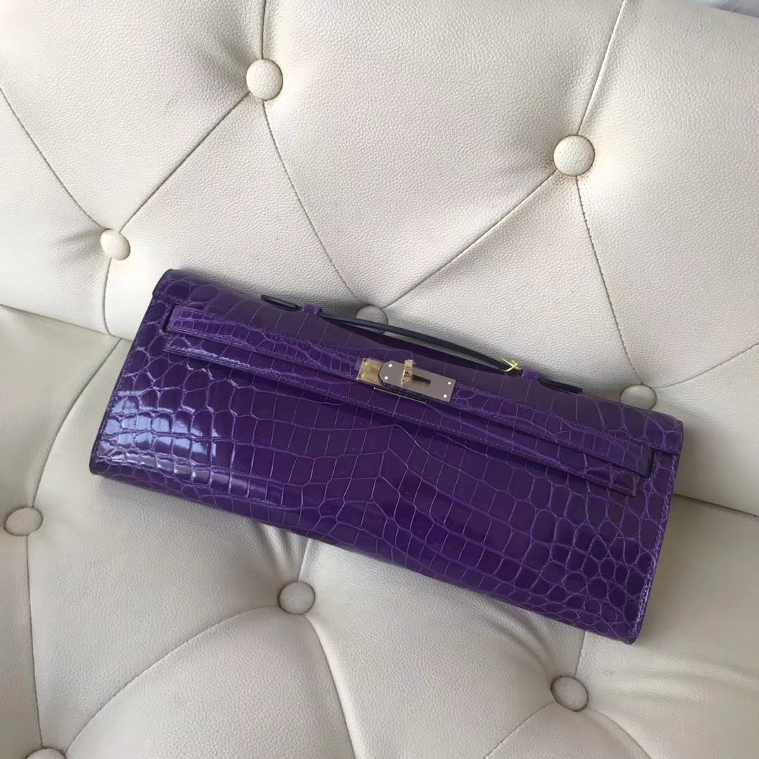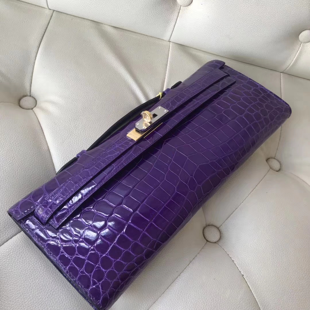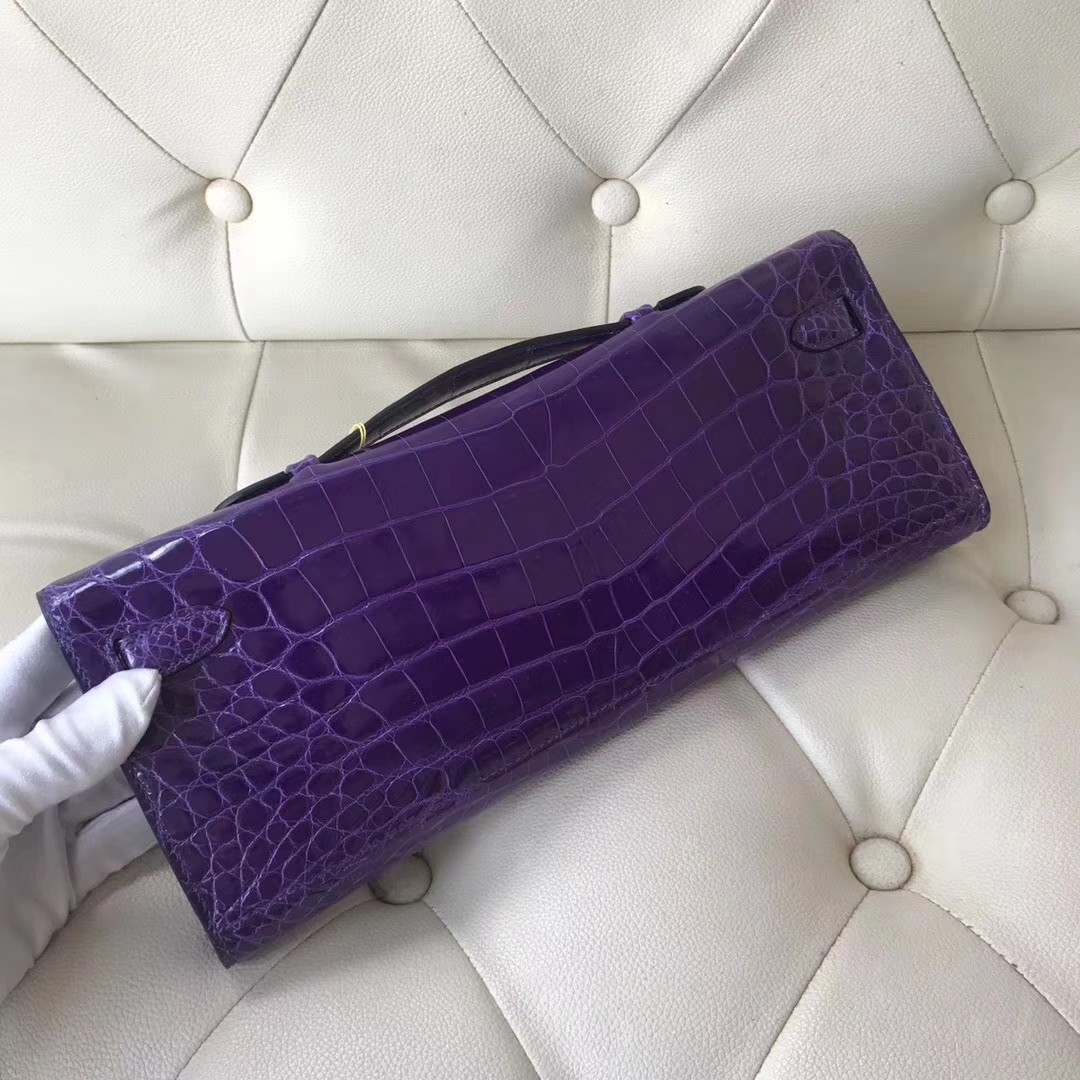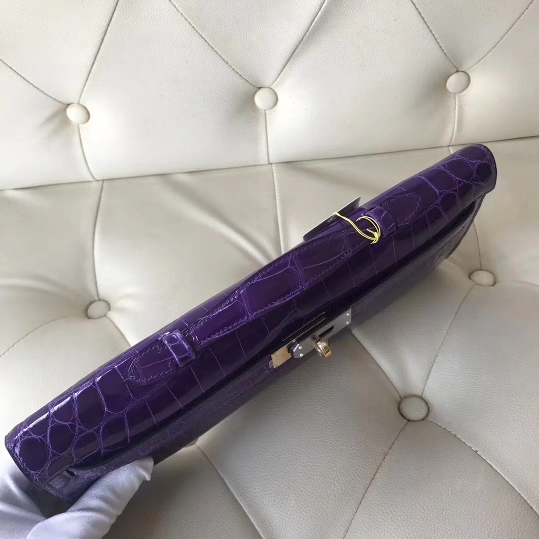 Hermès(爱马仕)kelly cut 31cm Crocodile shiny 亮面鳄鱼 5L 极度紫 金扣 2018年10月26日 0 【鳄鱼世家】www.Eyubao.com KellyCut 手拿包 品牌:Hermès(爱马仕);类别:kelly cut凯莉包;颜色:极度紫;材质:Crocodile shiny;等级:顶级;附件:全套包装礼盒;尺寸:31cm;功能:手拿包