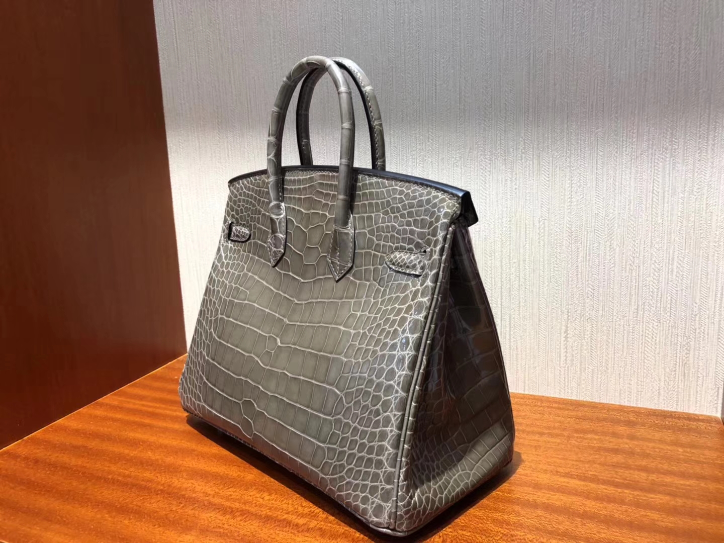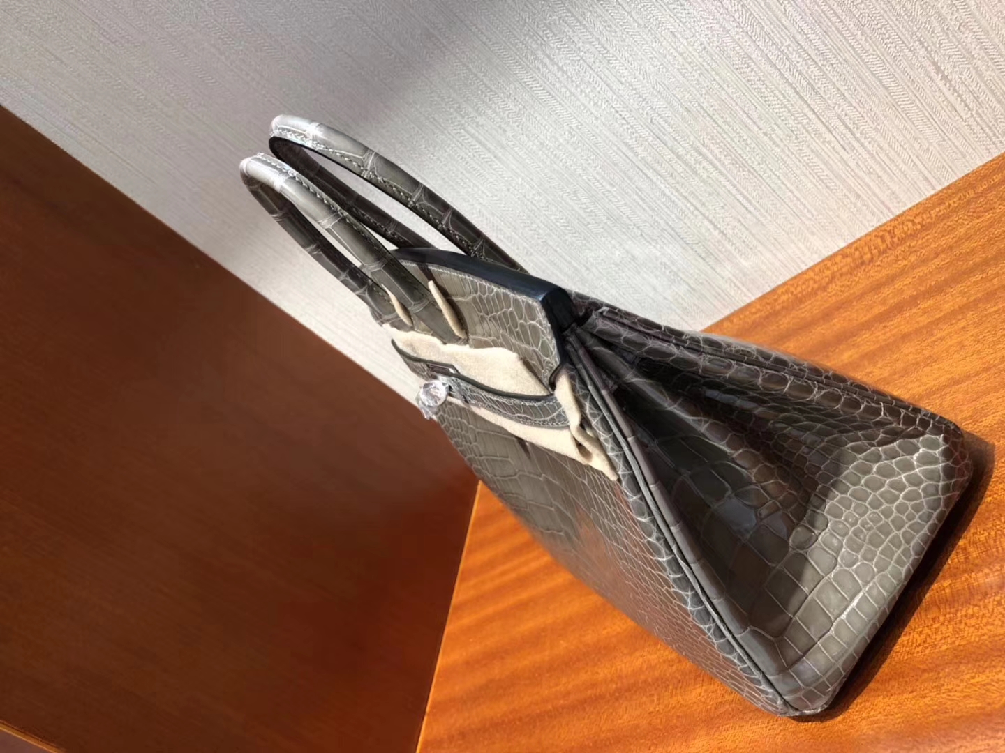 Birkin 25 Birkin 铂金包 Hermès(爱马仕)Birkin shiny nilo crocodile 亮面两点尼罗鳄 ck81斑鸠灰 蜡线全手工 金扣 25cm 2019年5月18日 0