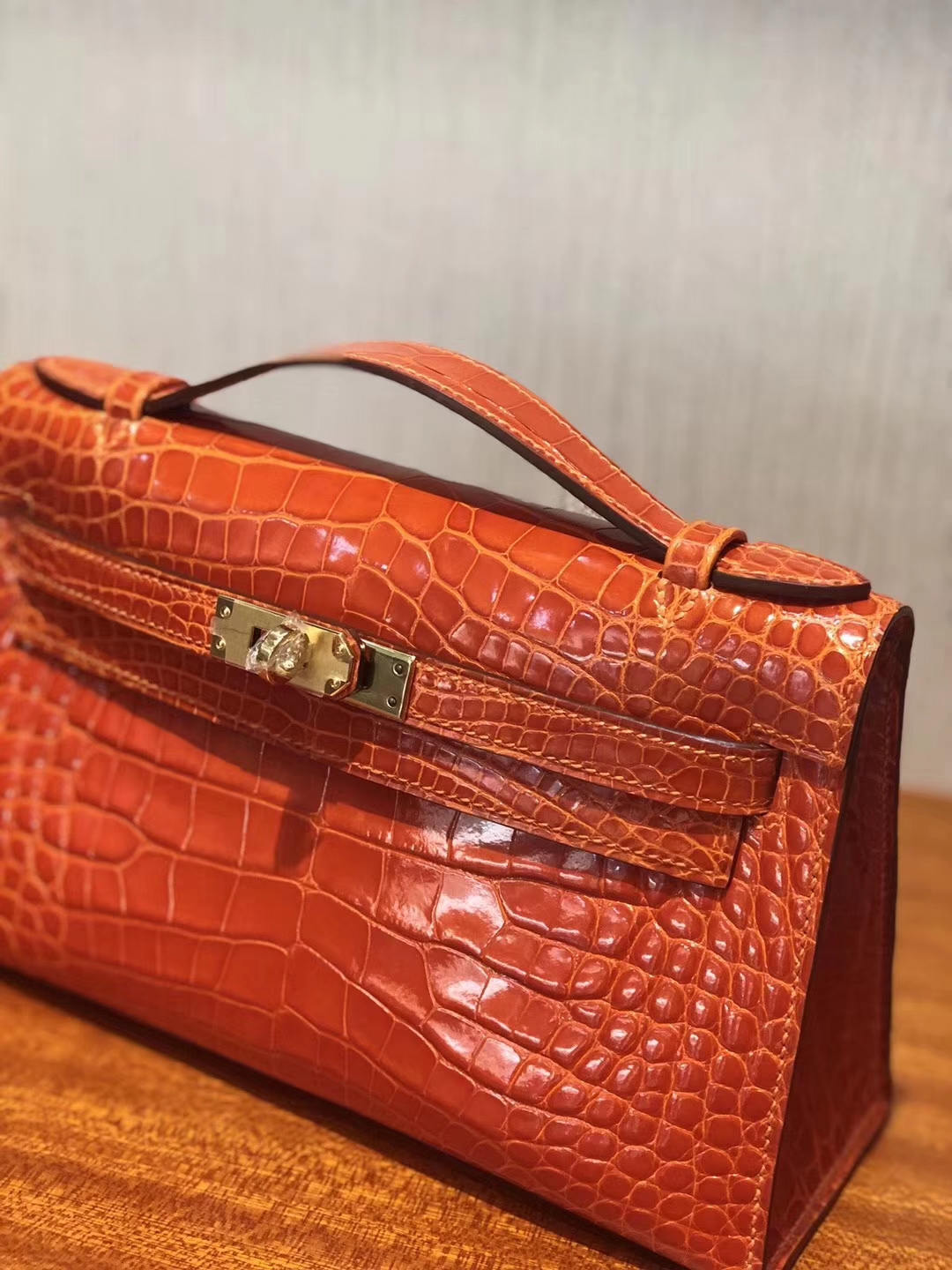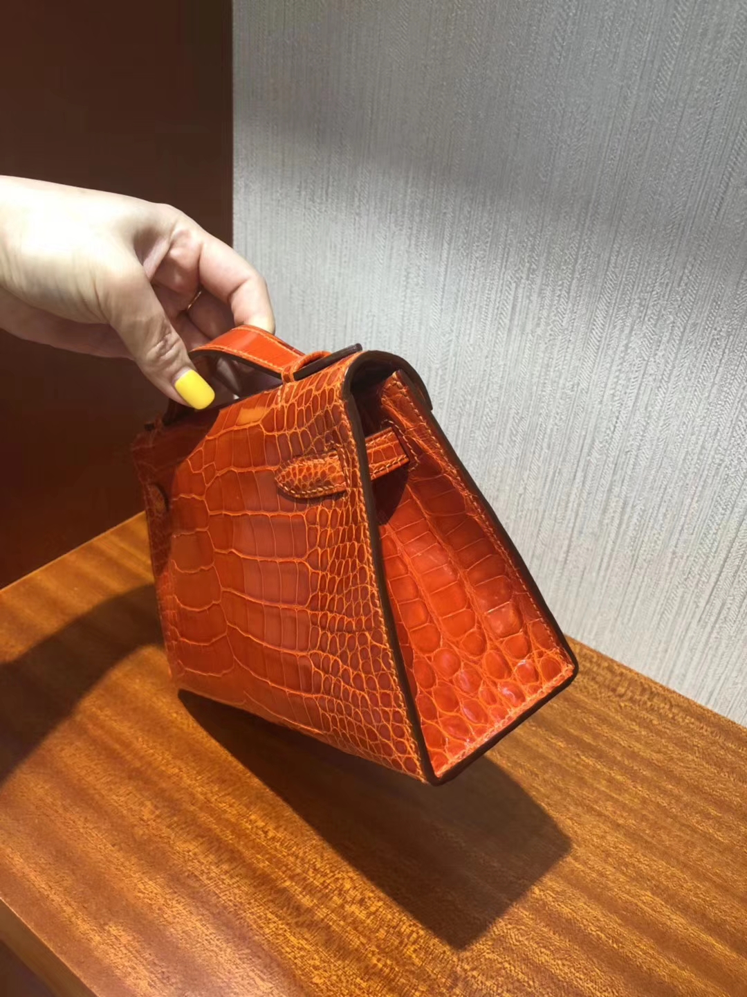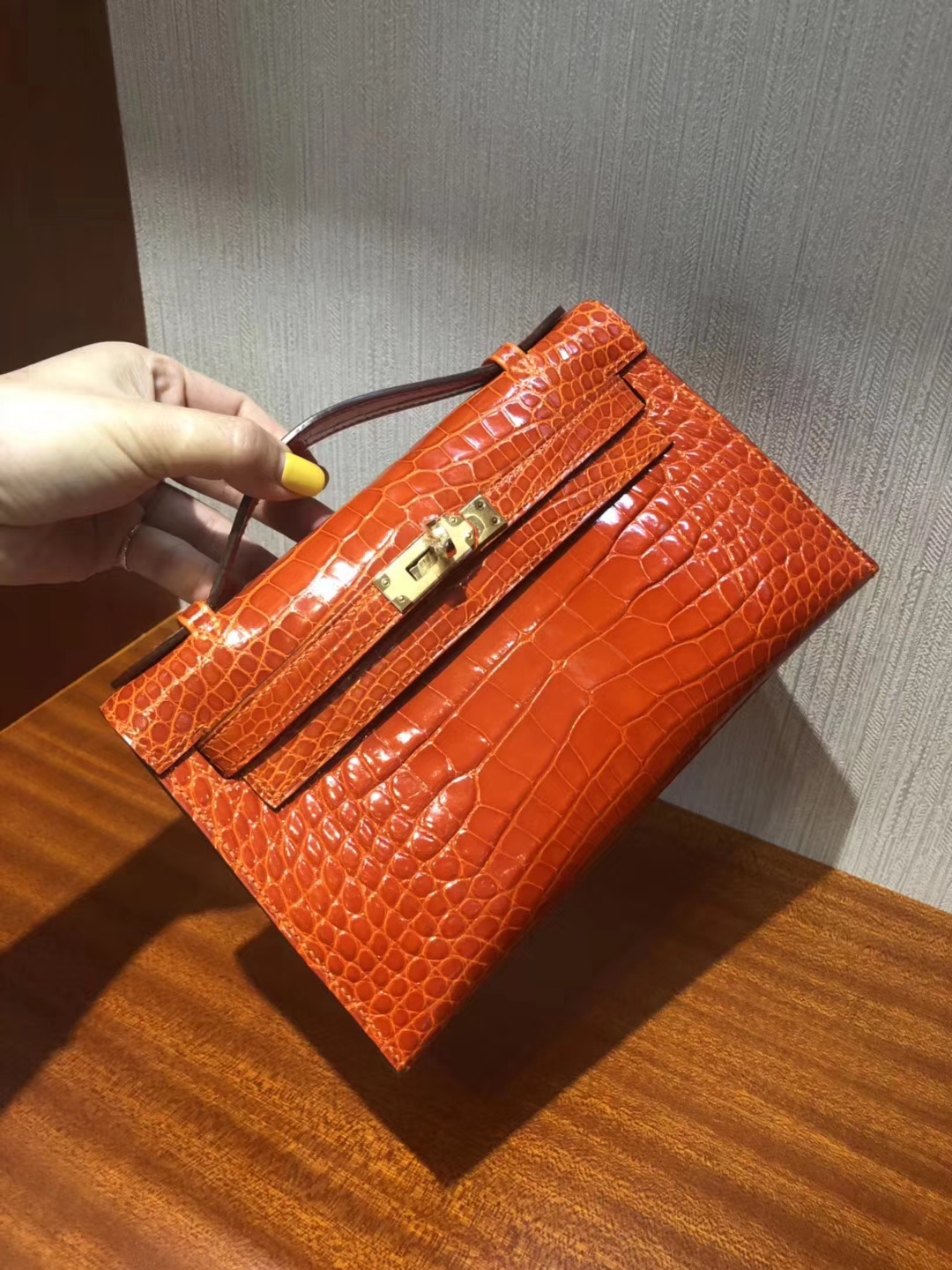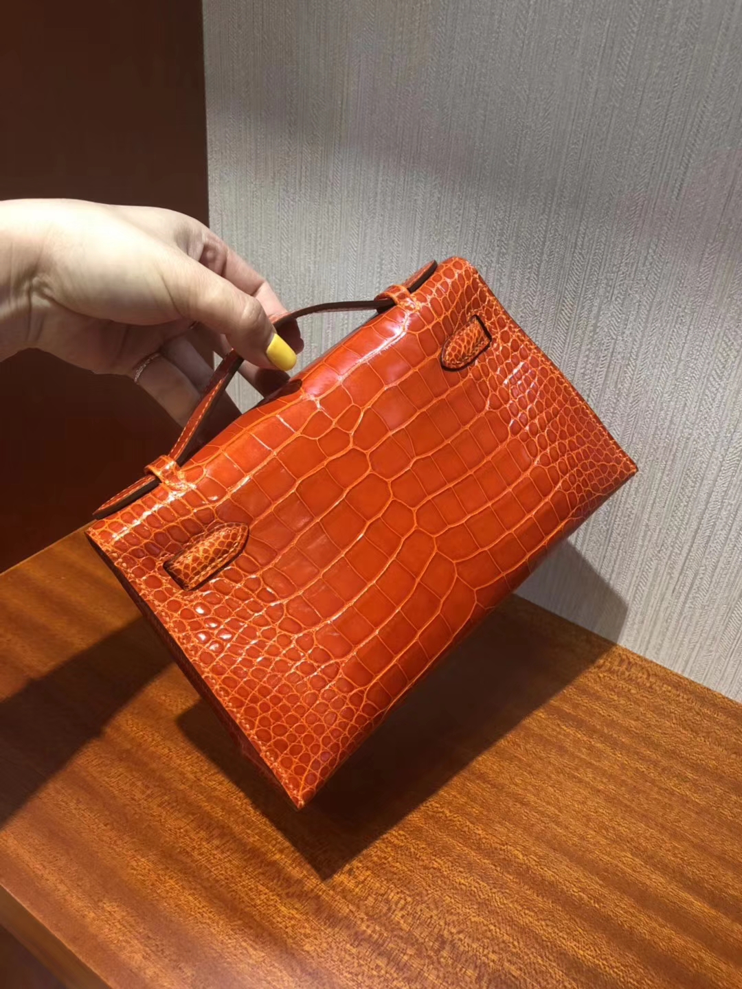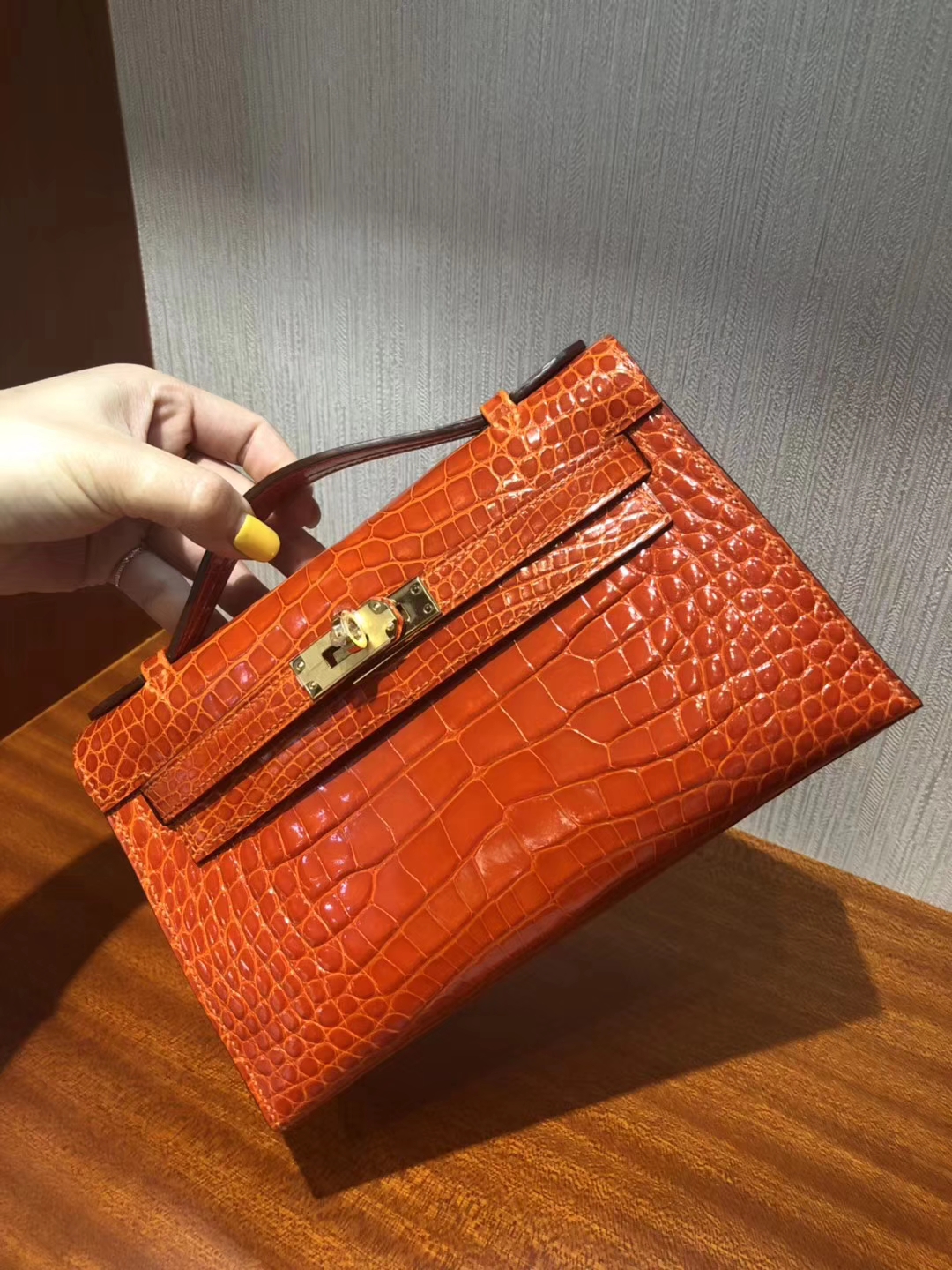 Hermès(爱马仕)Minikelly pochette 22cm Alligator shiny 亮面 8V 罂粟橘 金扣 2018年10月26日 0 【鳄鱼世家】www.Eyubao.com Mini Kelly 1 Mini Kelly 迷你凯莉 品牌:Hermès(爱马仕);类别:Mini Kelly迷你凯莉包;颜色:罂粟橘;材质:亮面鳄鱼;等级:顶级;附件:全套包装礼盒;尺寸:22CM;功能:手提单肩包