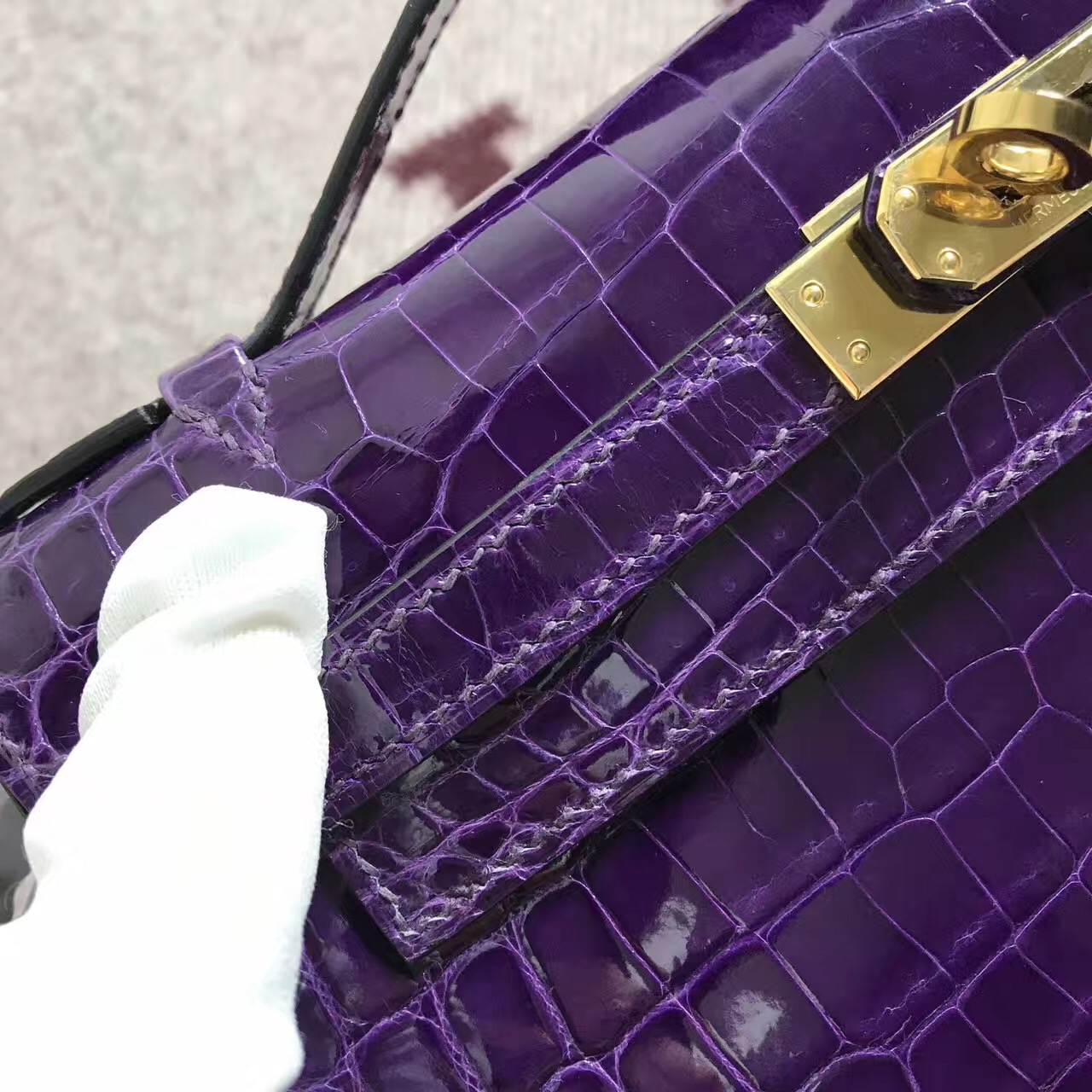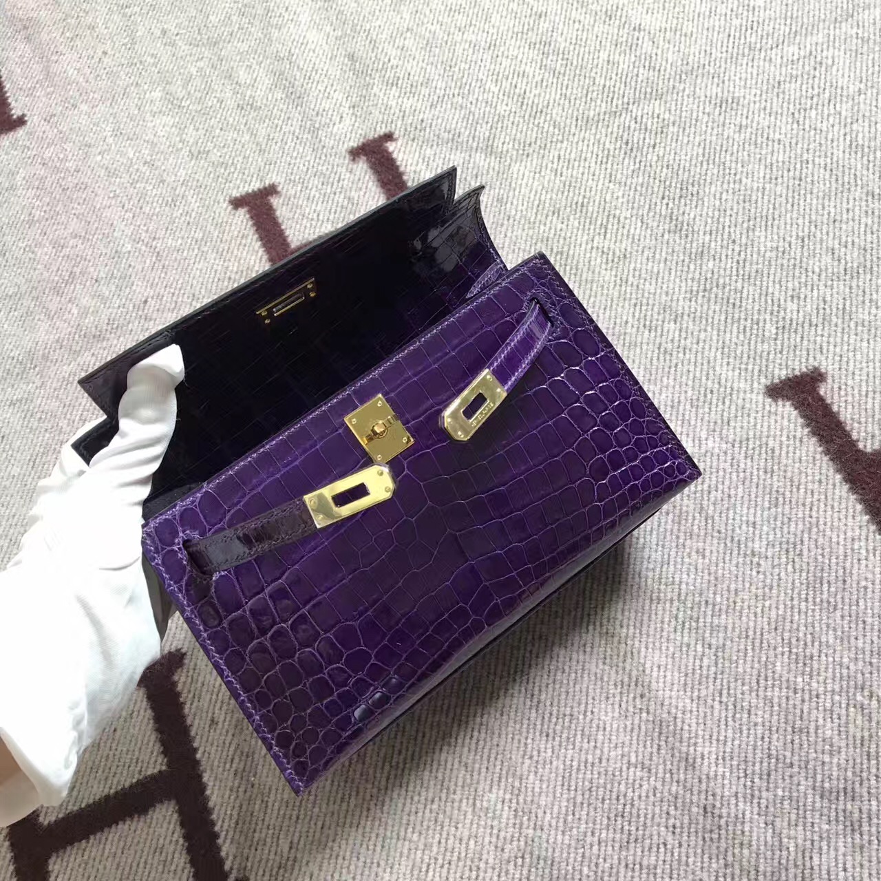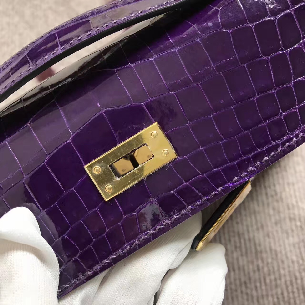 Hermès(爱马仕) Mini Kelly迷你凯莉 葡萄紫 鳄鱼皮 金扣 22cm 2018年7月27日 0 【鳄鱼世家】www.Eyubao.com Mini Kelly 1 Mini Kelly 迷你凯莉 品牌:Hermès(爱马仕);类别:Mini Kelly迷你凯莉包;颜色:葡萄紫;材质:精选 鳄鱼皮;等级:顶级;附件:全套包装礼盒;尺寸:22cm;功能:手提单肩包