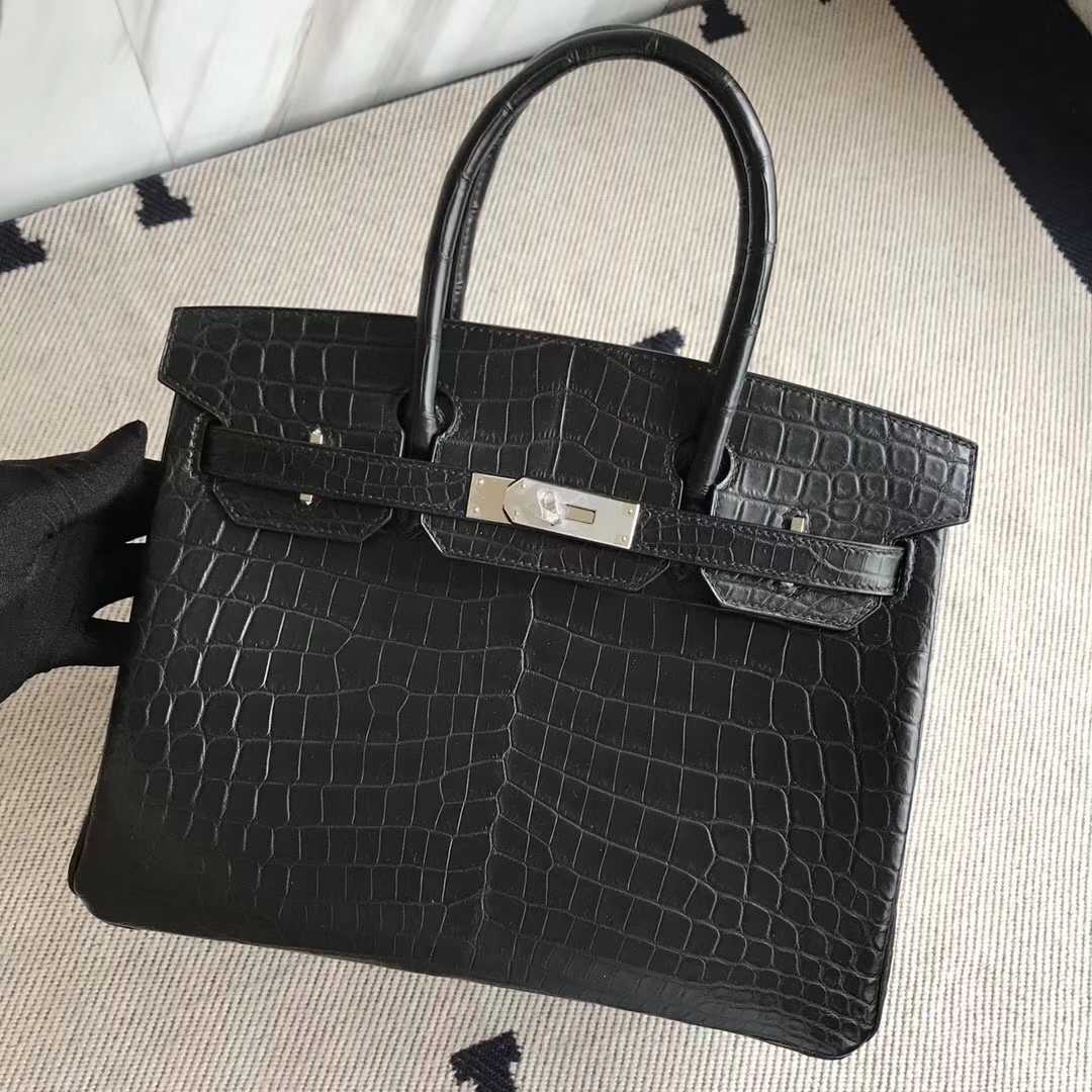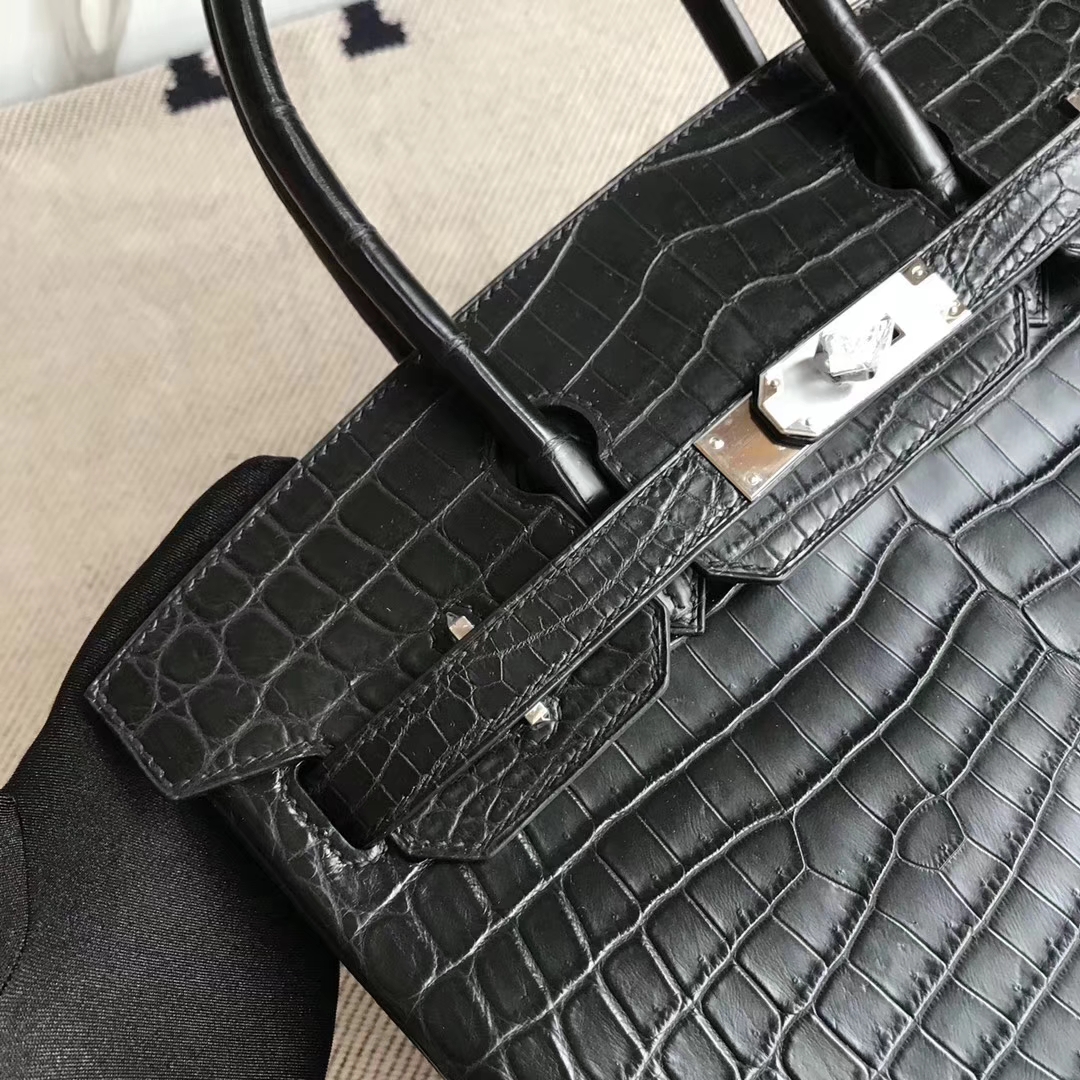 Hermès(爱马仕)Birkin30cm Crocodile matt 雾面鳄鱼 ck89 黑色 银扣 黑色超帅气 2018年10月26日 0 【鳄鱼世家】www.Eyubao.com Birkin 30 Birkin 铂金包 品牌:Hermès(爱马仕);类别:Birkin 铂金包;颜色:黑色;材质:雾面鳄鱼皮;等级:顶级;附件:全套包装礼盒;尺寸:30cm;功能:手提单肩包