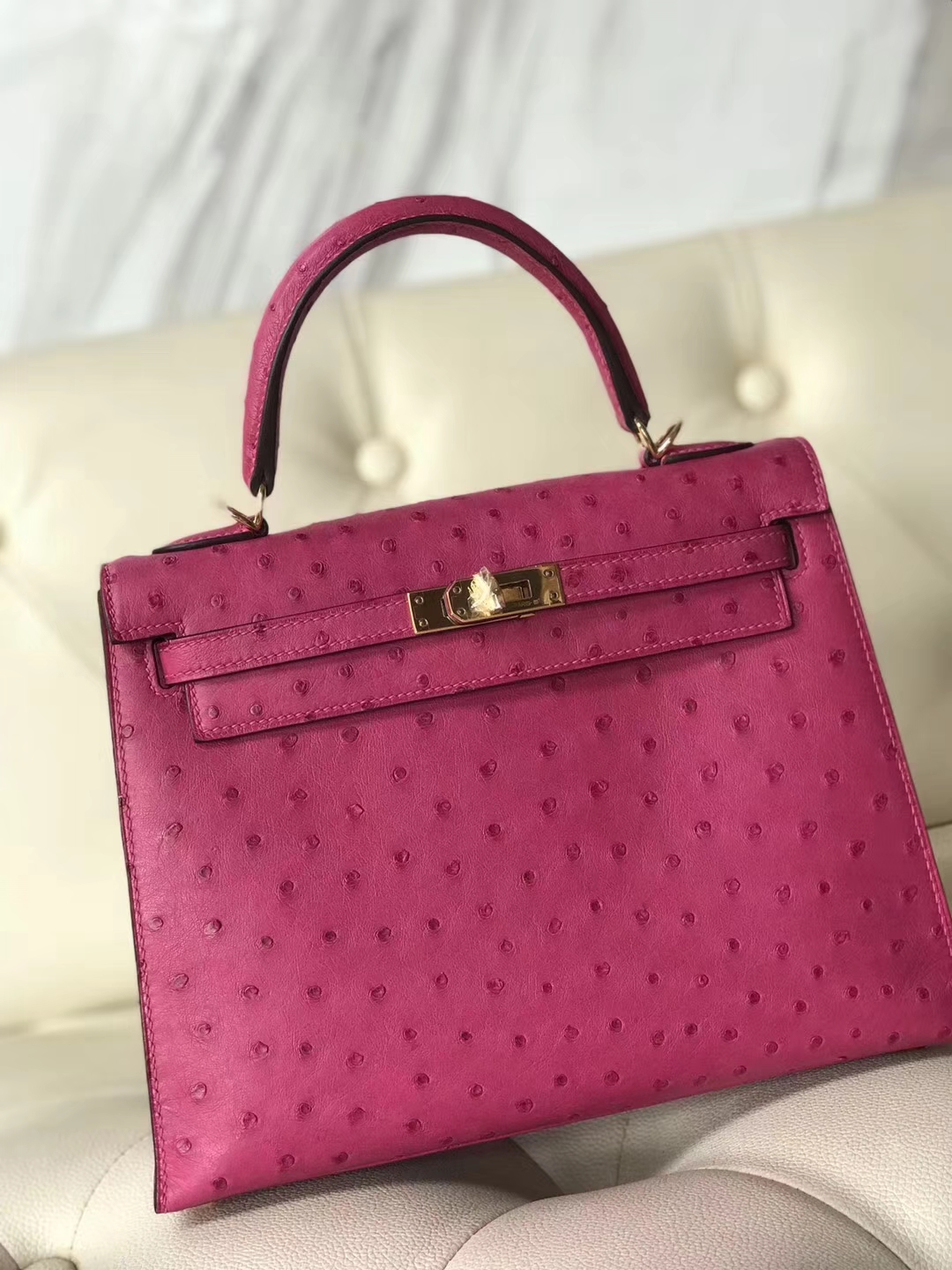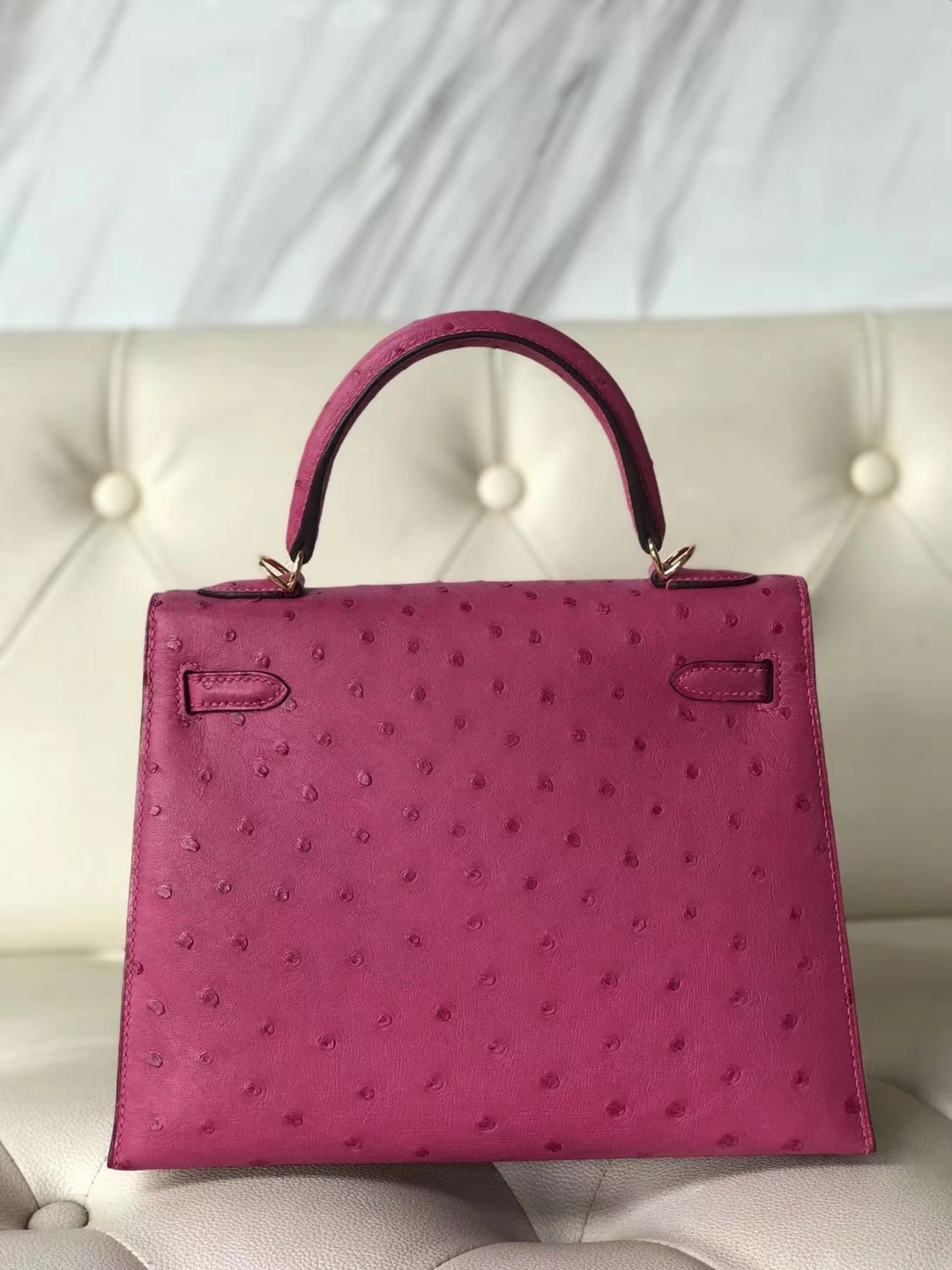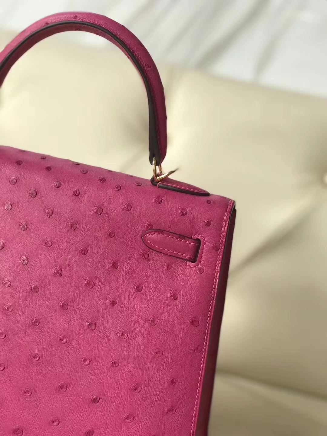 Hermès(爱马仕)Kelly25cm Ostrich kk 鸵鸟 玫红 2018年10月26日 0 【鳄鱼世家】www.Eyubao.com Kelly 25 Kelly 凯莉包 品牌:Hermès(爱马仕);类别:Kelly凯莉包;颜色:玫红色;材质:精选鸵鸟纹皮;等级:顶级;附件:全套包装礼盒;尺寸:25cm;功能:手提单肩包