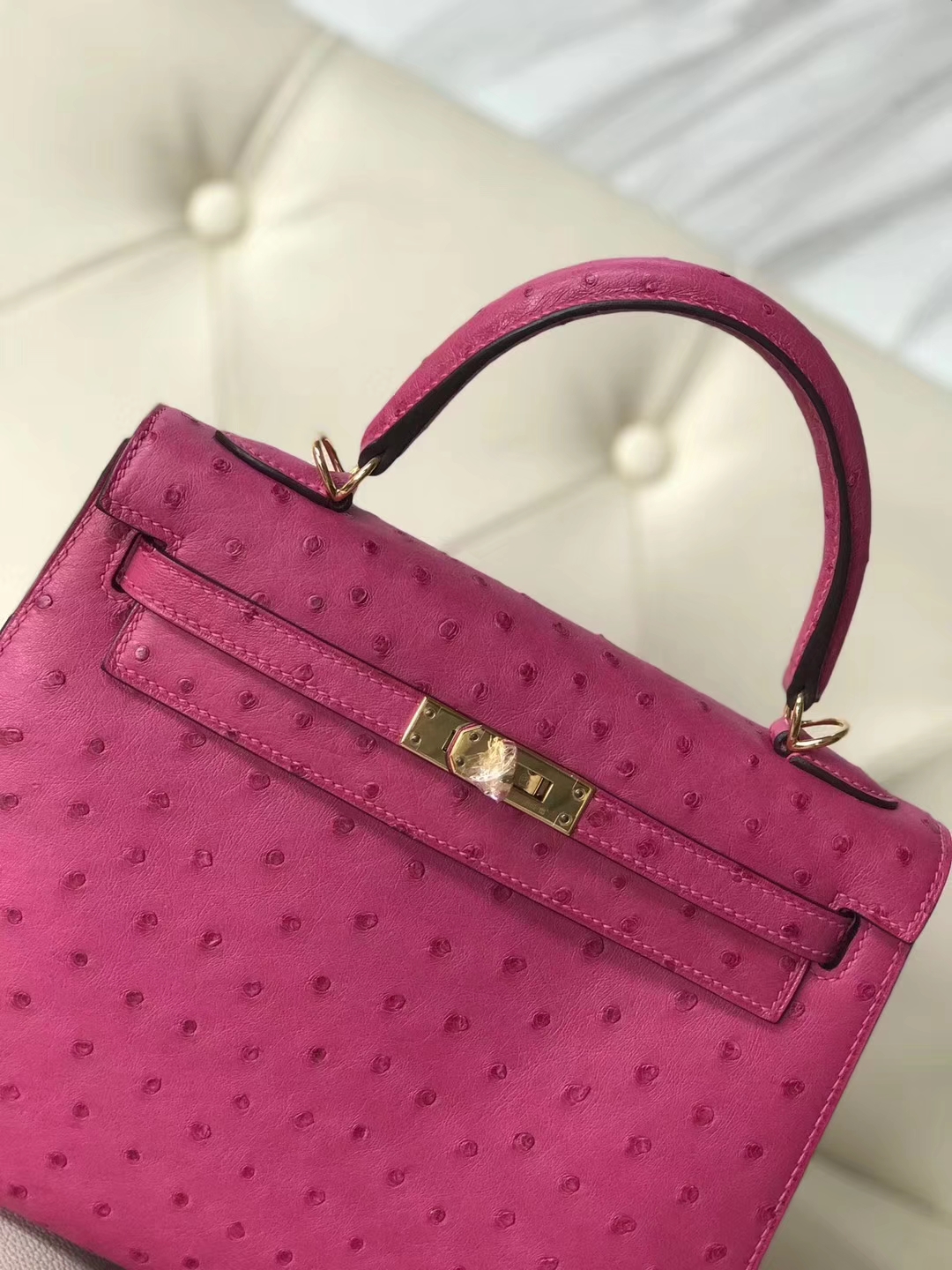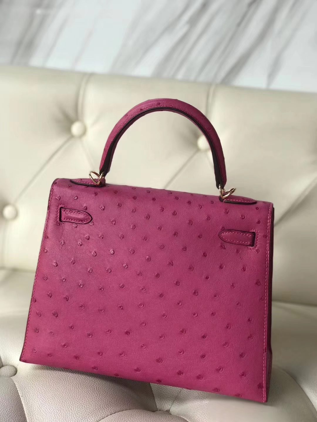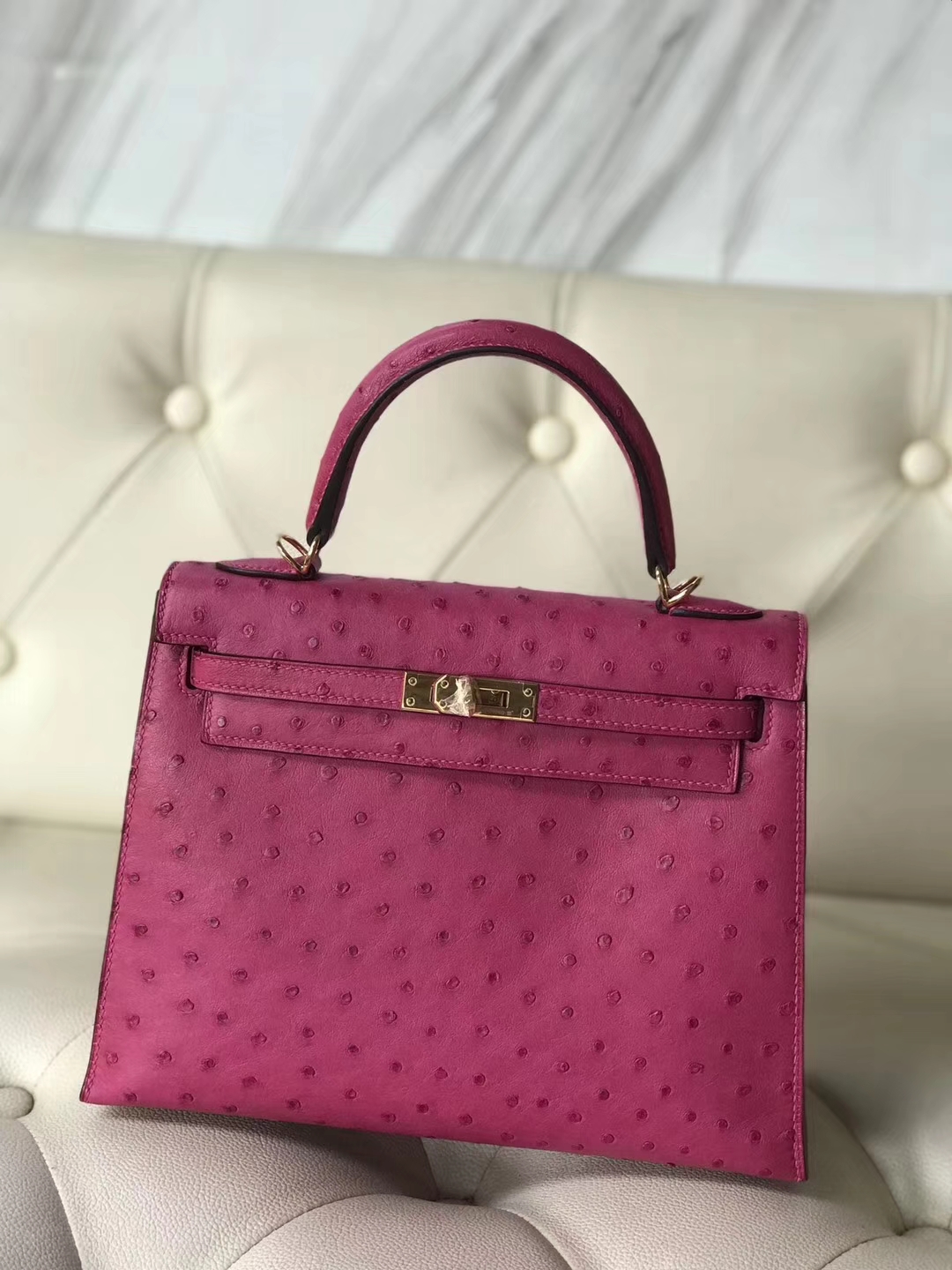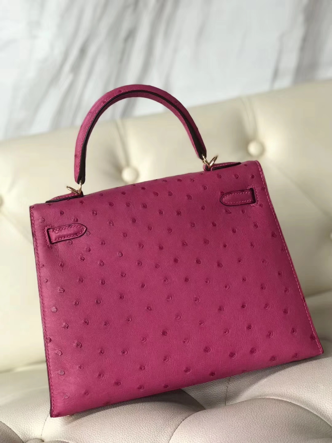 Hermès(爱马仕)Kelly25cm Ostrich kk 鸵鸟 玫红 2018年10月26日 0 【鳄鱼世家】www.Eyubao.com Kelly 25 Kelly 凯莉包 品牌:Hermès(爱马仕);类别:Kelly凯莉包;颜色:玫红色;材质:精选鸵鸟纹皮;等级:顶级;附件:全套包装礼盒;尺寸:25cm;功能:手提单肩包
