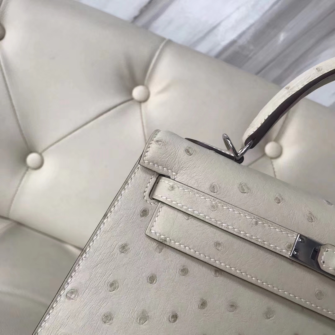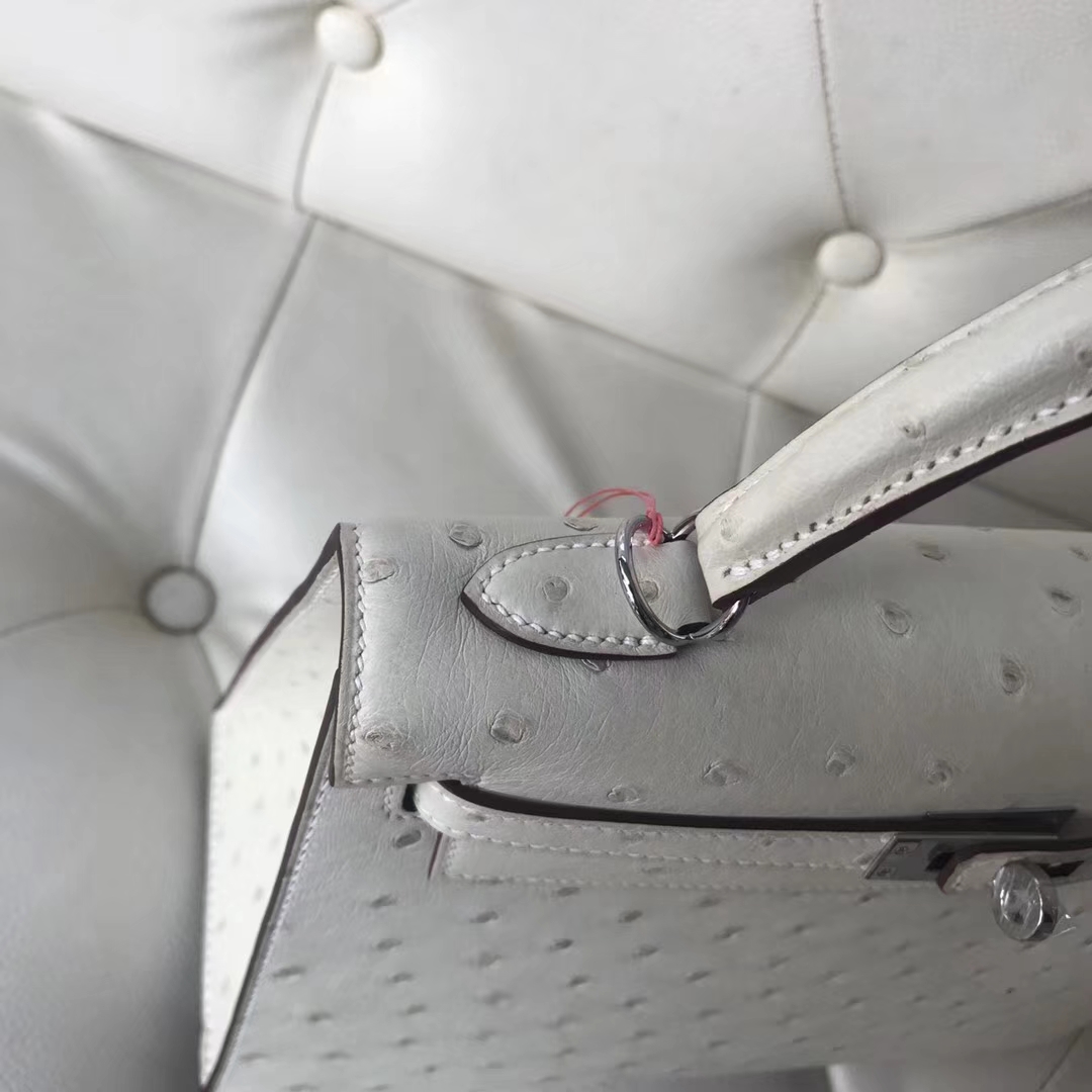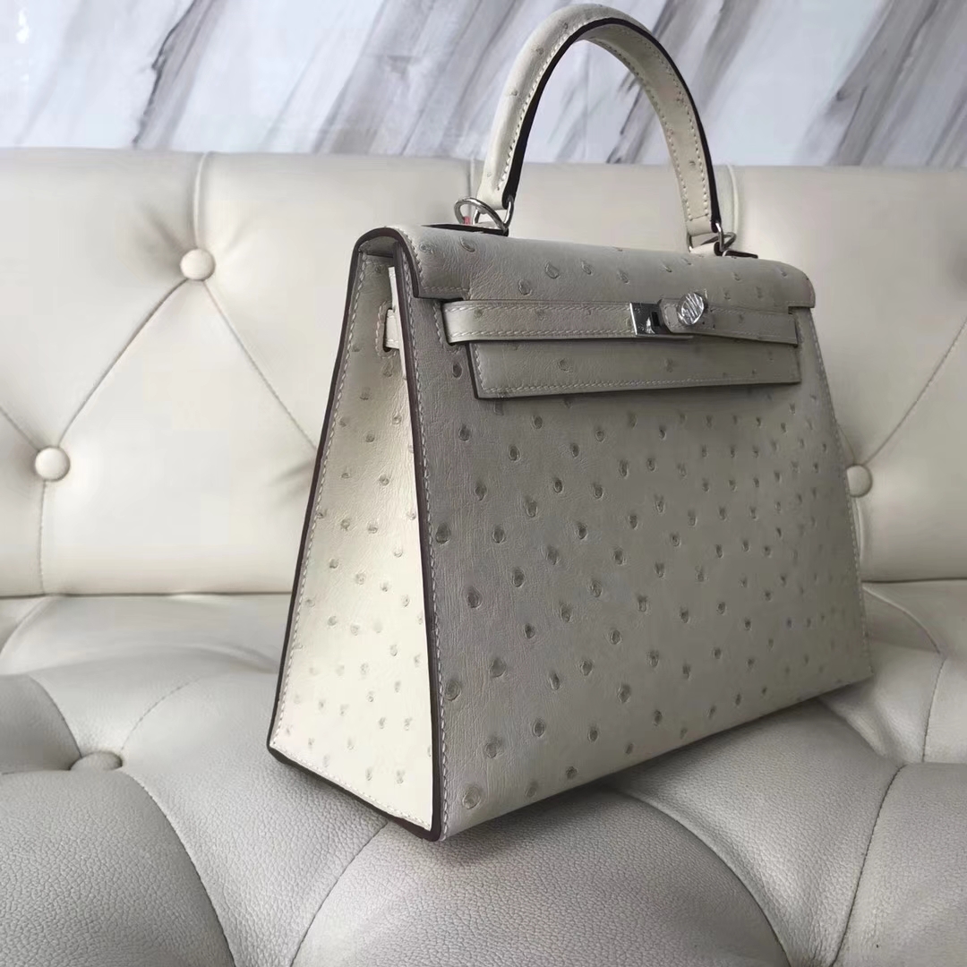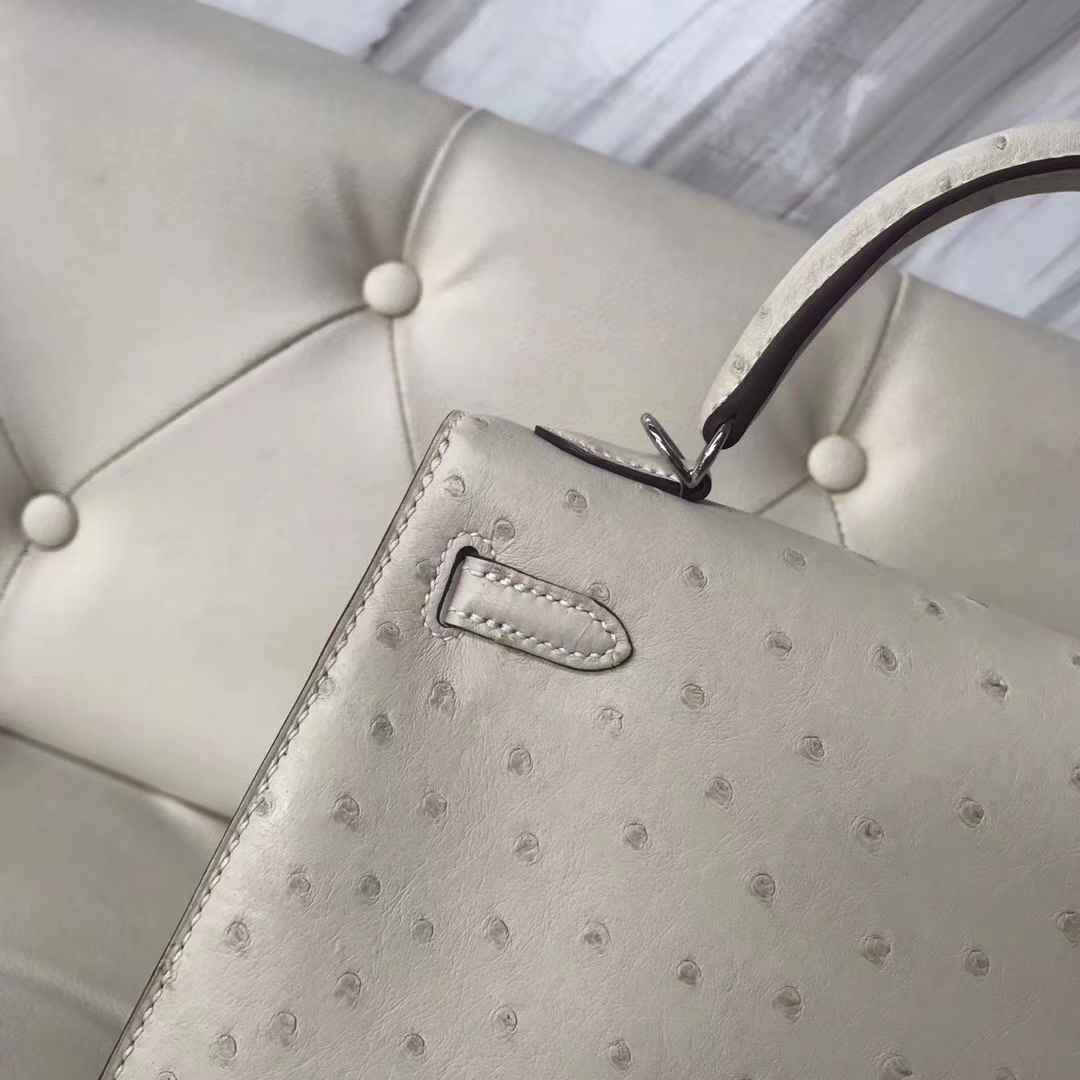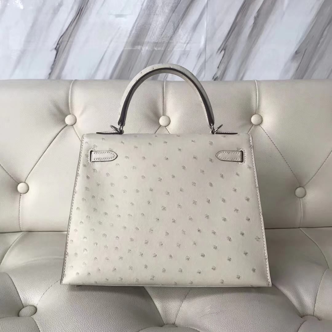 Hermès(爱马仕)Kelly25cm Ostrich kk鸵鸟 3C 羊毛白 银扣 2018年10月26日 0 【鳄鱼世家】www.Eyubao.com Kelly 25 Kelly 凯莉包 品牌:Hermès(爱马仕);类别:Kelly凯莉包;颜色:羊毛白;材质:精选鸵鸟纹皮;等级:顶级;附件:全套包装礼盒;尺寸:25cm;功能:手提单肩包