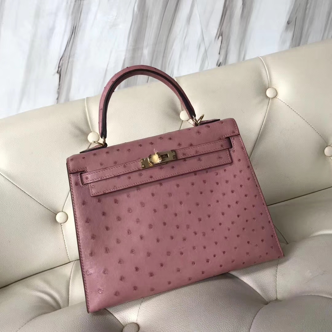 Hermès(爱马仕)kelly25cm Ostrich kk鸵鸟 cc94 陶瓷粉 金扣 2018年10月26日 0 【鳄鱼世家】www.Eyubao.com Kelly 25 Kelly 凯莉包 品牌:Hermès(爱马仕);类别:Kelly凯莉包;颜色:陶瓷粉;材质:精选鸵鸟纹皮;等级:顶级;附件:全套包装礼盒;尺寸:25cm;功能:手提单肩包