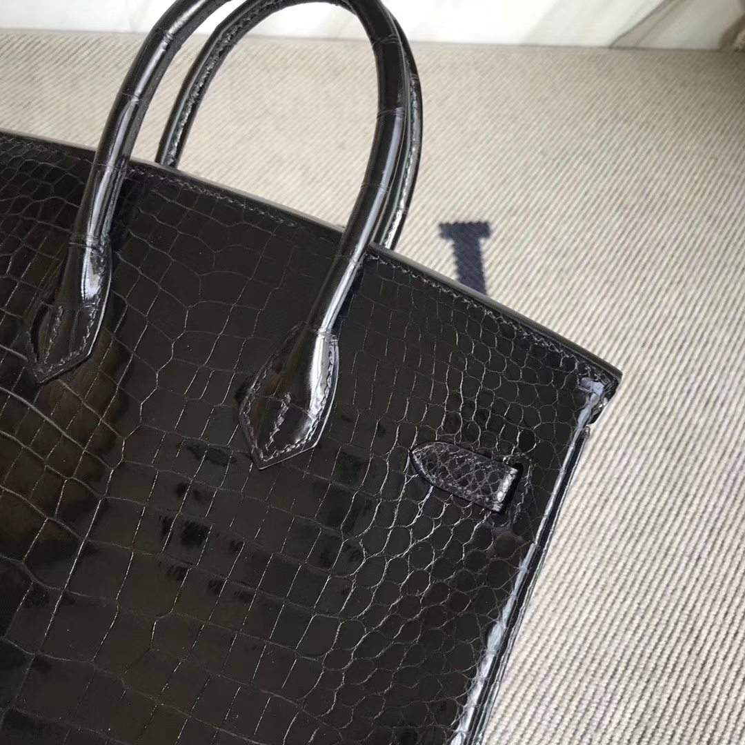 Hermès(爱马仕)Birkin25cm Porosus shiny 亮面澳洲湾鳄 ck89 黑色 金扣 2018年10月26日 0 【鳄鱼世家】www.Eyubao.com Birkin 25 Birkin 铂金包 品牌:Hermès(爱马仕);类别:Birkin 铂金包;颜色:黑色;材质:亮面澳洲湾鳄;等级:顶级;附件:全套包装礼盒;尺寸:25cm;功能:手提单肩包