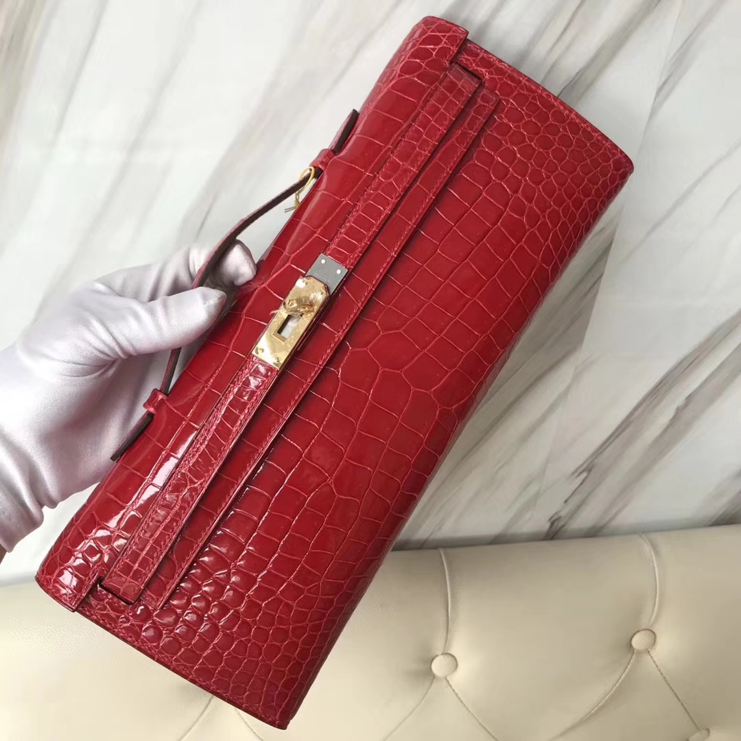 Hermès(爱马仕)Kelly cut 31cm Porosus shiny 亮面澳洲湾鳄 ck95 法拉利红 Braise 金扣 2018年10月28日 0 【鳄鱼世家】www.Eyubao.com KellyCut 手拿包 品牌:Hermès(爱马仕);类别:kelly cut凯莉包;颜色:法拉利红;材质:Crocodile shiny;等级:顶级;附件:全套包装礼盒;尺寸:31cm;功能:手拿包