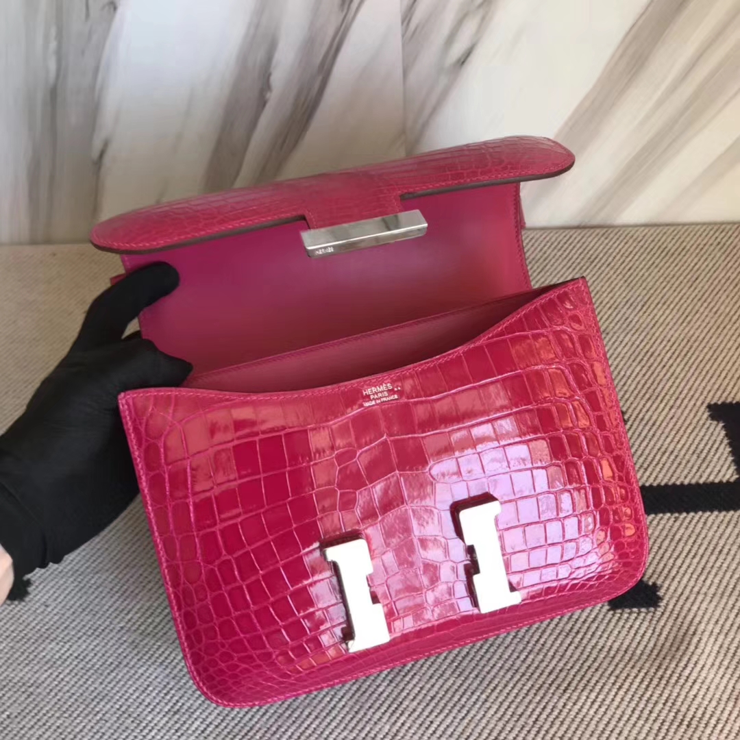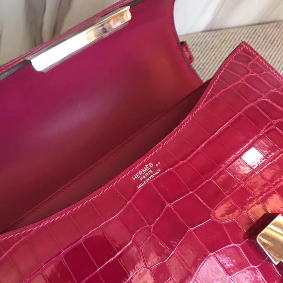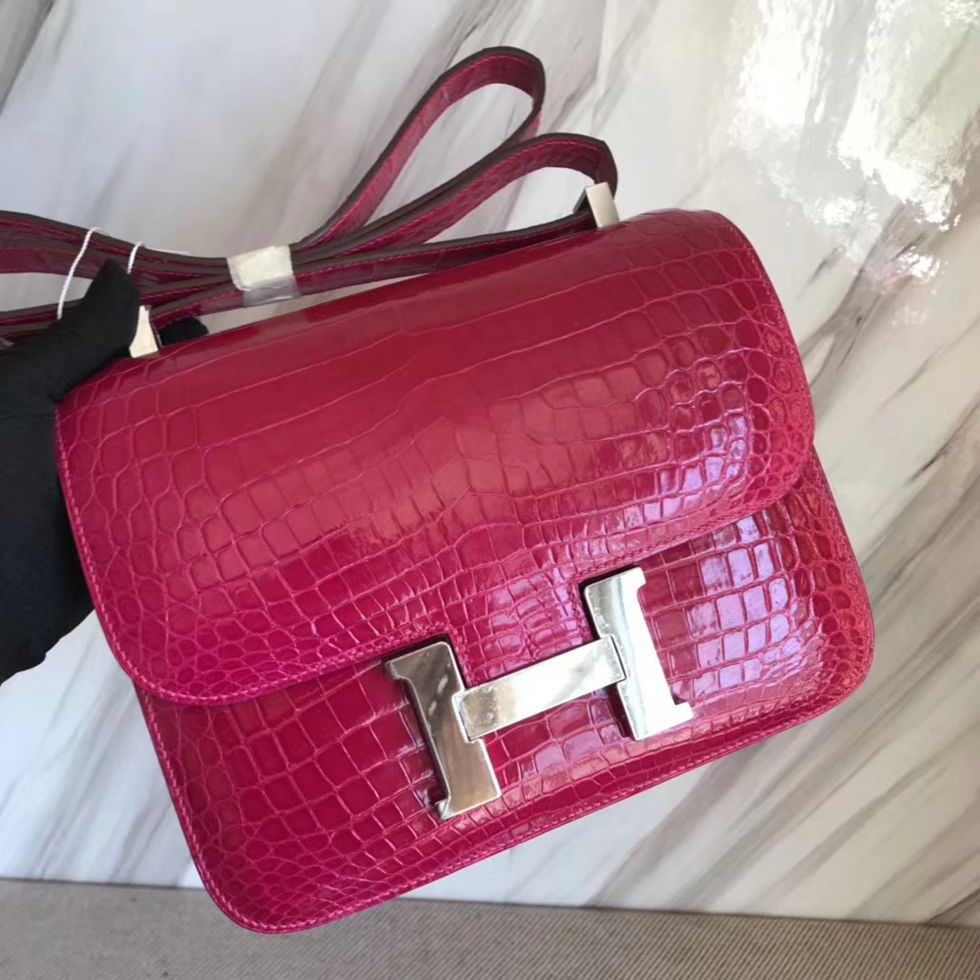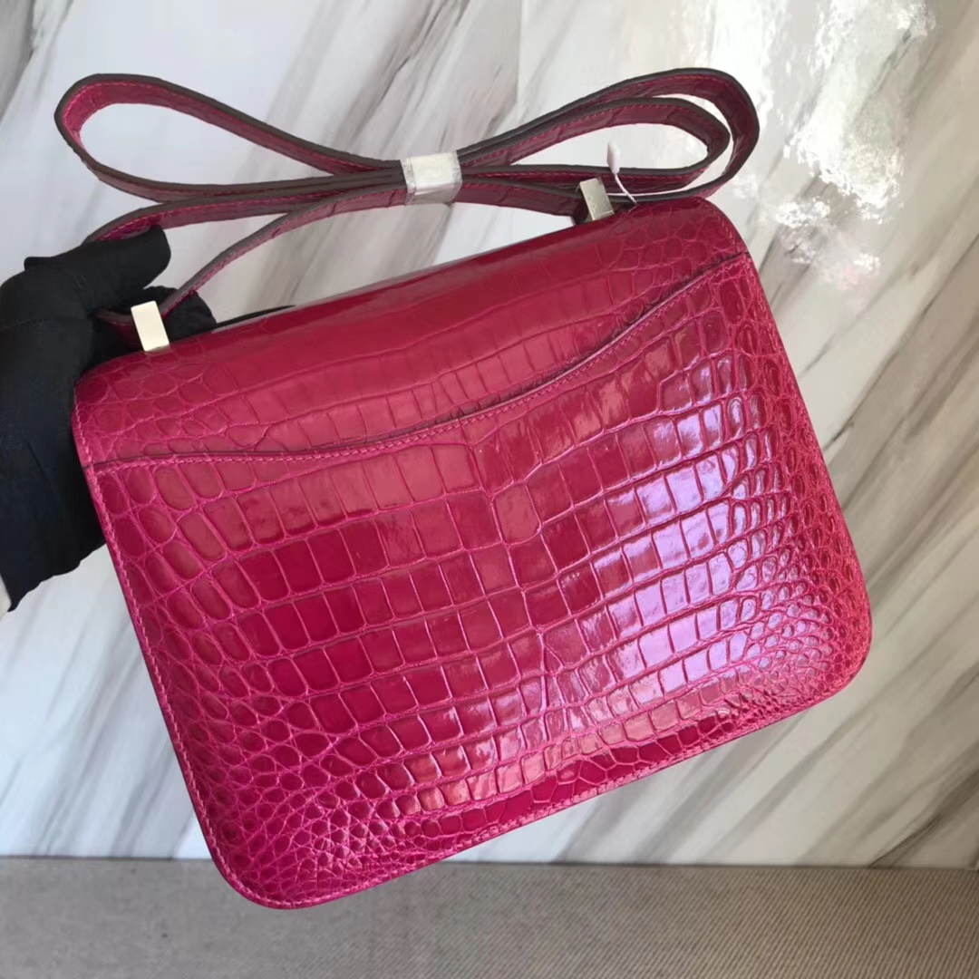 Hermès(爱马仕)Constance24cm Crocodile shiny 亮面鳄鱼 J5 天方夜谭粉紫 银扣