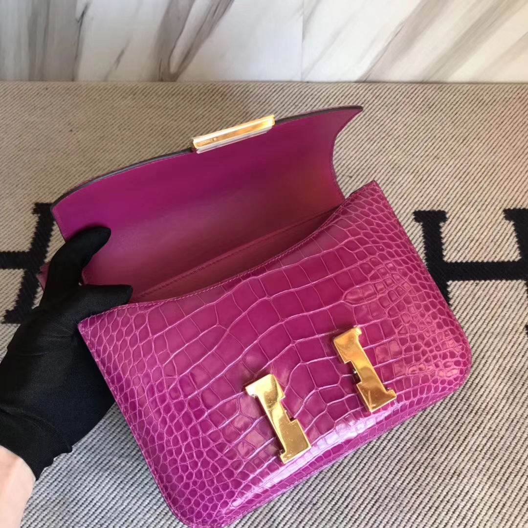 Hermès(爱马仕)Constance24cm Alligator shiny 亮面鳄鱼 J5 天方夜谭粉紫 金扣 2018年10月28日 0 【鳄鱼世家】www.Eyubao.com Constance 24 Constance 空姐包 牌:Hermès(爱马仕);类别:Constance空姐包;颜色:天方夜谭粉紫;材质:亮面鳄鱼;等级:顶级;附件:全套包装礼盒;尺寸:24cm;功能:单肩斜挎包