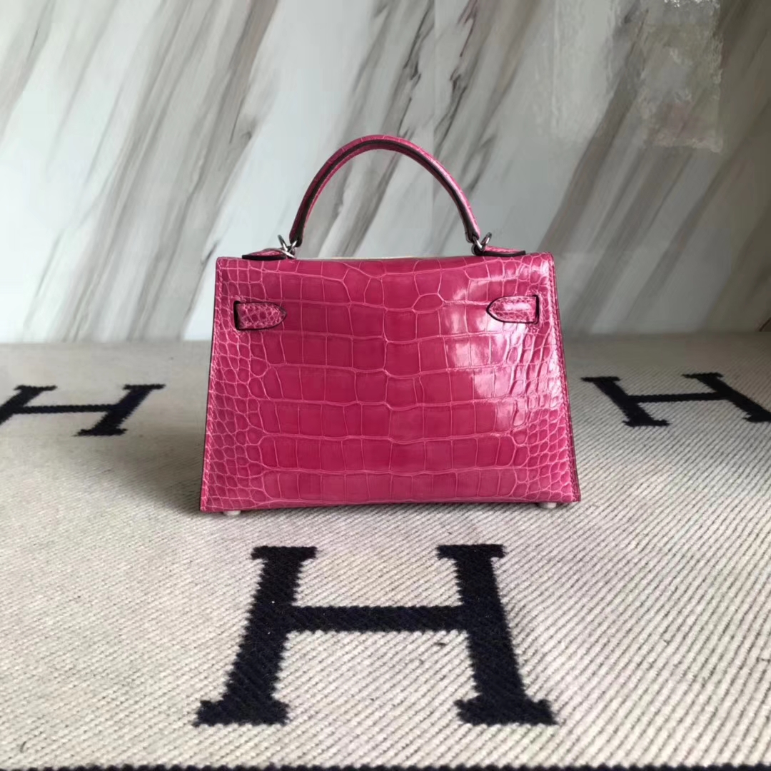 Hermès(爱马仕)Minikelly ll Alligator shiny 亮面鳄鱼 5J 桃粉 银扣 2018年10月28日 0 【鳄鱼世家】www.Eyubao.com Mini Kelly 2 Mini Kelly 迷你凯莉 品牌:Hermès(爱马仕);类别:Mini Kelly迷你凯莉包;颜色:桃粉;材质:亮面鳄鱼;等级:顶级;附件:全套包装礼盒;功能:手提单肩包