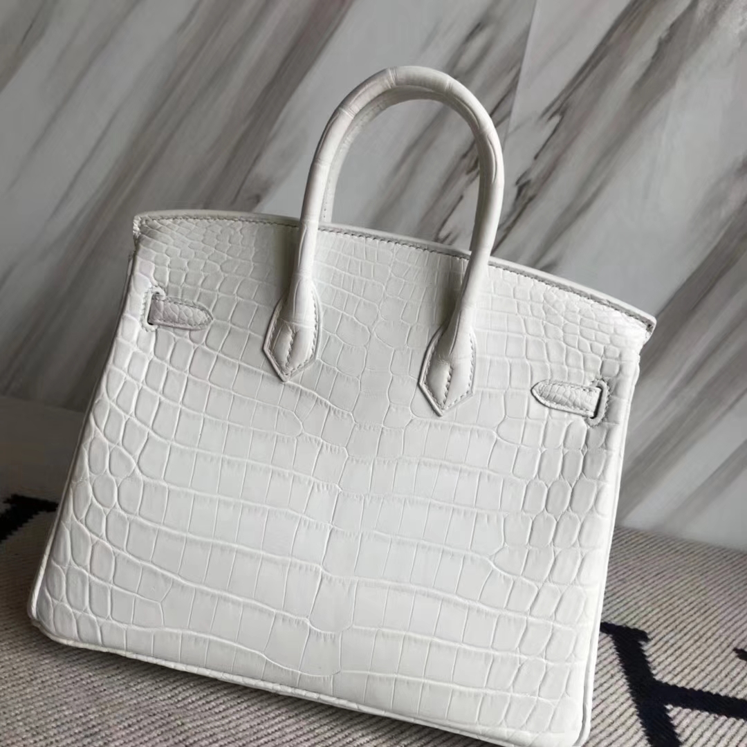 Hermès(爱马仕)Birkin25cm Crocodile matt 雾面鳄鱼 01 纯白 白雪公主 White 银扣 2018年10月28日 0 【鳄鱼世家】www.Eyubao.com Birkin 25 Birkin 铂金包 品牌:Hermès(爱马仕);类别:Birkin 铂金包;颜色: 纯白 白雪公主;材质:雾面鳄鱼;等级:顶级;附件:全套包装礼盒;尺寸:25cm;功能:手提单肩包