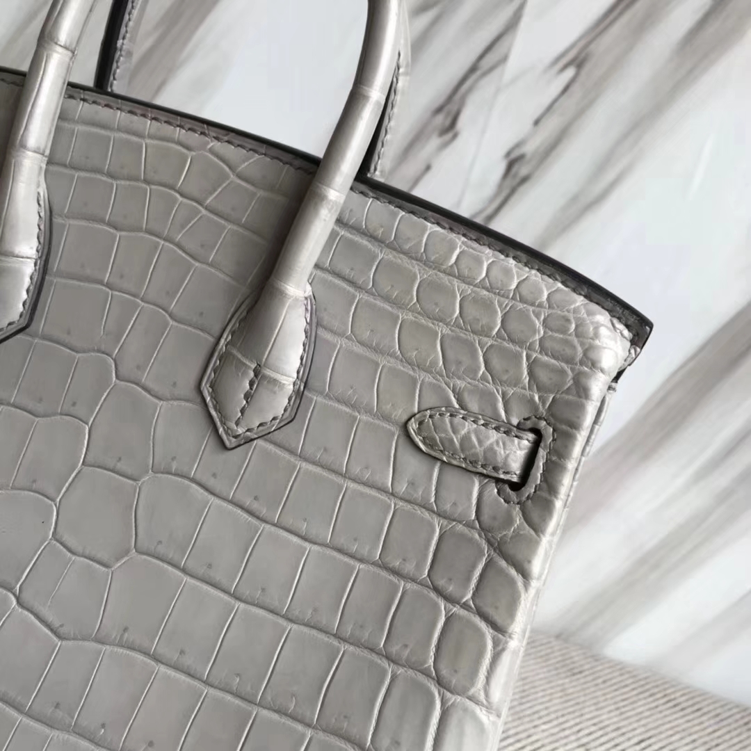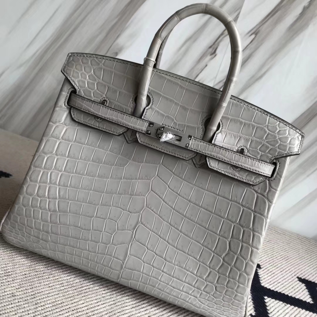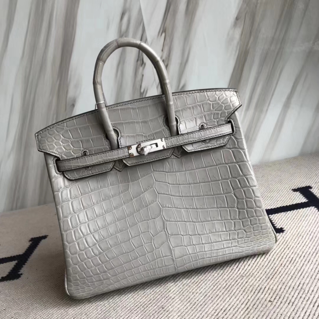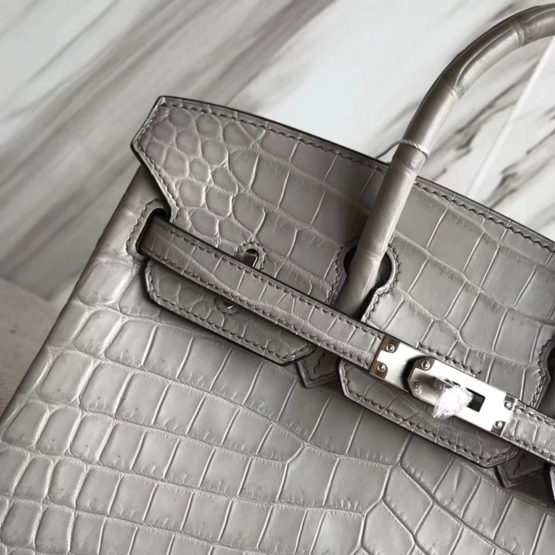Hermès(爱马仕)Birkin25cm Crocodile matt 雾面鳄鱼 M8 巴黎灰 公路灰 银扣 2018年10月28日 0 【鳄鱼世家】www.Eyubao.com Birkin 25 Birkin 铂金包 品牌:Hermès(爱马仕);类别:Birkin 铂金包;颜色: 巴黎灰 公路灰;材质:雾面鳄鱼;等级:顶级;附件:全套包装礼盒;尺寸:25cm;功能:手提单肩包