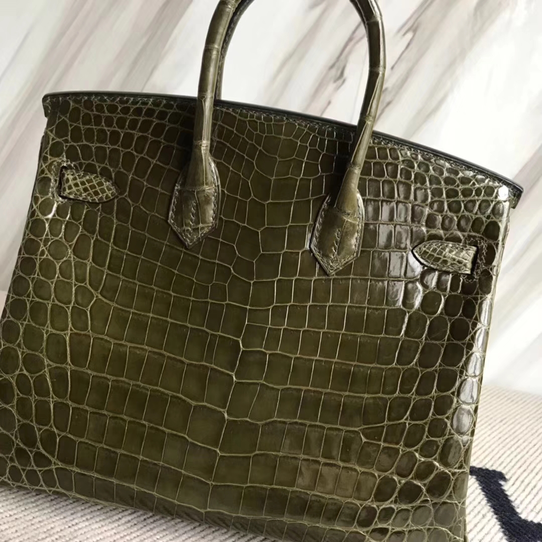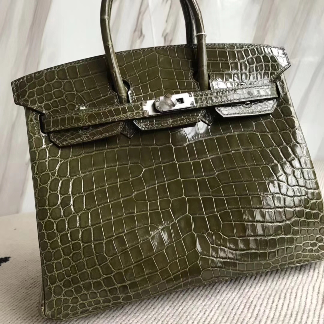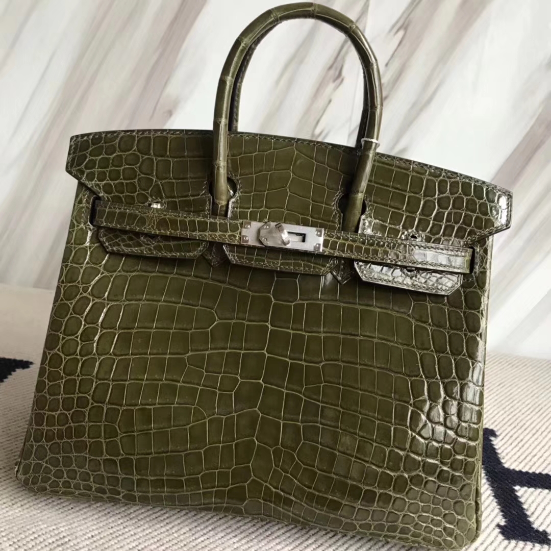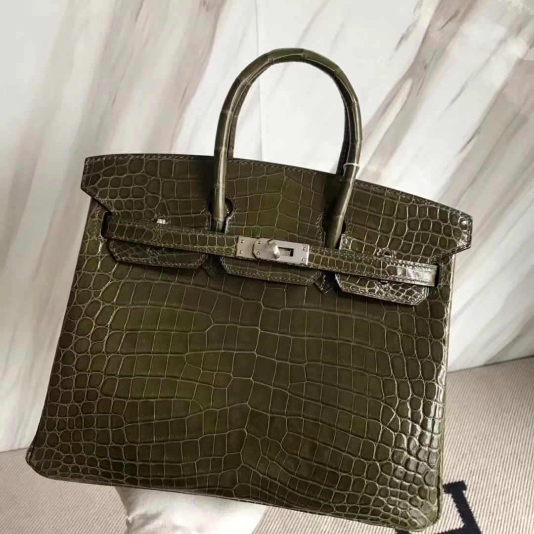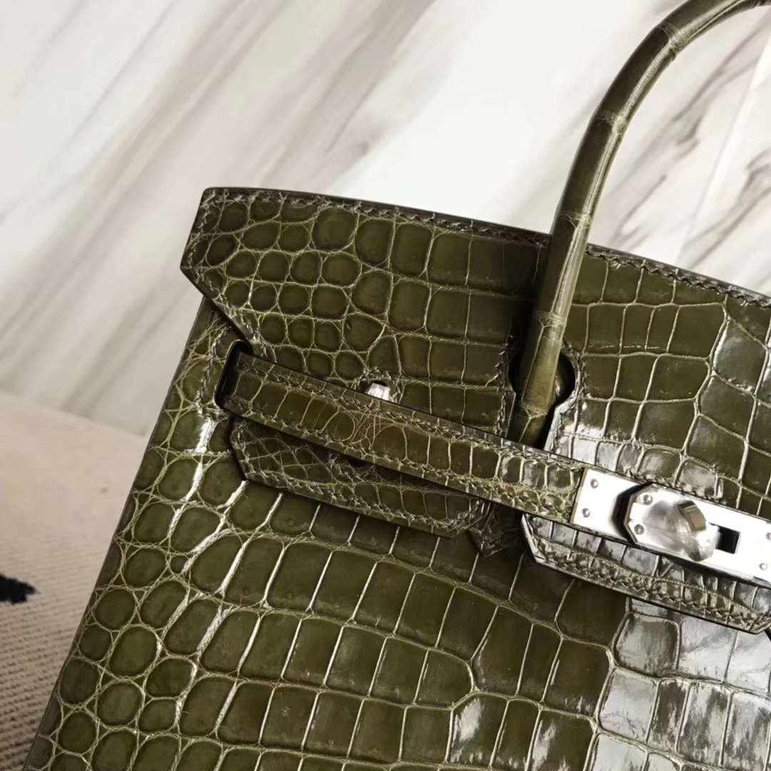 Hermès(爱马仕)Birkin25cm Crocodile shiny 亮面鳄鱼 6H 橄榄绿 银扣 2018年10月28日 0 【鳄鱼世家】www.Eyubao.com Birkin 25 Birkin 铂金包 品牌:Hermès(爱马仕);类别:Birkin 铂金包;颜色: 橄榄绿;材质:亮面鳄鱼;等级:顶级;附件:全套包装礼盒;尺寸:25cm;功能:手提单肩包