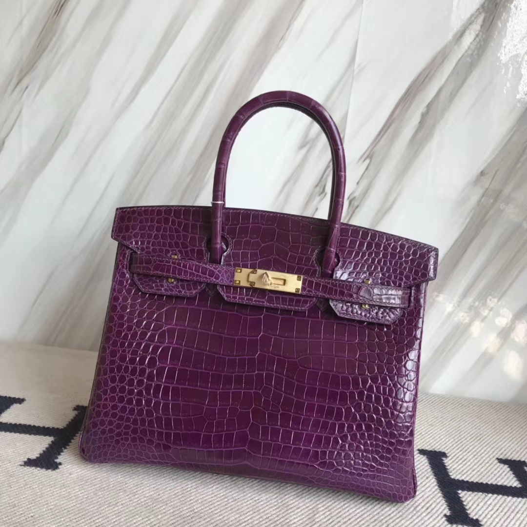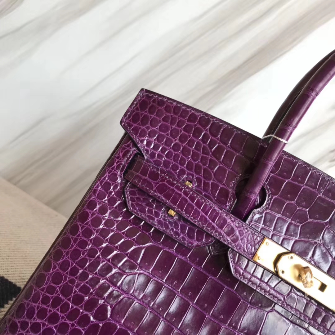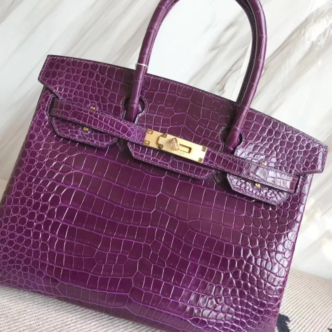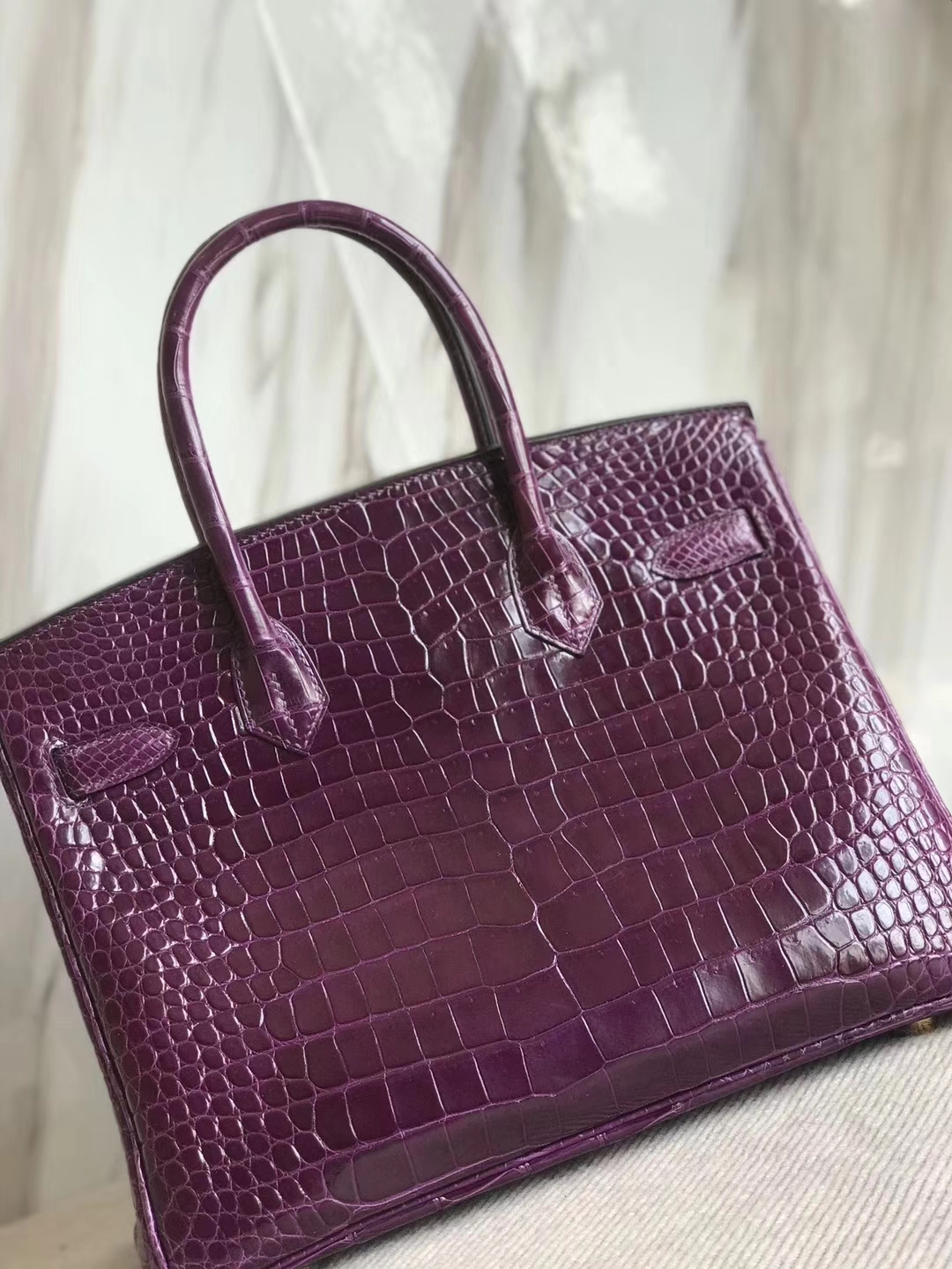 Hermès(爱马仕)Birkin30cm Porosus shiny 亮面澳洲湾鳄 9G 紫水晶 金扣 品相超赞 现货 2018年10月28日 0 【鳄鱼世家】www.Eyubao.com Birkin 30 Birkin 铂金包 品牌:Hermès(爱马仕);类别:Kelly凯莉包;颜色:紫水晶;材质:亮面澳洲湾鳄;等级:顶级;附件:全套包装礼盒;尺寸:30cm;功能:手提单肩包