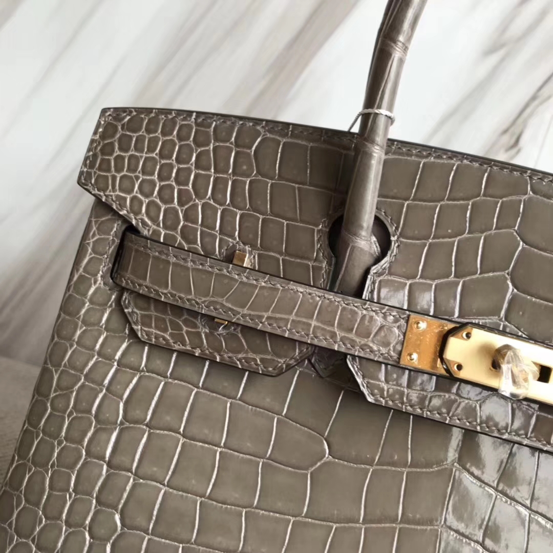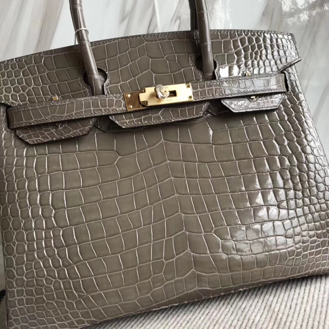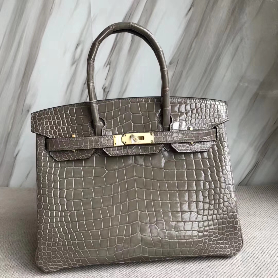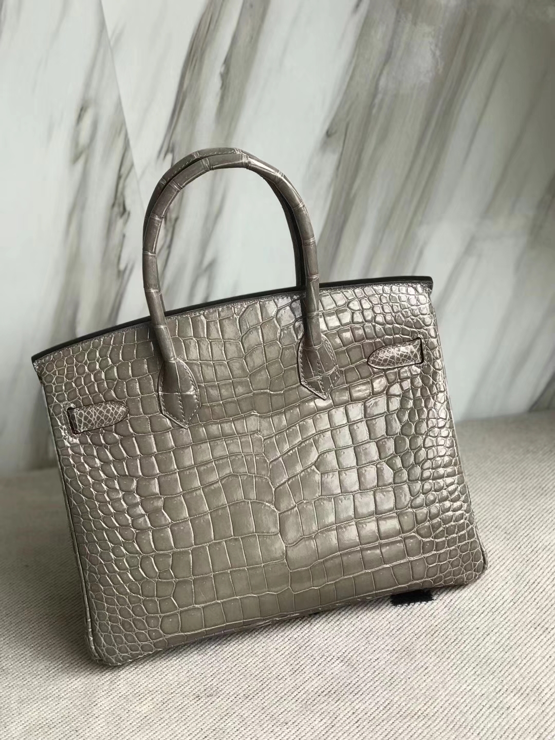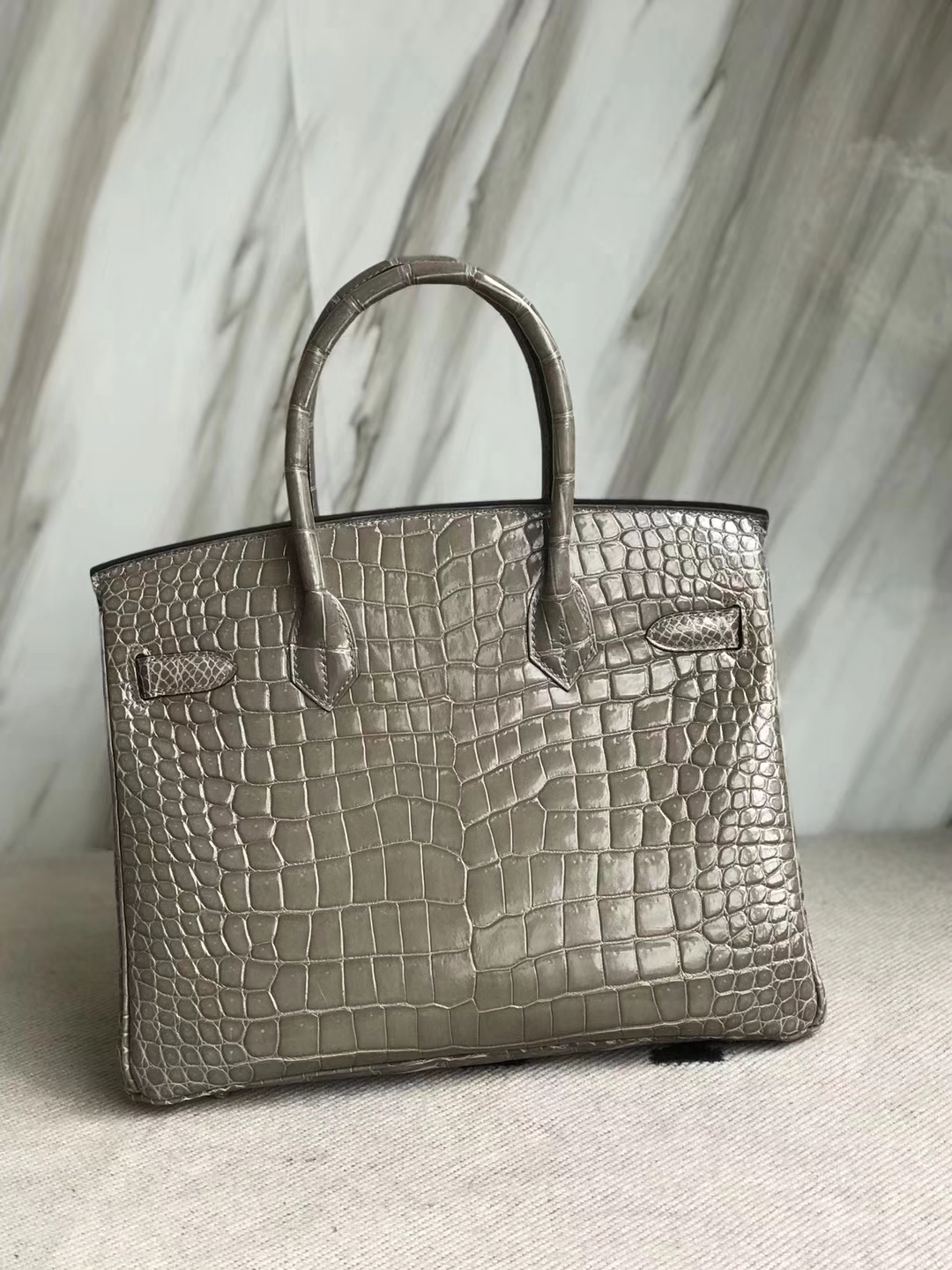 Hermès(爱马仕)Birkin30cm Porosus shiny 亮面澳洲湾鳄 ck81 斑鸠灰 Gris T 金扣 2018年10月28日 0 【鳄鱼世家】www.Eyubao.com Birkin 30 Birkin 铂金包 品牌:Hermès(爱马仕);类别:Kelly凯莉包;颜色:斑鸠灰;材质:亮面澳洲湾鳄;等级:顶级;附件:全套包装礼盒;尺寸:30cm;功能:手提单肩包