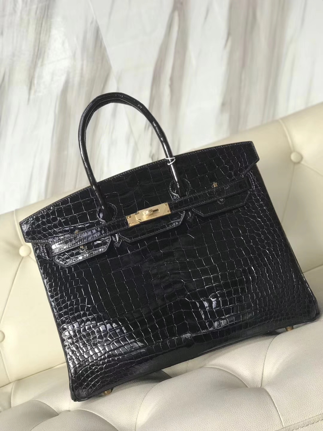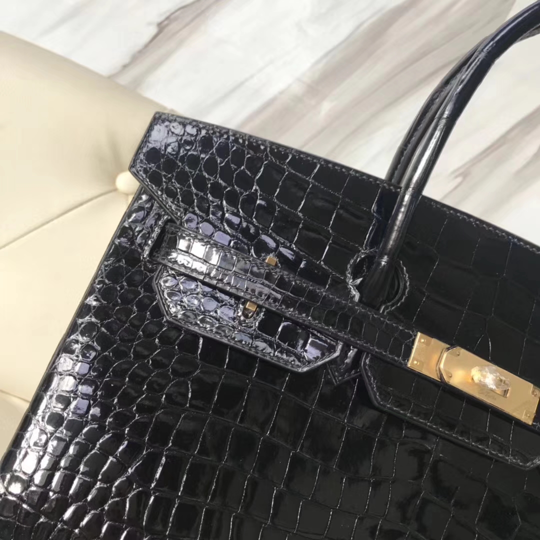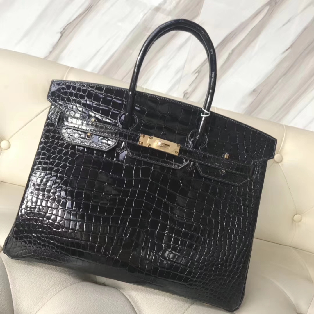 Hermès(爱马仕)Birkin35cm Porosus shiny 亮面澳洲湾鳄 ck89 黑色 金扣 2018年11月6日 0 【鳄鱼世家】www.Eyubao.com Birkin 35 Birkin 铂金包 品牌:Hermès(爱马仕);类别:Kelly凯莉包;颜色:黑色;材质:亮面澳洲湾鳄;等级:顶级;附件:全套包装礼盒;尺寸:35cm;功能:手提单肩包