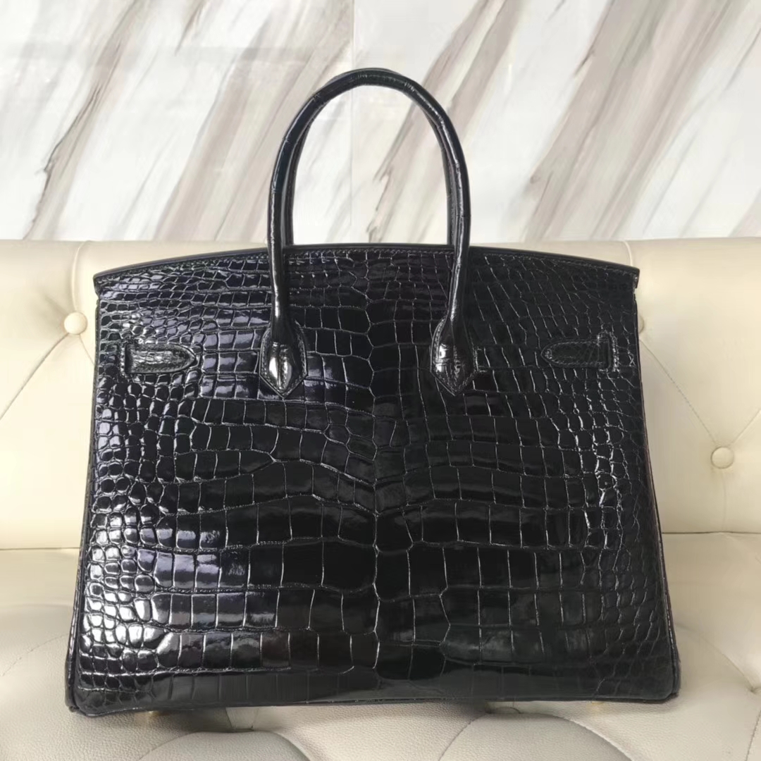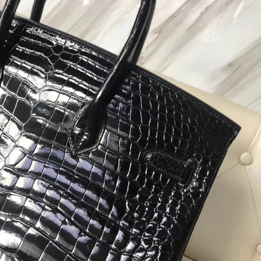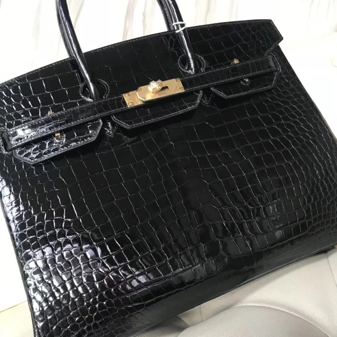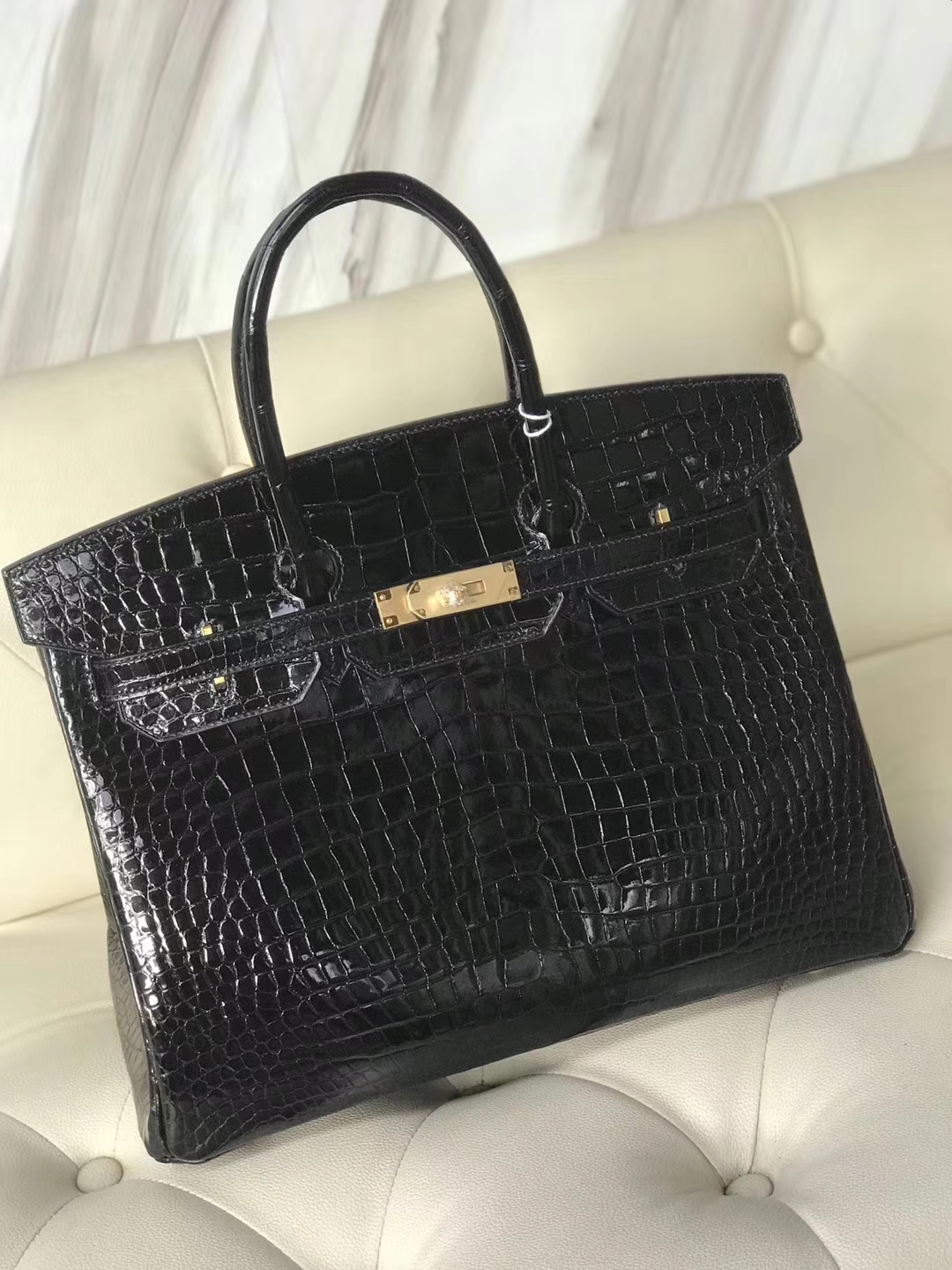 Hermès(爱马仕)Birkin35cm Porosus shiny 亮面澳洲湾鳄 ck89 黑色 金扣 2018年11月6日 0 【鳄鱼世家】www.Eyubao.com Birkin 35 Birkin 铂金包 品牌:Hermès(爱马仕);类别:Kelly凯莉包;颜色:黑色;材质:亮面澳洲湾鳄;等级:顶级;附件:全套包装礼盒;尺寸:35cm;功能:手提单肩包