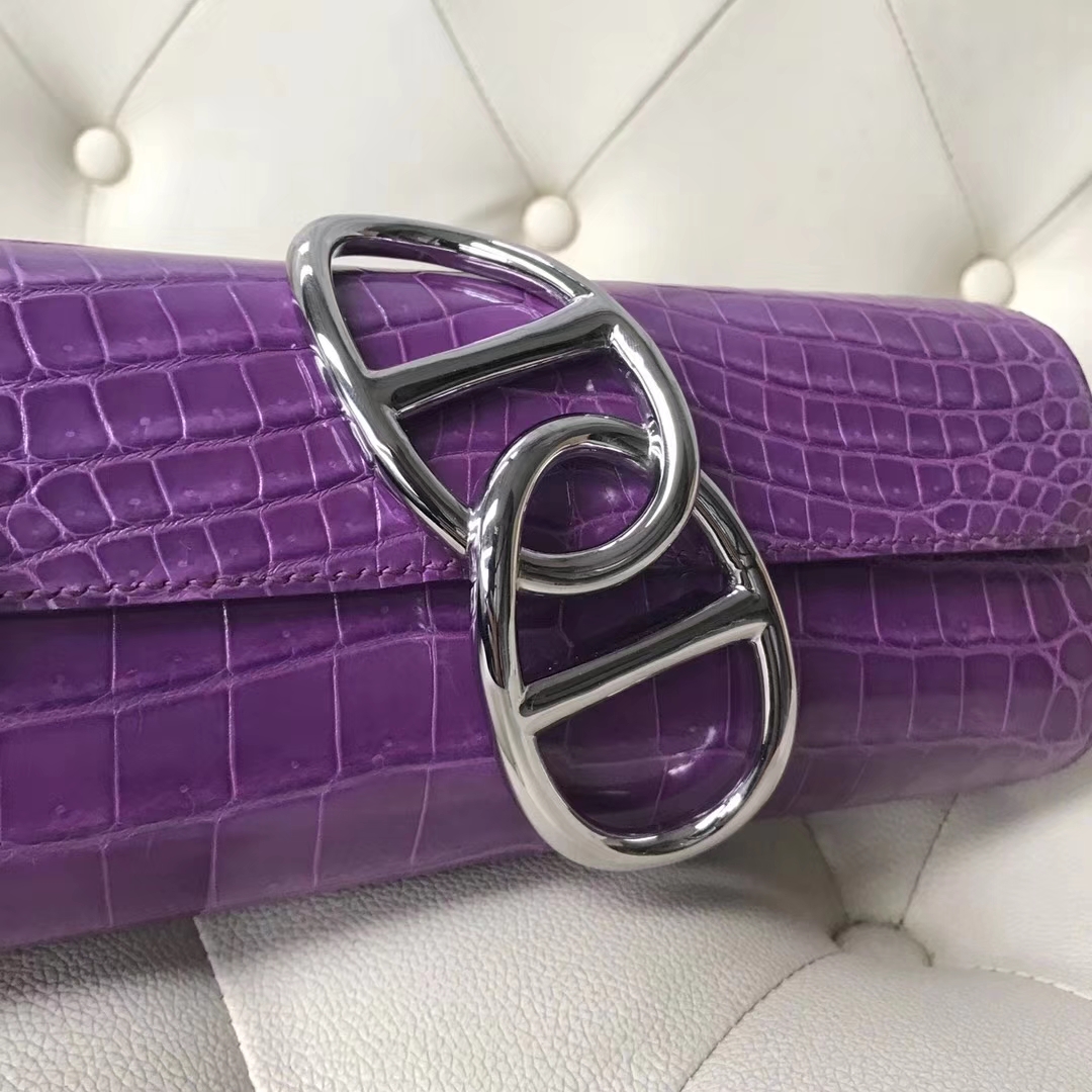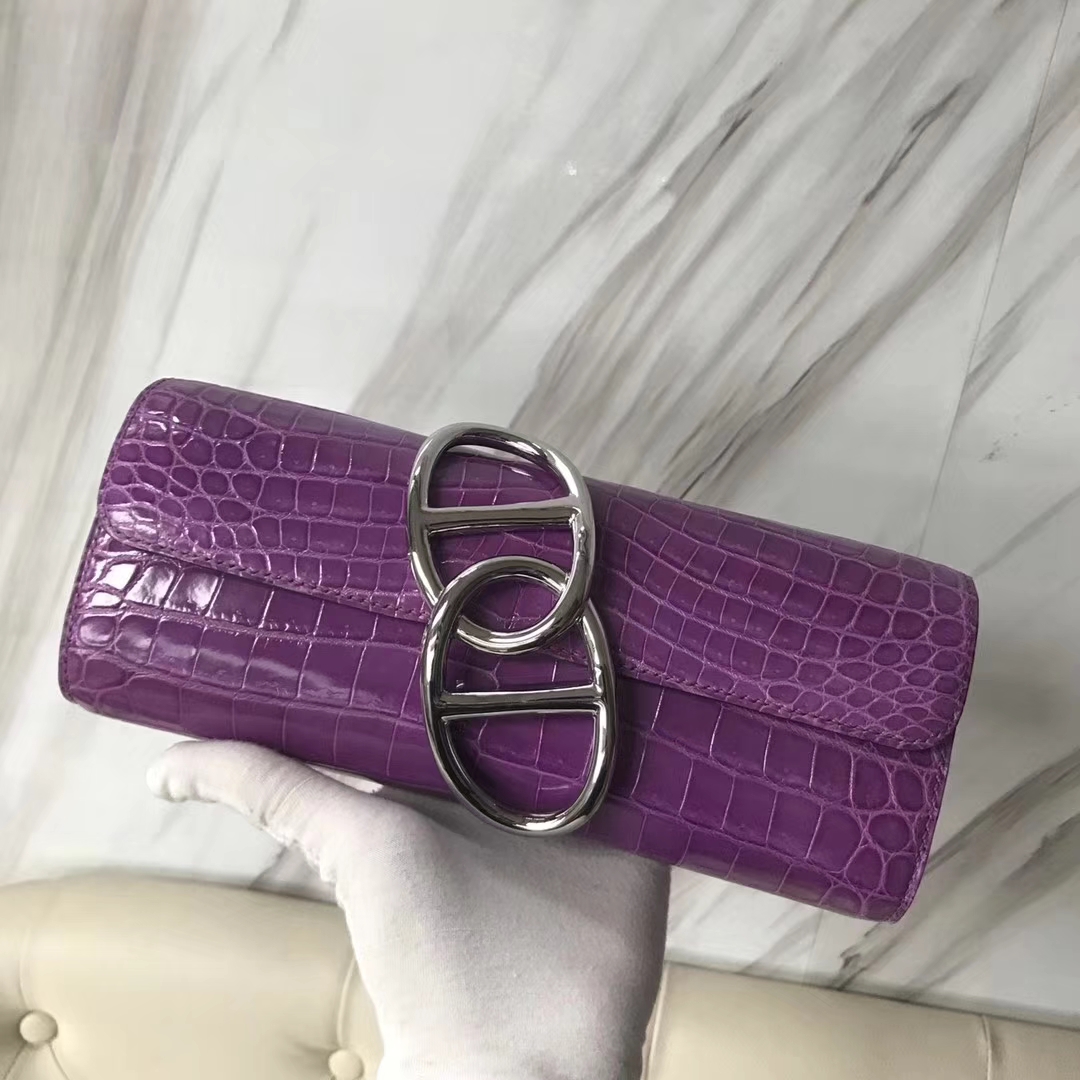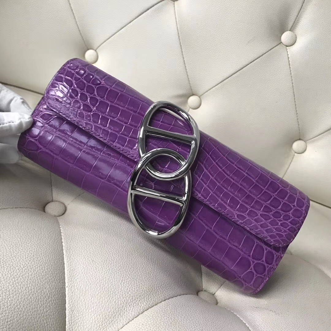 Hermès(爱马仕)egge 鳄鱼手包 玫红紫 银扣 手拿包 晚宴包 2018年11月6日 0 【鳄鱼世家】www.Eyubao.com Roulis 猪鼻子 品牌:Hermès(爱马仕);类别:猪鼻手包egee;颜色:玫红紫;材质:精选原版皮;等级:顶级;附件:全套包装礼盒;功能:手拿包】