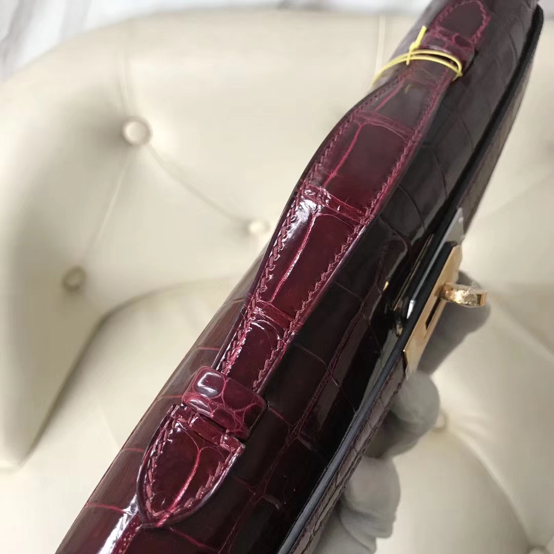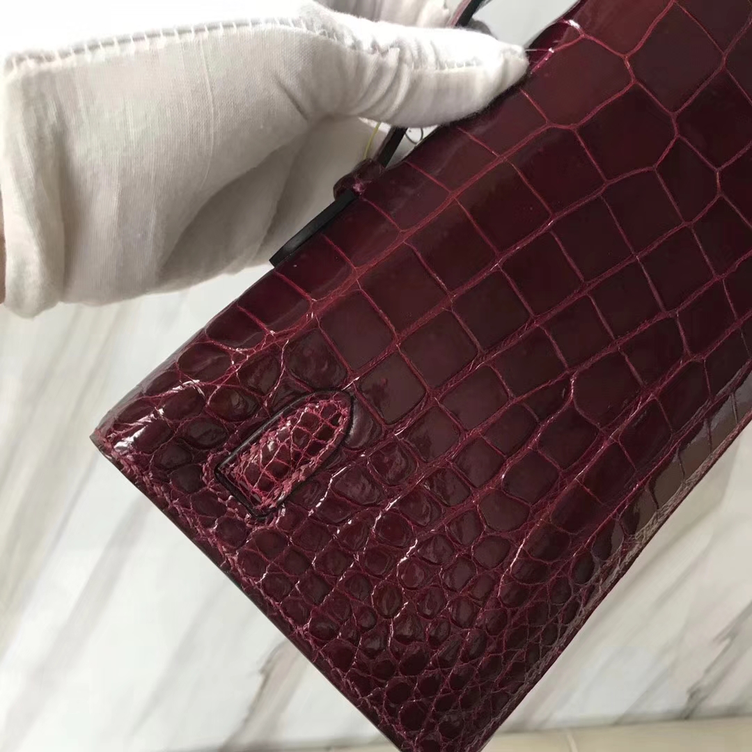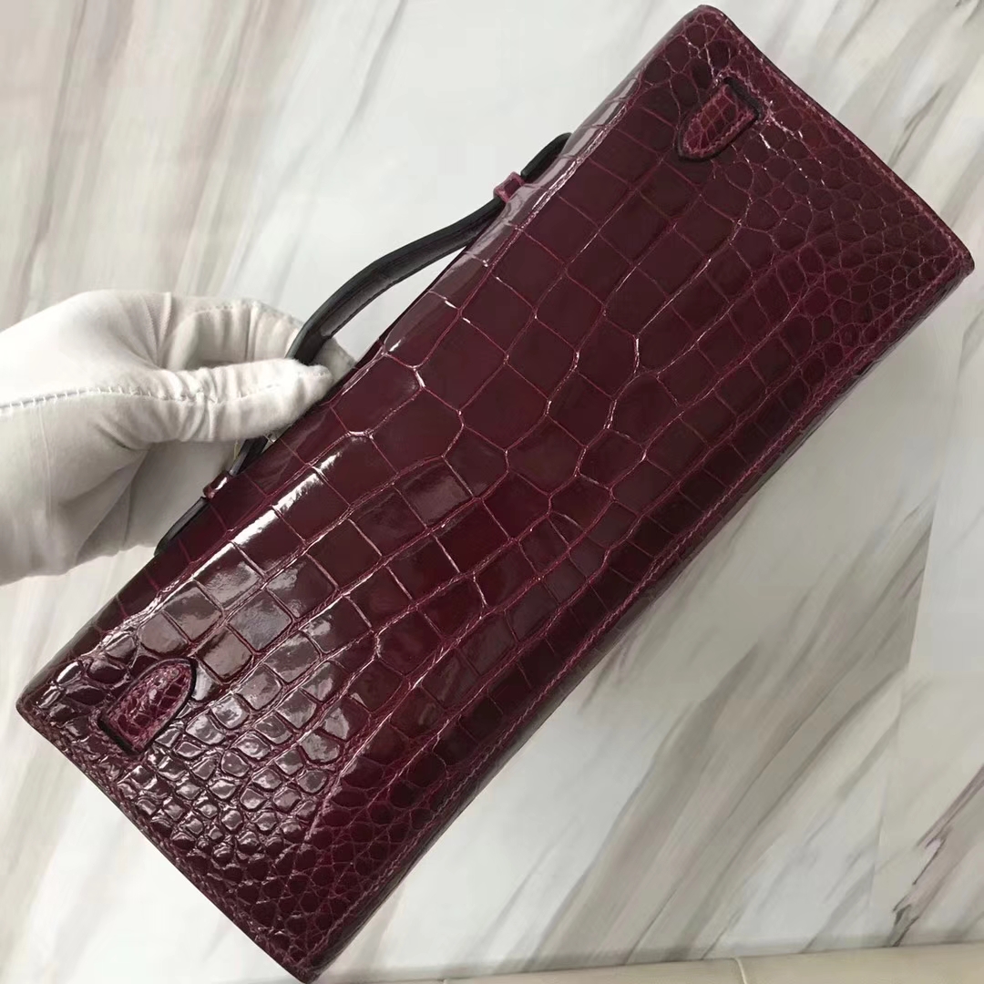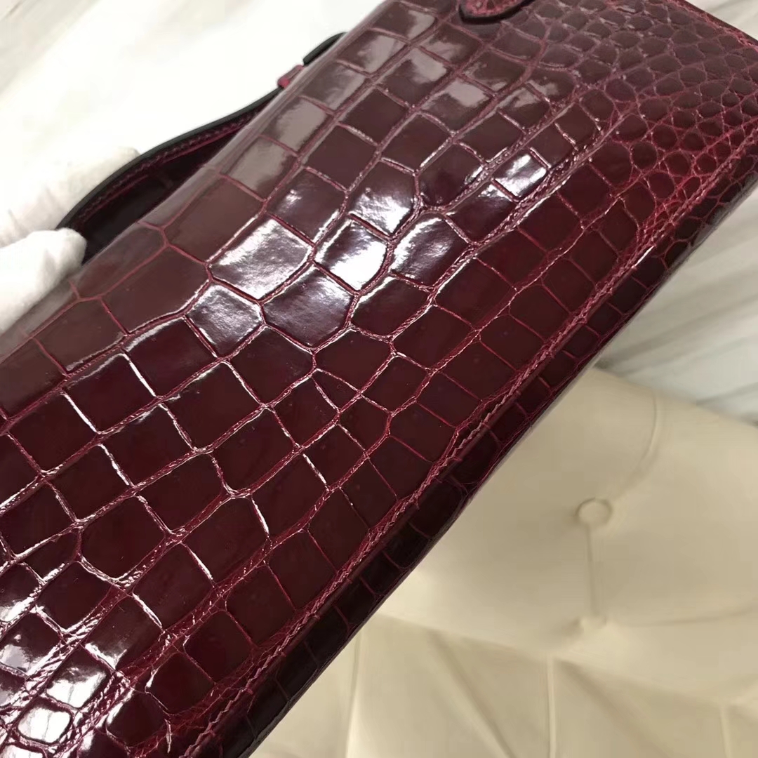 Hermès(爱马仕)Kelly cut 31cm porosus shiny 亮面鳄鱼 波尔多酒红 金扣 2018年11月9日 0 【鳄鱼世家】www.Eyubao.com KellyCut 手拿包 品牌:Hermès(爱马仕);类别:Kelly cut长款钱包;颜色: 波尔多酒红;材质:亮面鳄鱼;等级:顶级;附件:全套包装礼盒;尺寸:31cm;功能:手提单肩包
