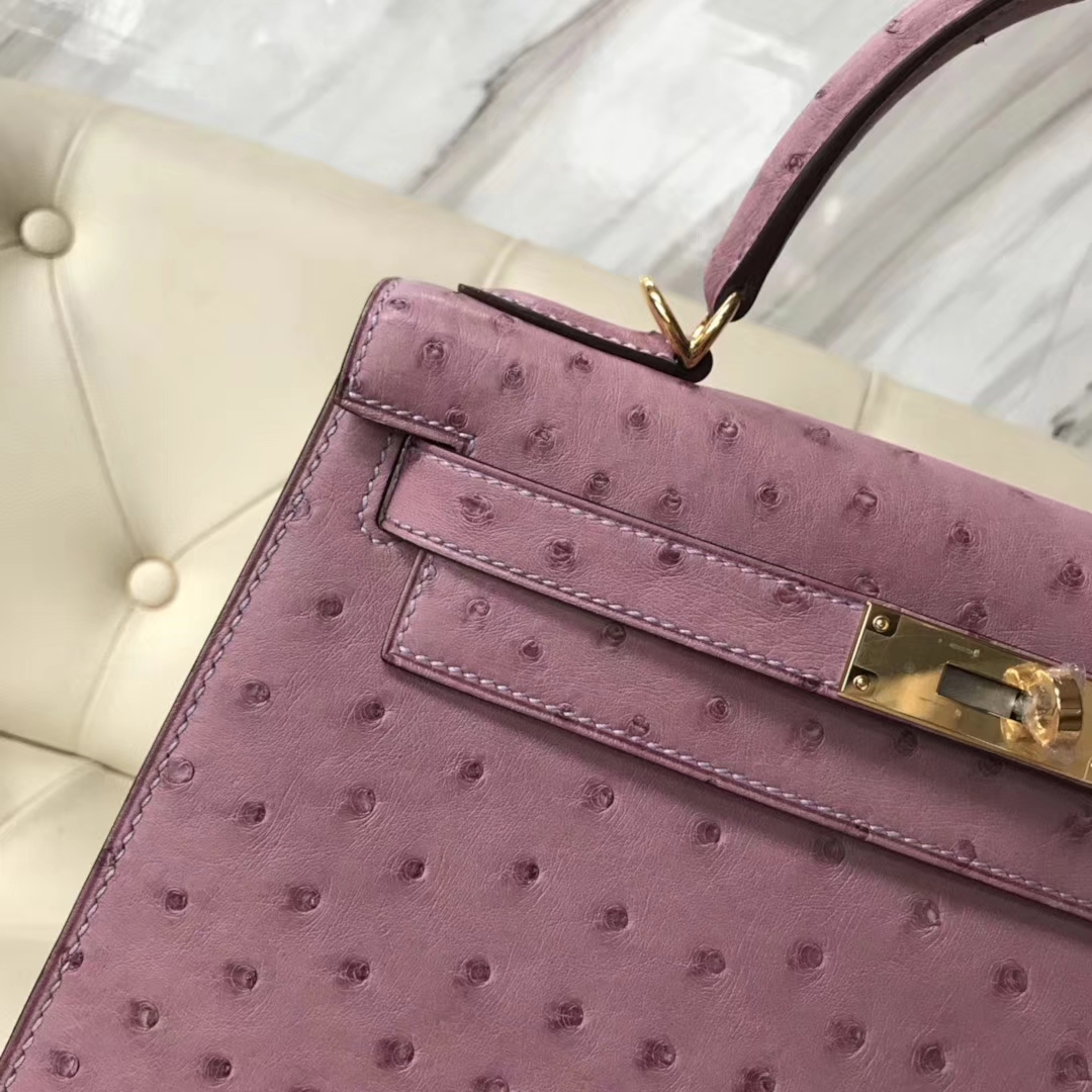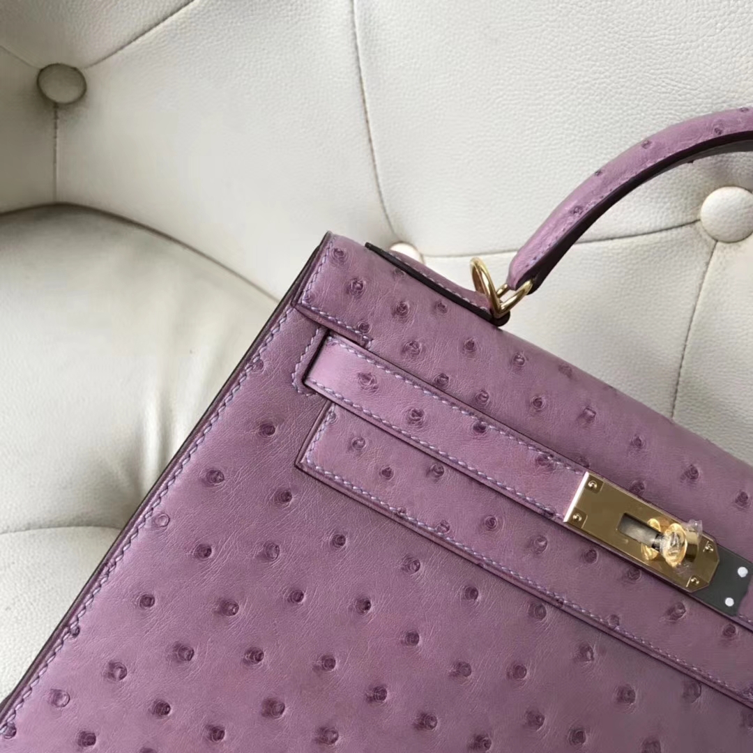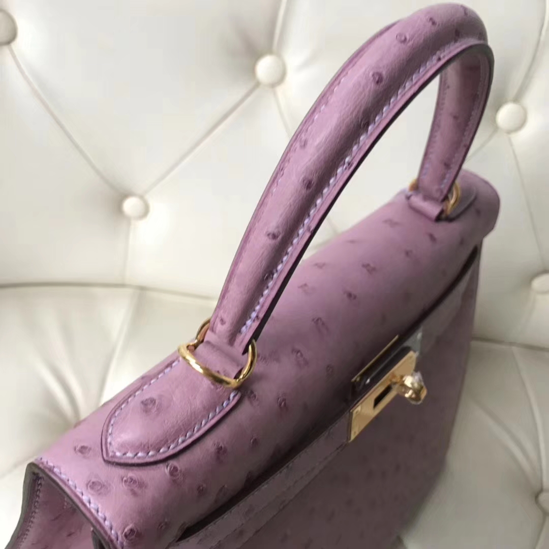 Hermès(爱马仕)Kelly 28cm ostrich kk鸵鸟 薰衣草紫 顶级工艺 蜡线全手工 金扣 接受定制 2018年11月13日 0 【鳄鱼世家】www.Eyubao.com Kelly 28 Kelly 凯莉包 品牌:Hermès(爱马仕);类别:Kelly凯莉包;颜色:薰衣草紫;材质:顶级鸵鸟纹皮;等级:顶级;附件:全套包装礼盒;尺寸:28cm;功能:手提单肩包