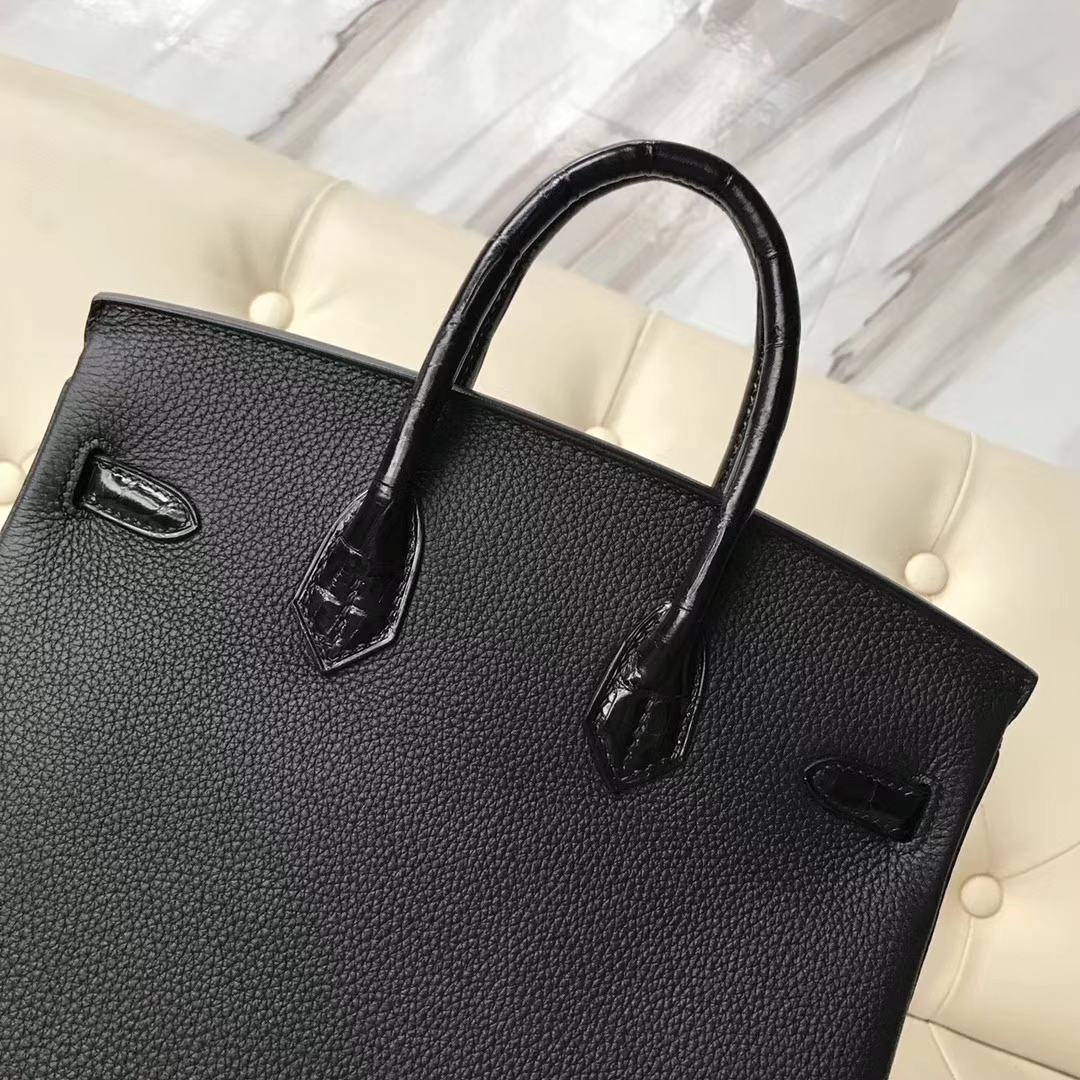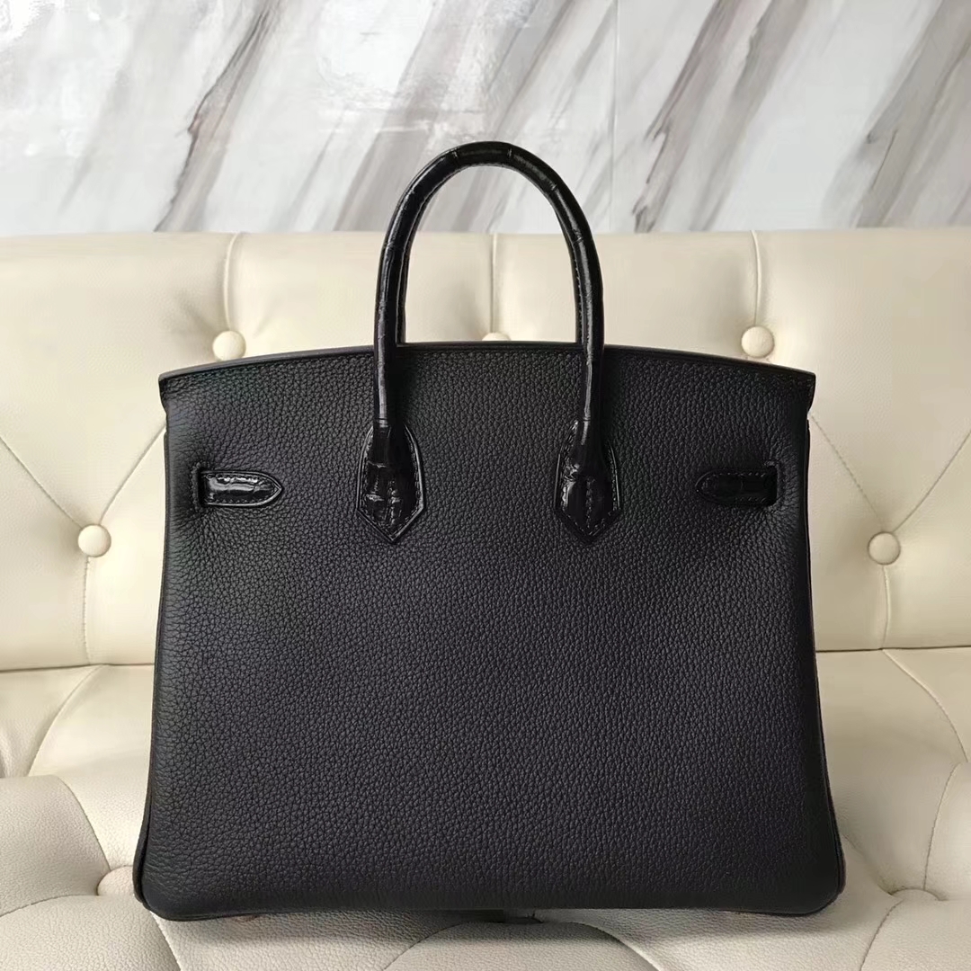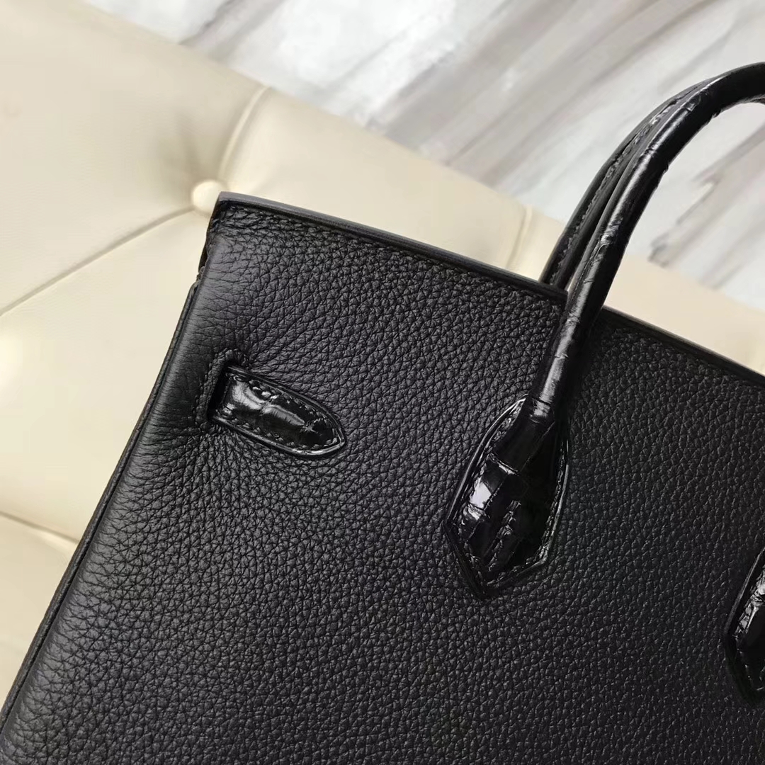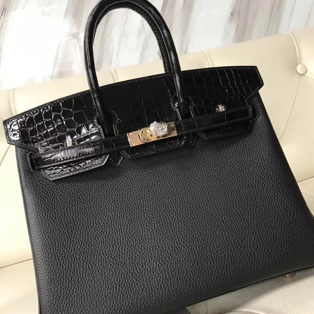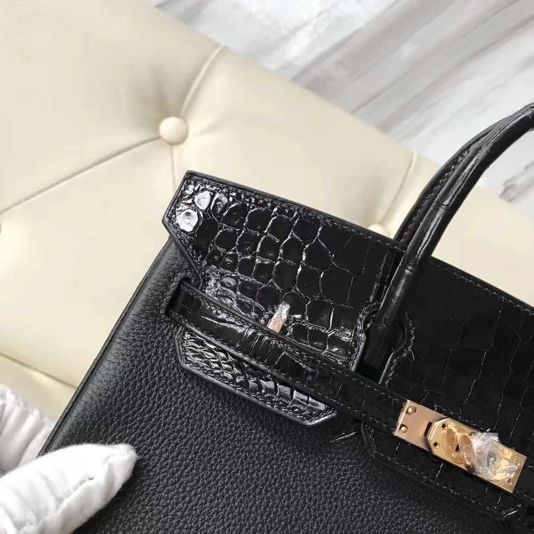 Hermès(爱马仕)Birkin25cm togo 鳄鱼 ck89 黑色 玫瑰金 Rose gold 定制款 2018年11月13日 0 【鳄鱼世家】www.Eyubao.com Birkin 25 Birkin 铂金包 品牌:Hermès(爱马仕);类别:Birkin 铂金包;颜色:黑色;材质:精选原版皮;等级:顶级;附件:全套包装礼盒;尺寸:25cm;功能:手提单肩包
