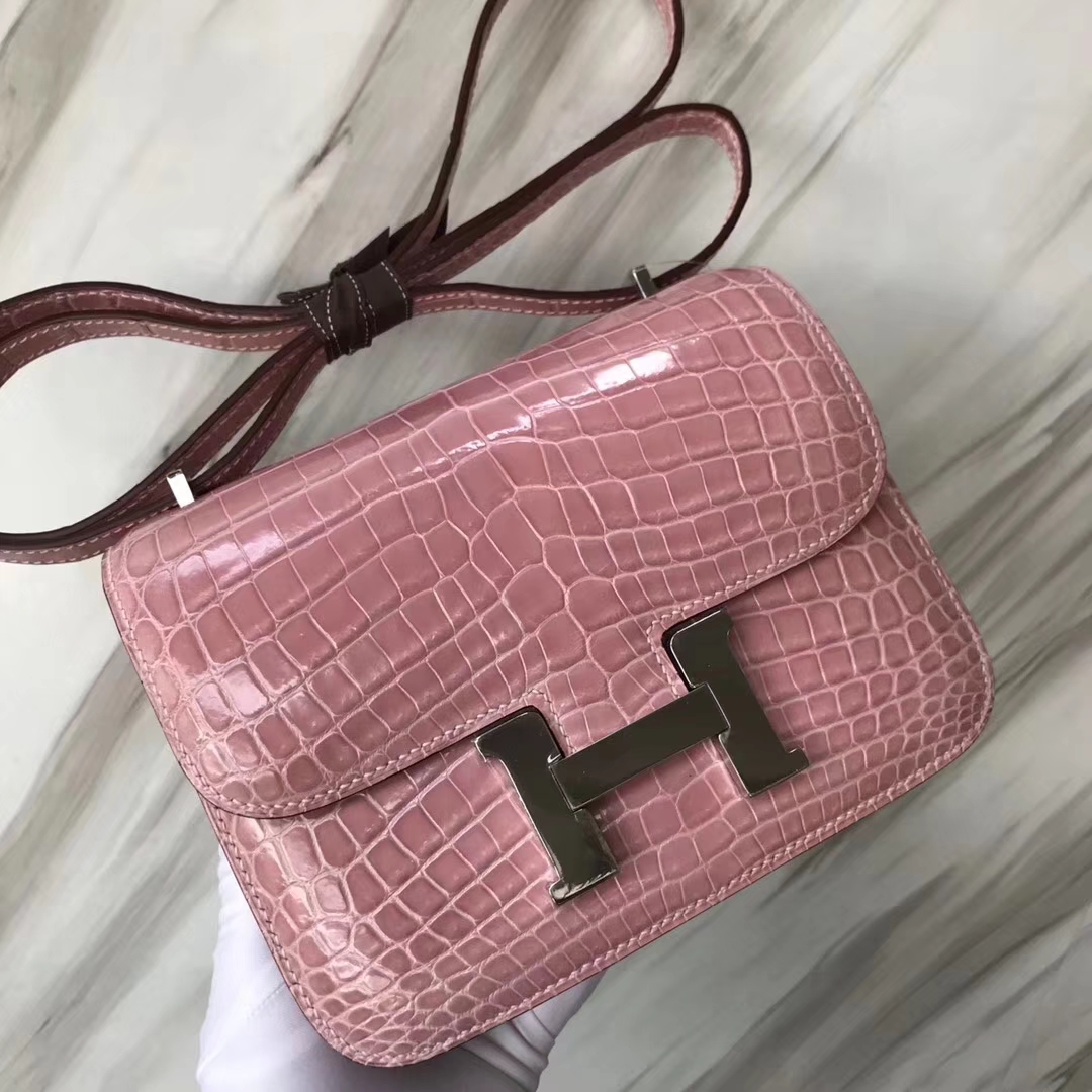 Constance 18 Constance 空姐包 Hermès(爱马仕)Constance空姐包 Alligator shiny 亮面鳄鱼 5Z 印度粉 银扣 18cm 顶级现货 2019年4月18日 0