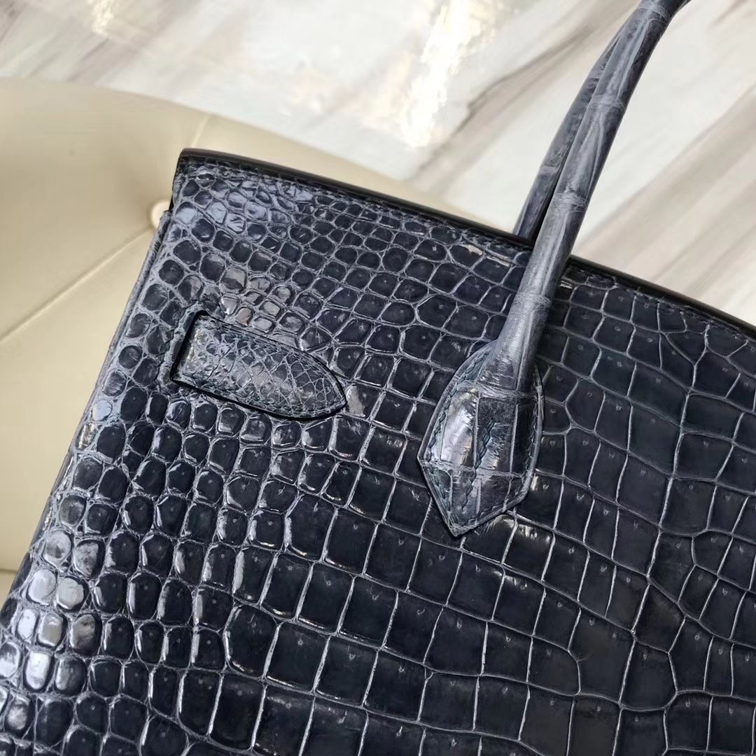 Hermès(爱马仕)Birkin30cm shiny porosus crocodile 澳洲湾鳄 N7风暴蓝 蜡线全手工 金扣 2018年11月30日 0 【鳄鱼世家】www.Eyubao.com Birkin 30 Birkin 铂金包 品牌:Hermès(爱马仕);类别:Birkin 铂金包;颜色:风暴蓝;材质:澳洲湾鳄;等级:顶级;附件:全套包装礼盒;尺寸:30cm;功能:手提单肩包