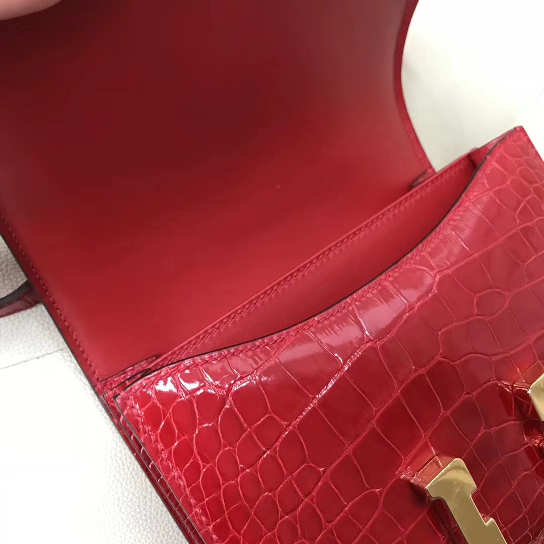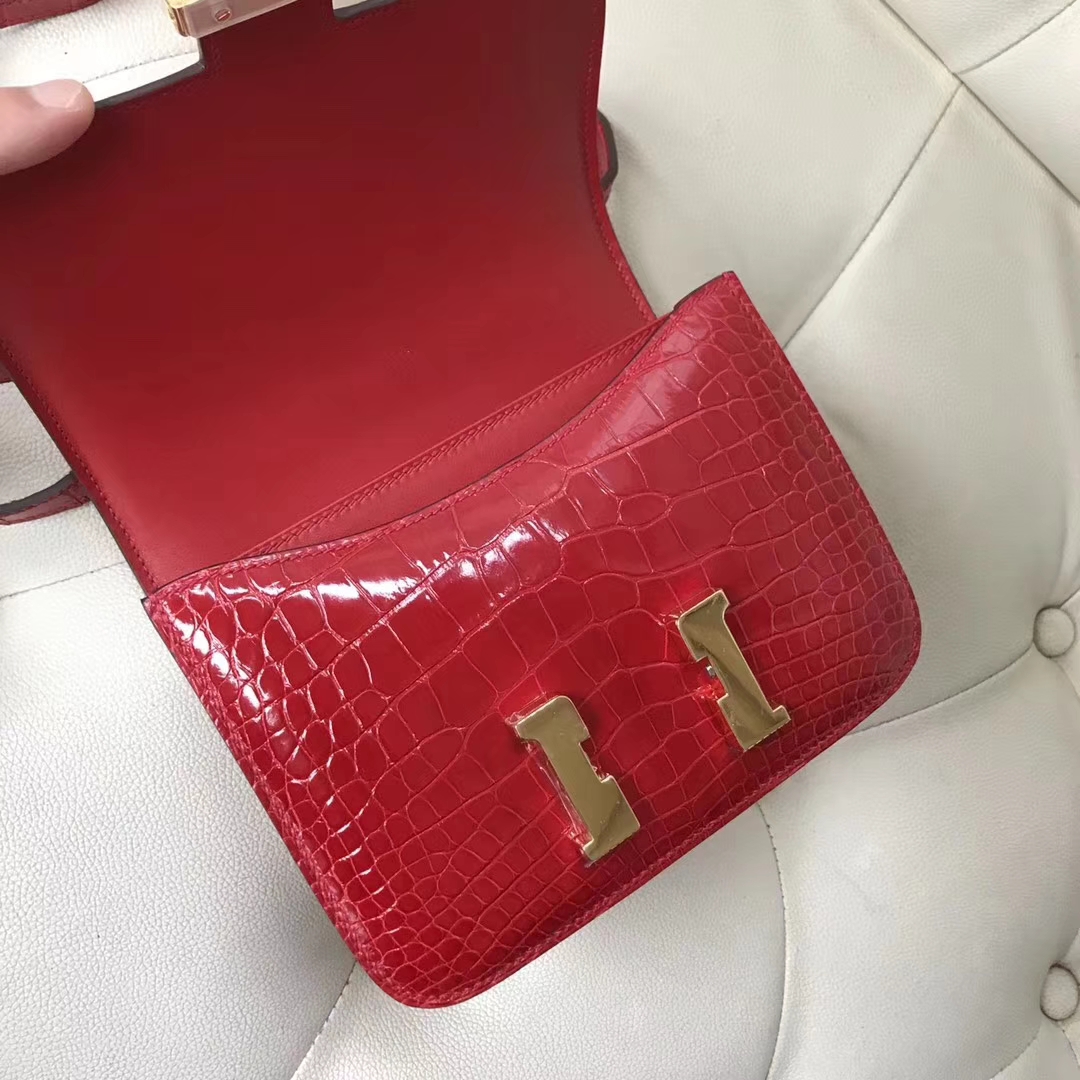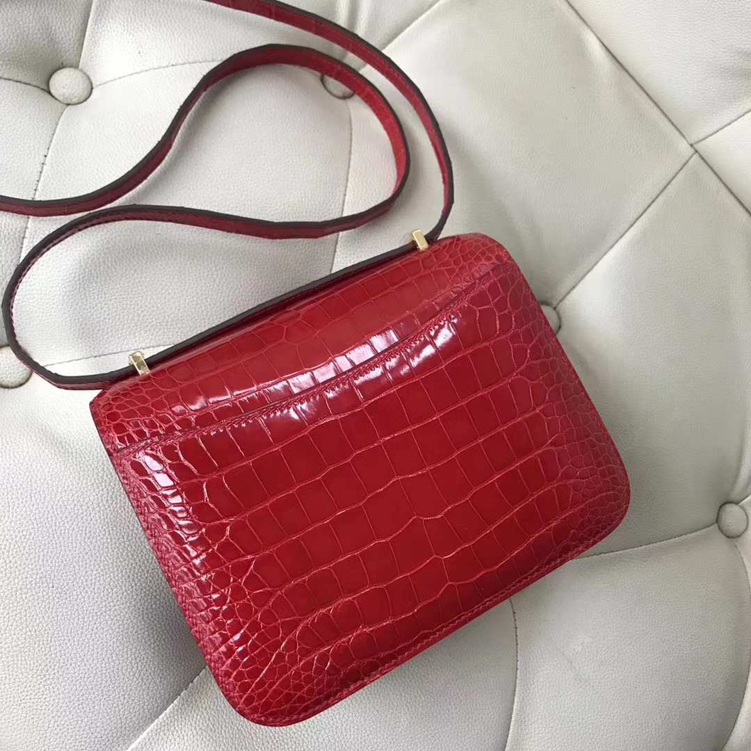 Hermès(爱马仕)Constance 19cm shiny alligator crocodile ck95法拉利红 蜡线全手工 2018年12月7日 0 【鳄鱼世家】www.Eyubao.com Constance 19 Constance 空姐包 品牌:Hermès(爱马仕);类别:Constance 空姐包;颜色:法拉利红;材质:精选原版皮;等级:顶级;附件:全套包装礼盒;尺寸:19cm;功能:手提单肩包