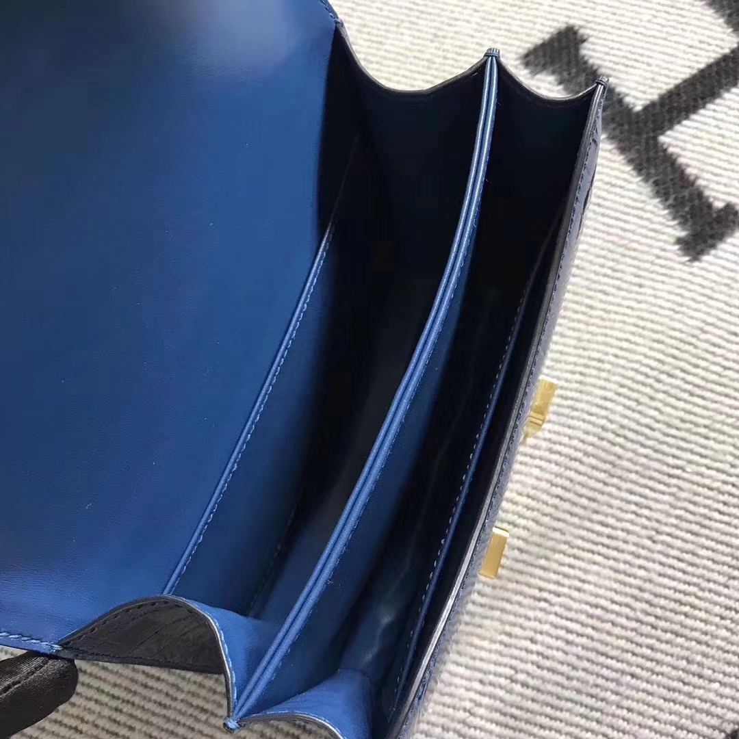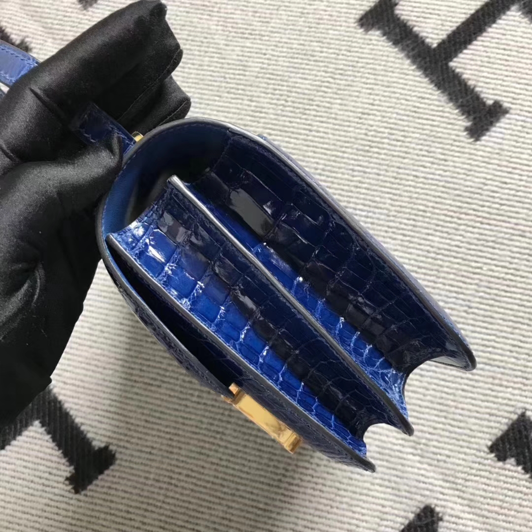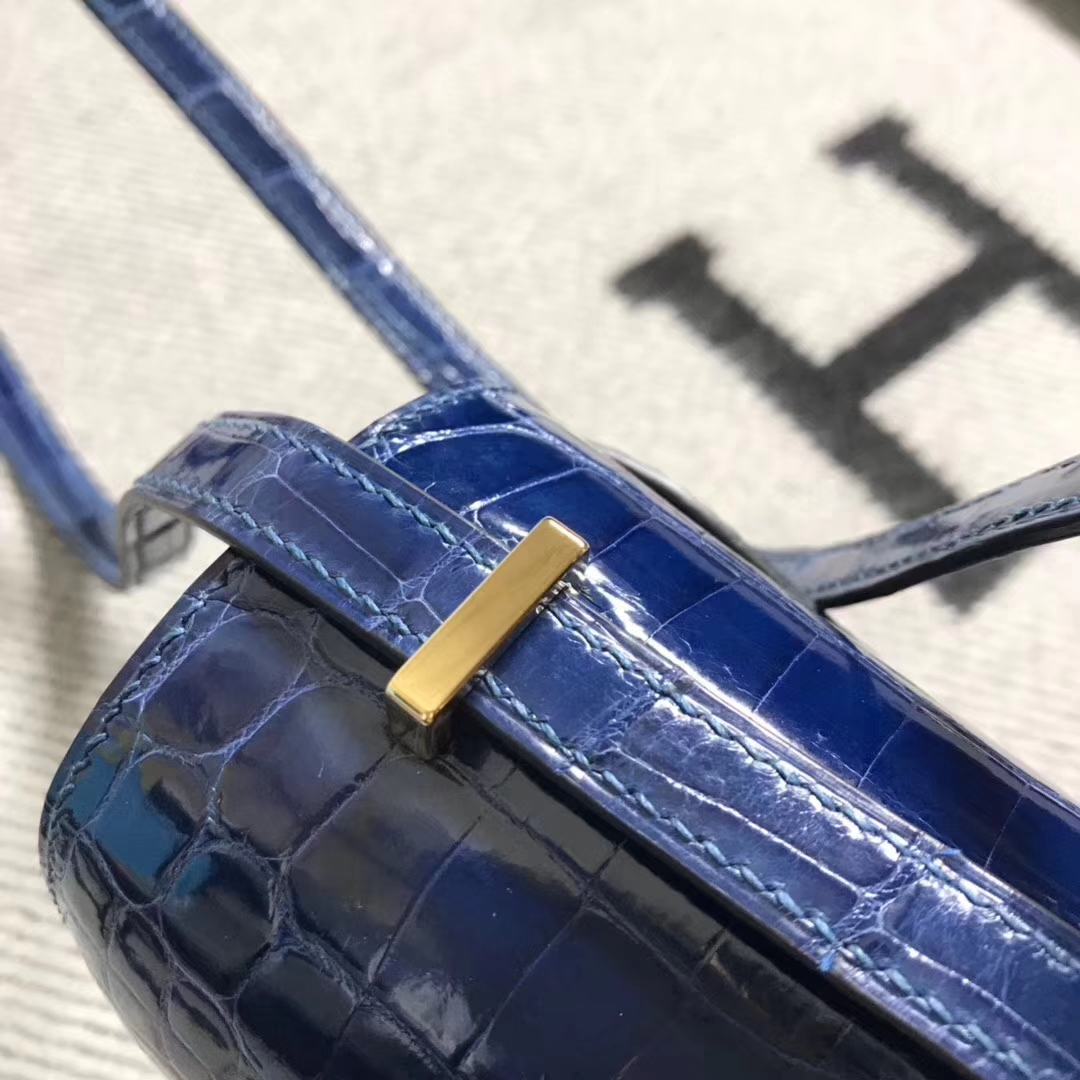 Hermès(爱马仕)小极品亮面鳄鱼 电光蓝 两点 小康 19cm 金扣,完美品质 2018年12月7日 0 【鳄鱼世家】www.Eyubao.com Constance 19 Constance 空姐包 品牌:Hermès(爱马仕);类别:Constance 空姐包;颜色:电光蓝;材质:小极品亮面鳄鱼;等级:顶级;附件:全套包装礼盒;尺寸:19cm;功能:手提单肩包