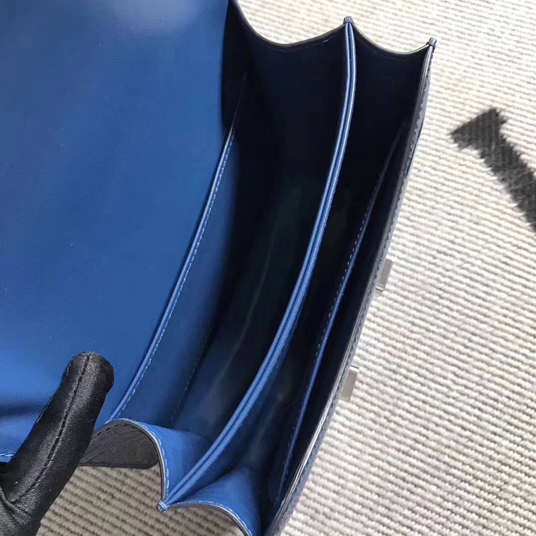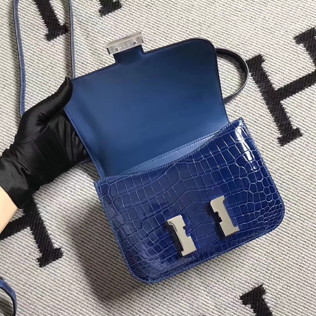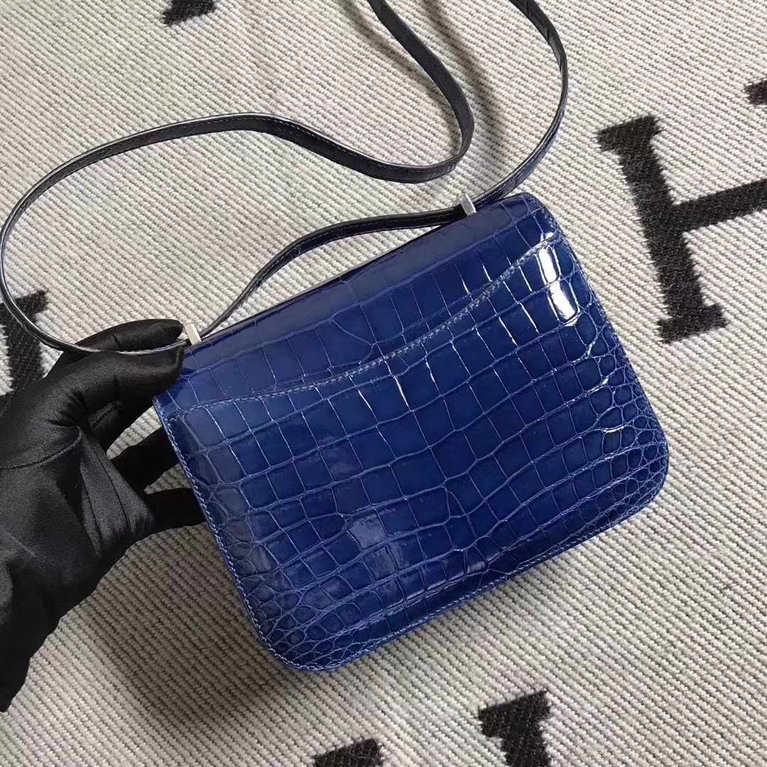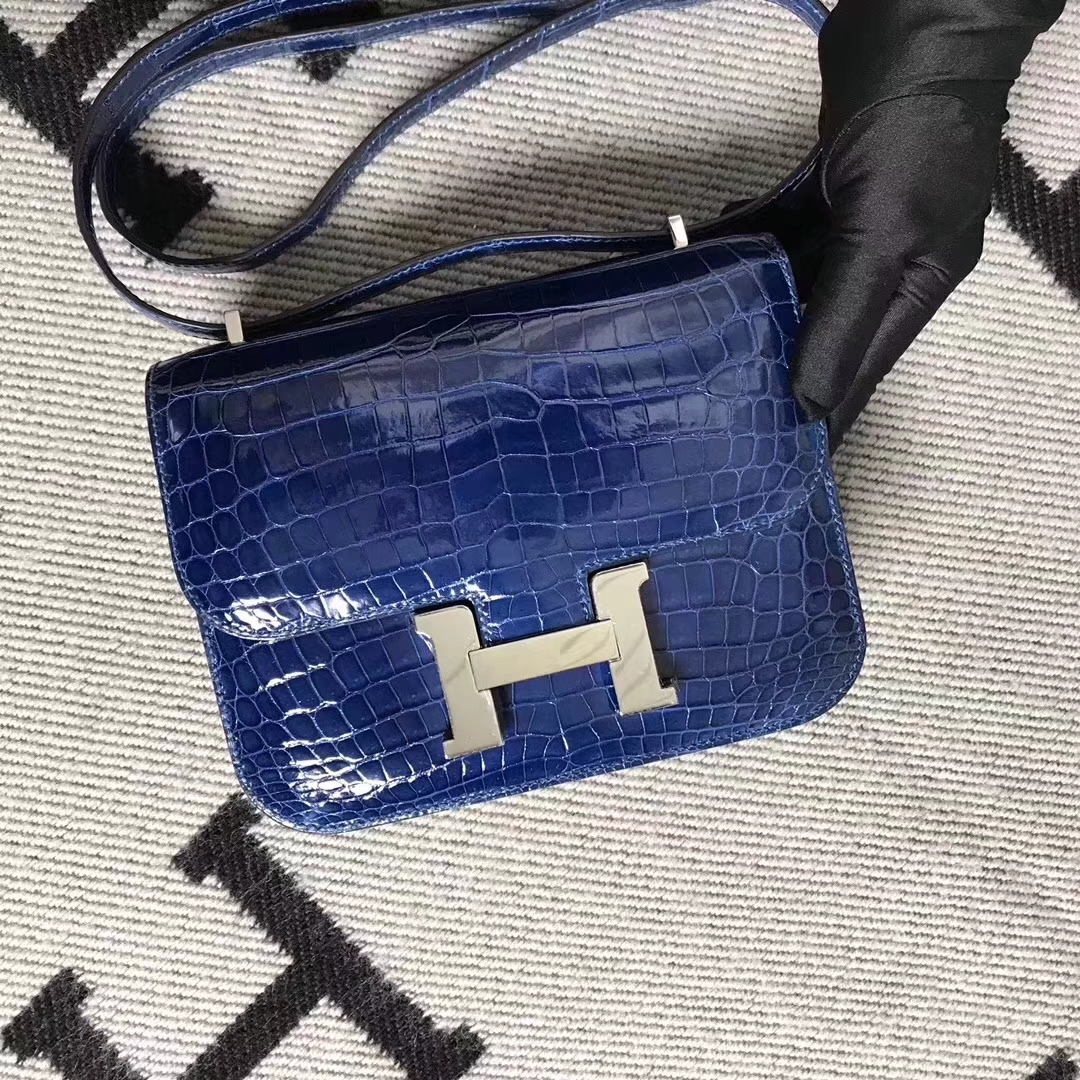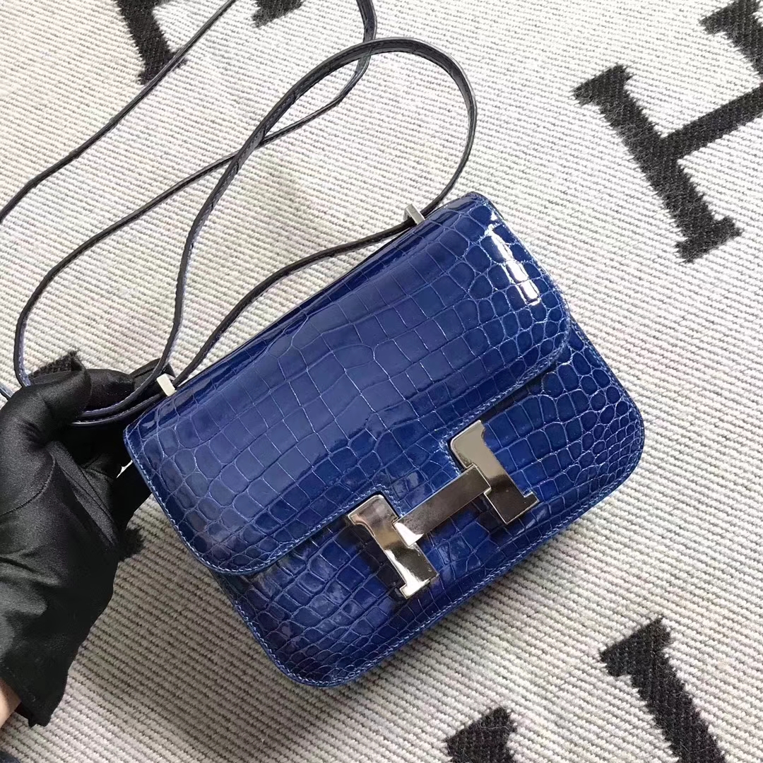 Hermès(爱马仕)小极品亮面鳄鱼 电光蓝 两点 小康 19cm 银扣 完美品质 2018年12月7日 0 【鳄鱼世家】www.Eyubao.com Constance 19 Constance 空姐包 品牌:Hermès(爱马仕);类别:Constance 空姐包;颜色:电光蓝;材质:小极品亮面鳄鱼;等级:顶级;附件:全套包装礼盒;尺寸:19cm;功能:手提单肩包